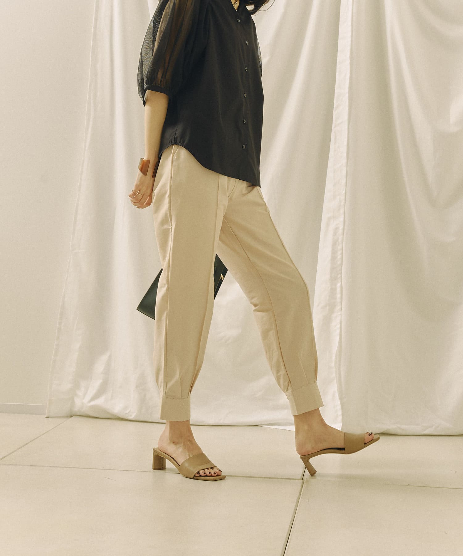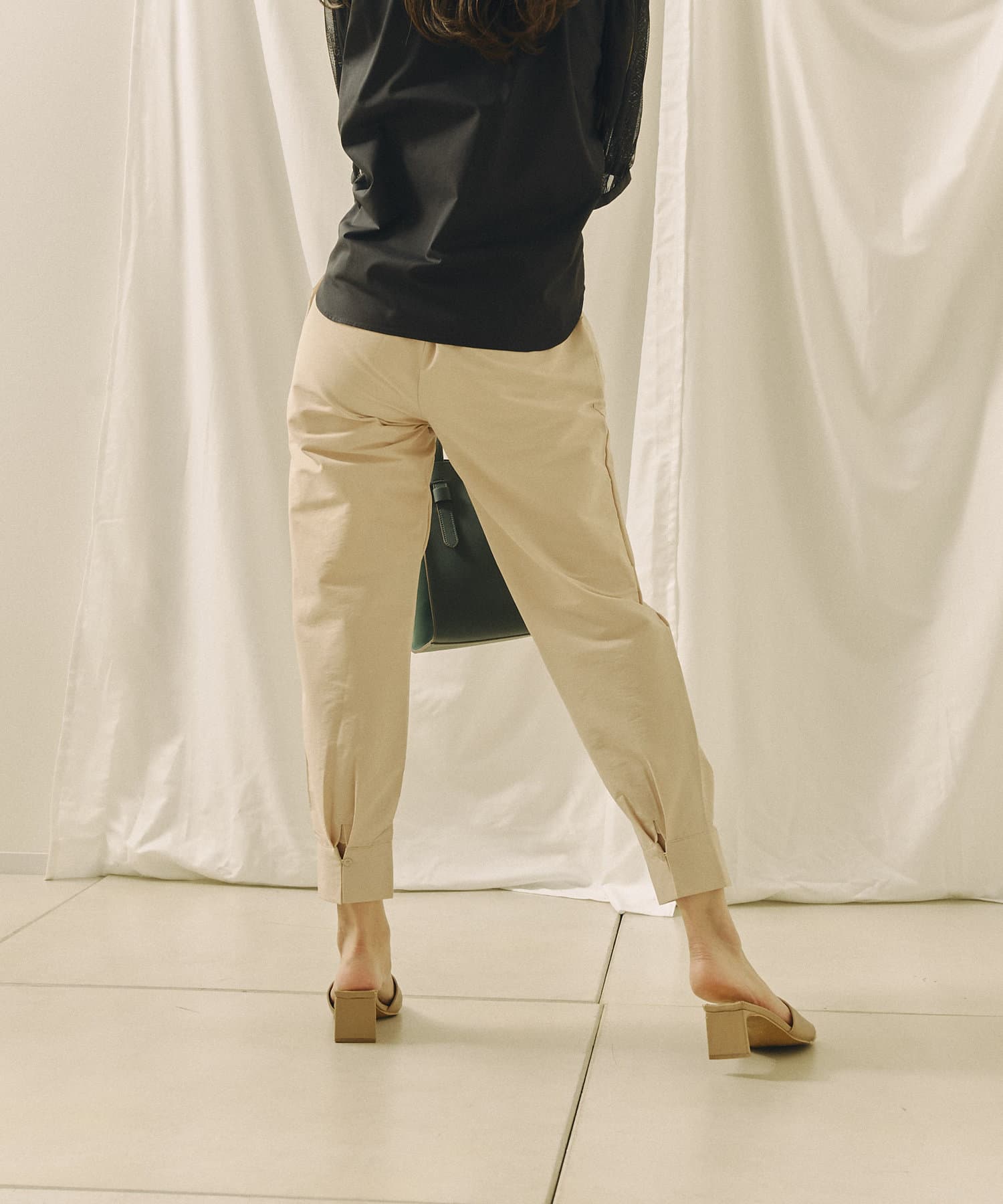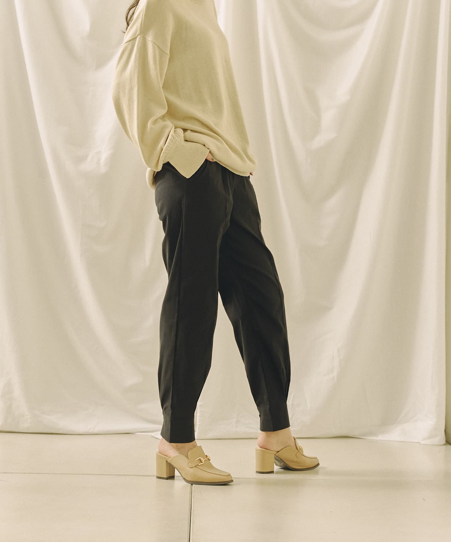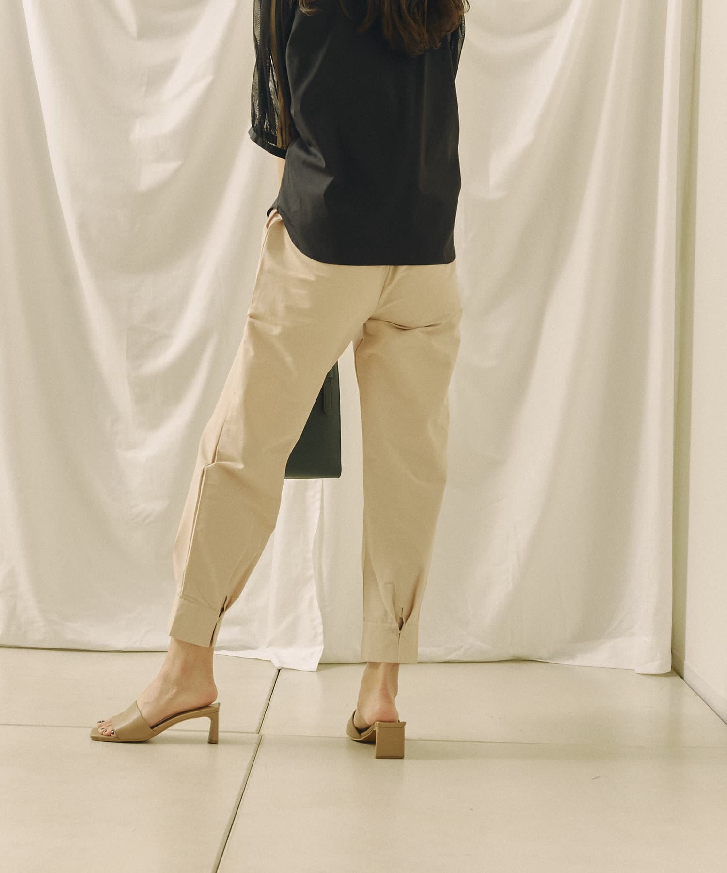 ・裾が細くなっていることで足首をスッキリ見せてくれるので着痩せ効果もあり。