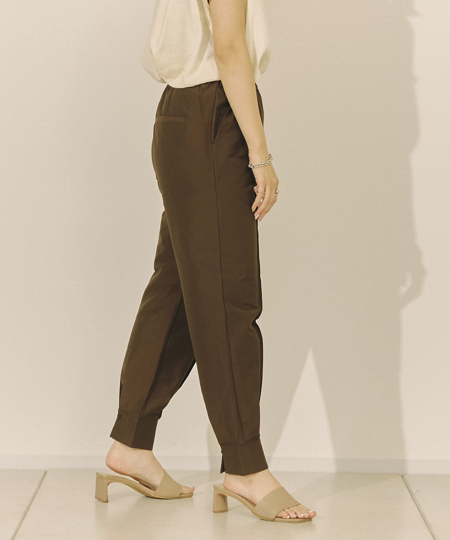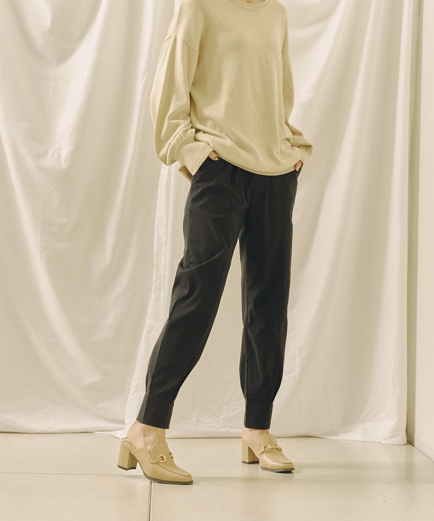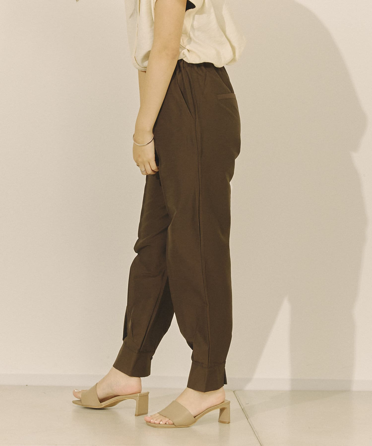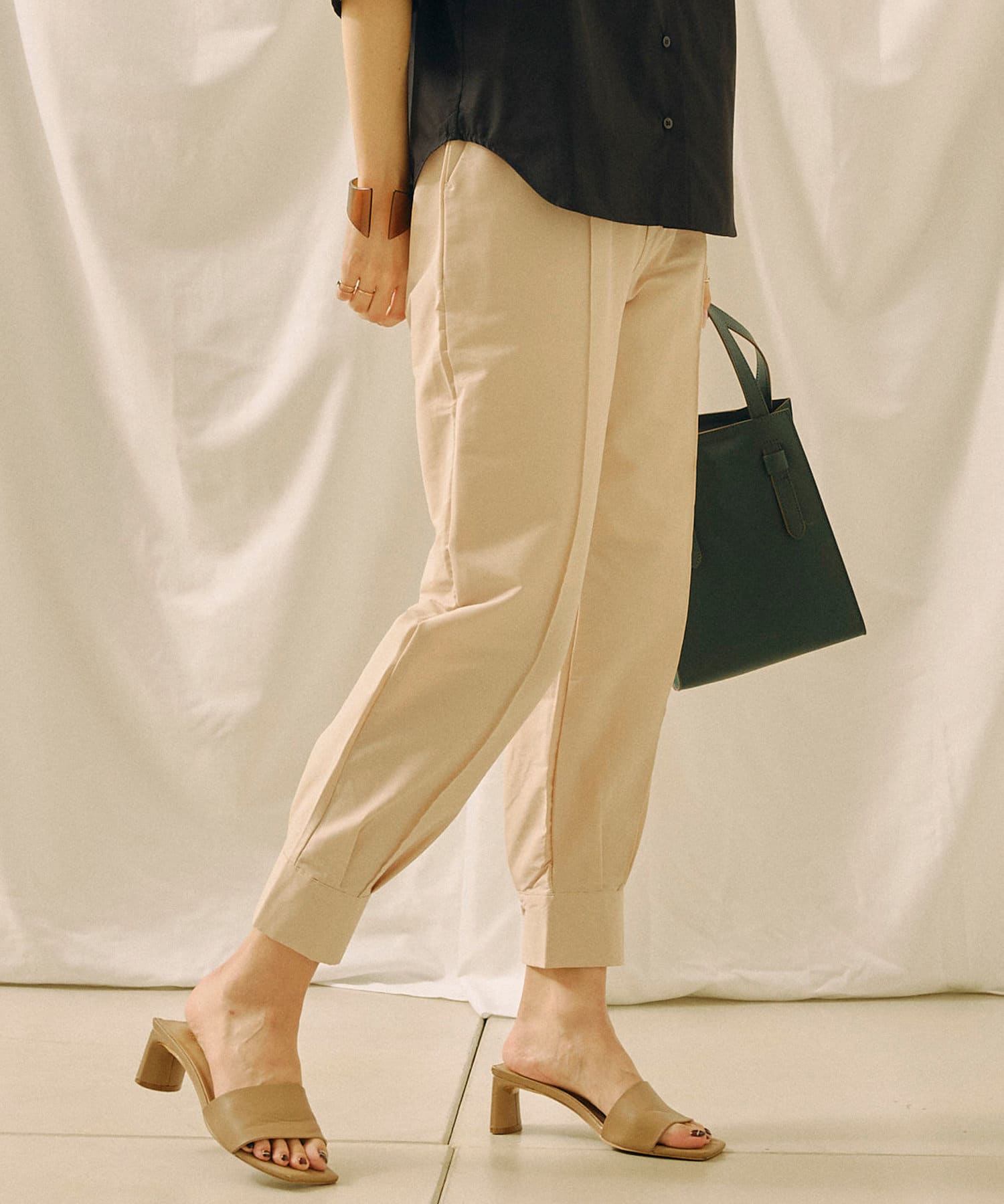 ・裾が細くなっていることで足首をスッキリ見せてくれるので着痩せ効果もあり。