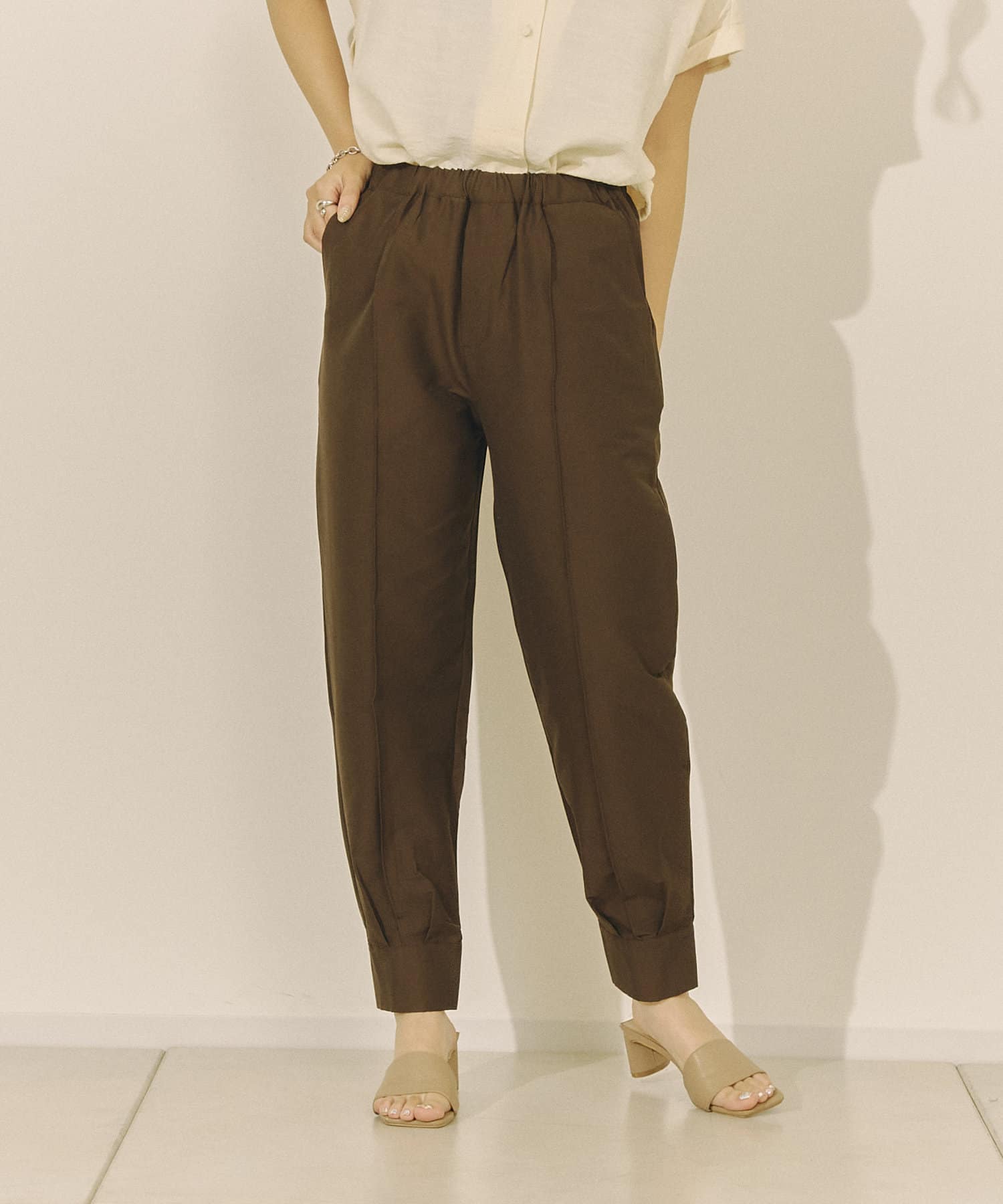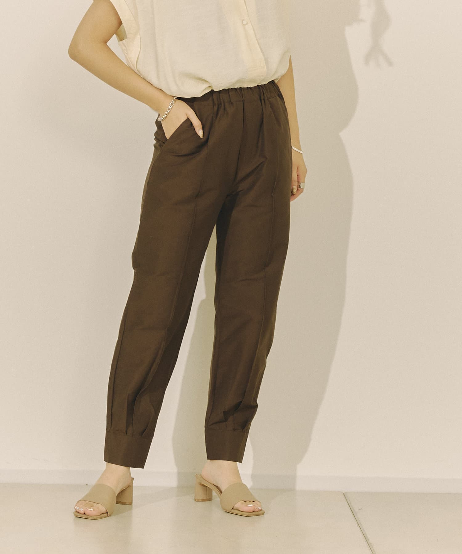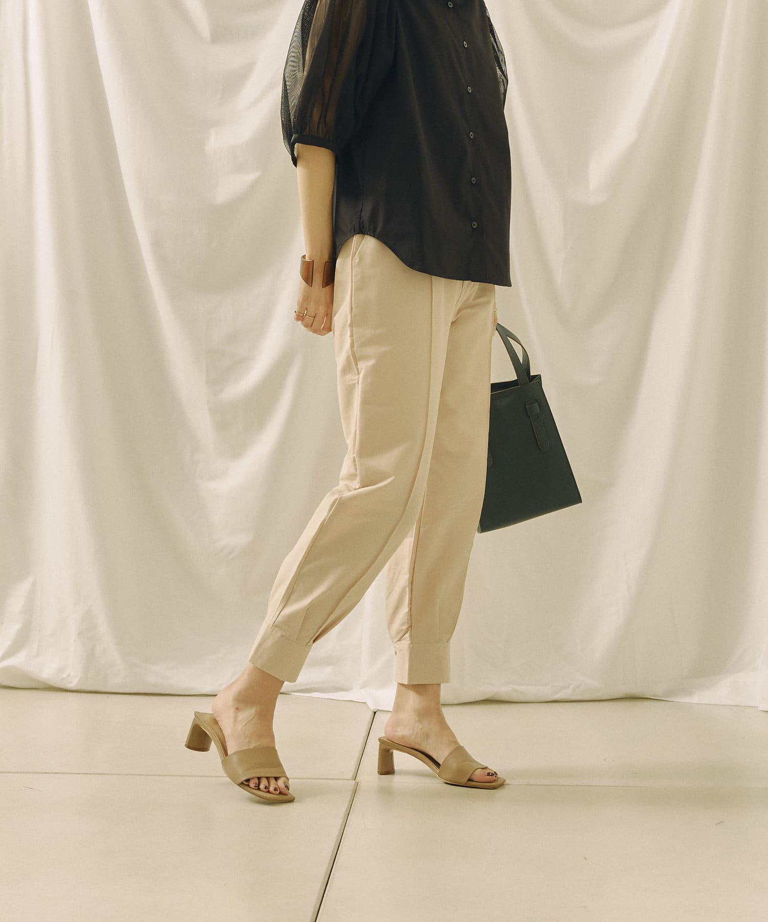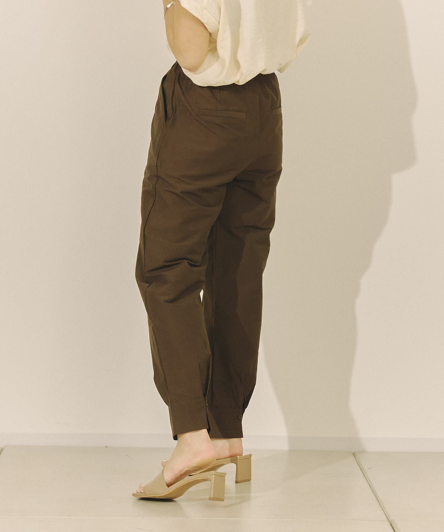 ・裾が細くなっていることで足首をスッキリ見せてくれるので着痩せ効果もあり。