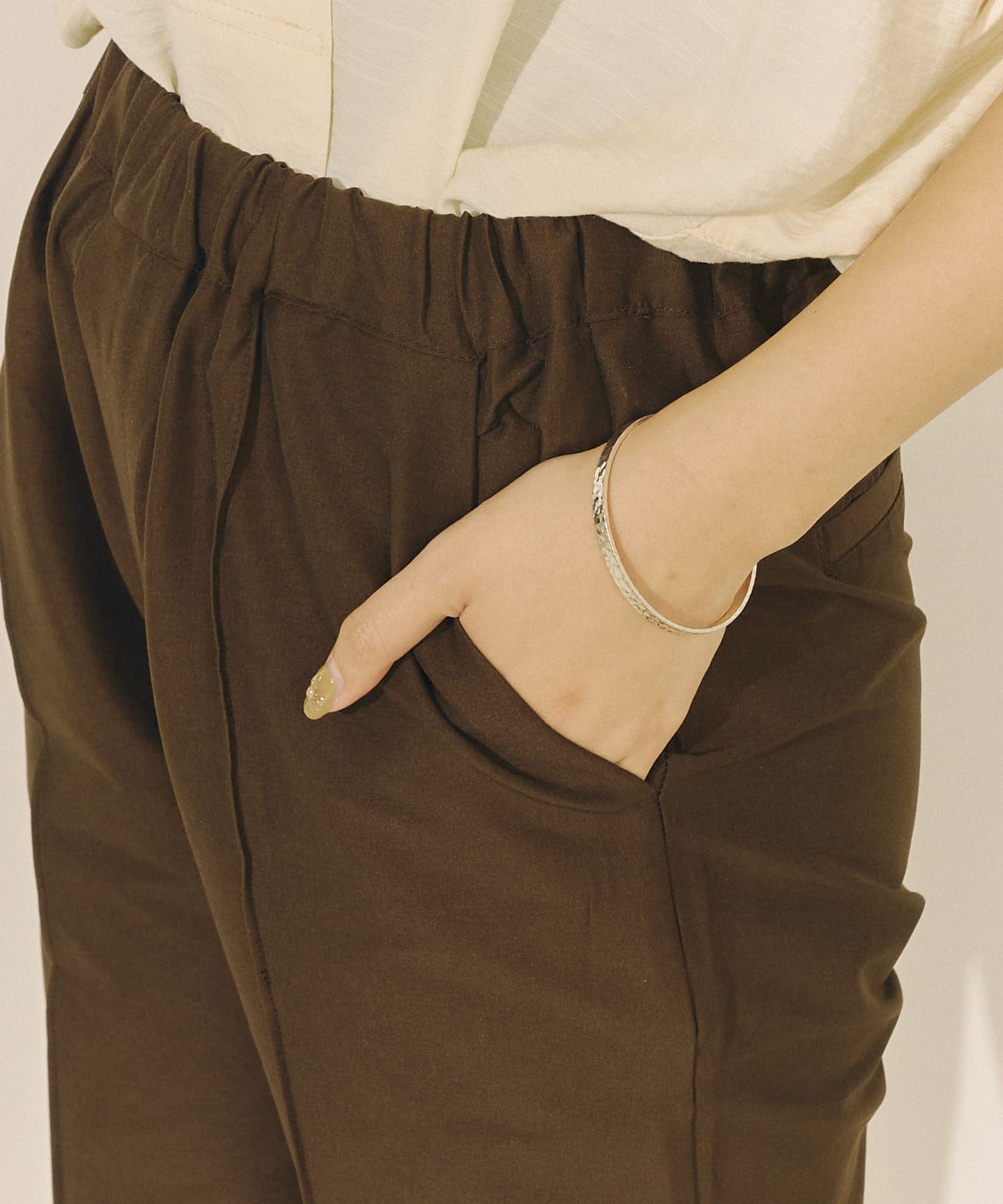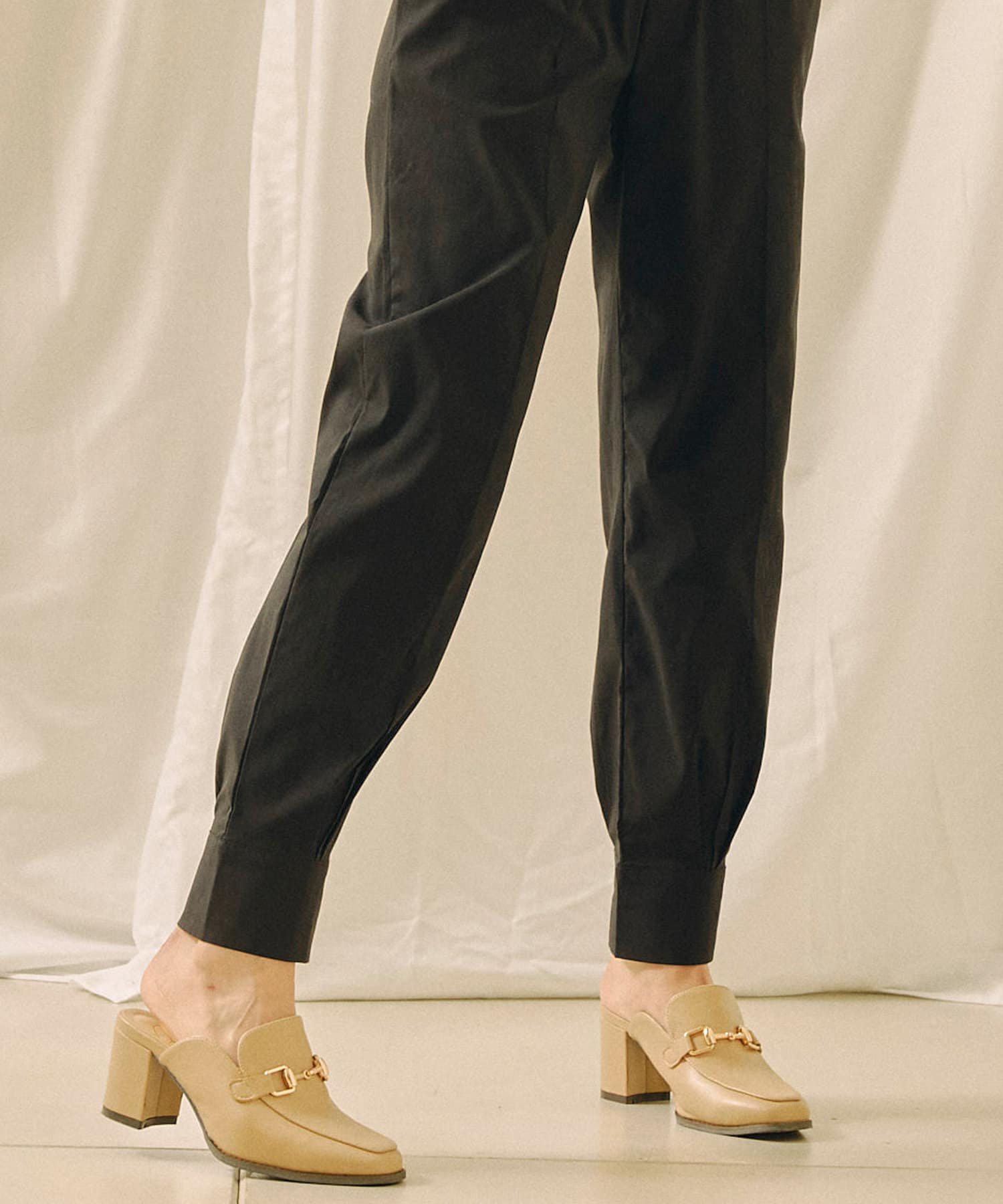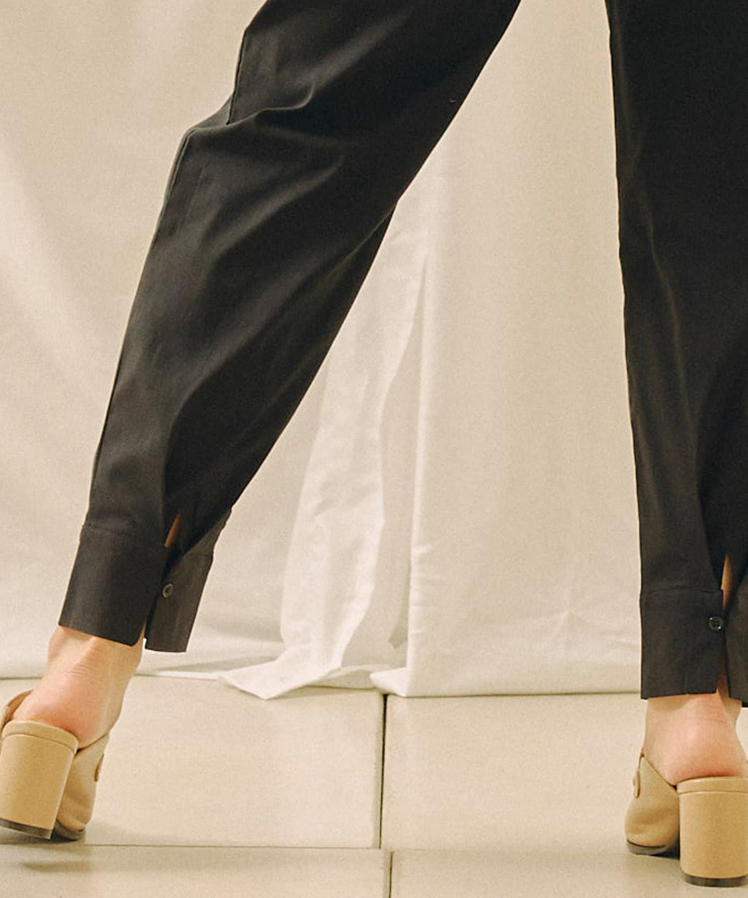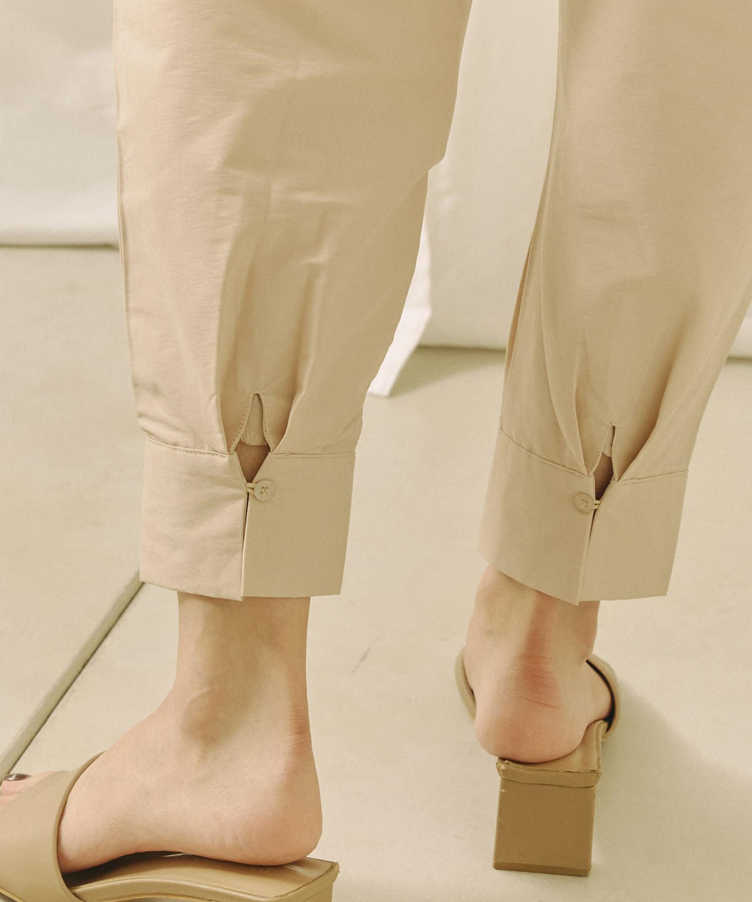 ・裾が細くなっていることで足首をスッキリ見せてくれるので着痩せ効果もあり。