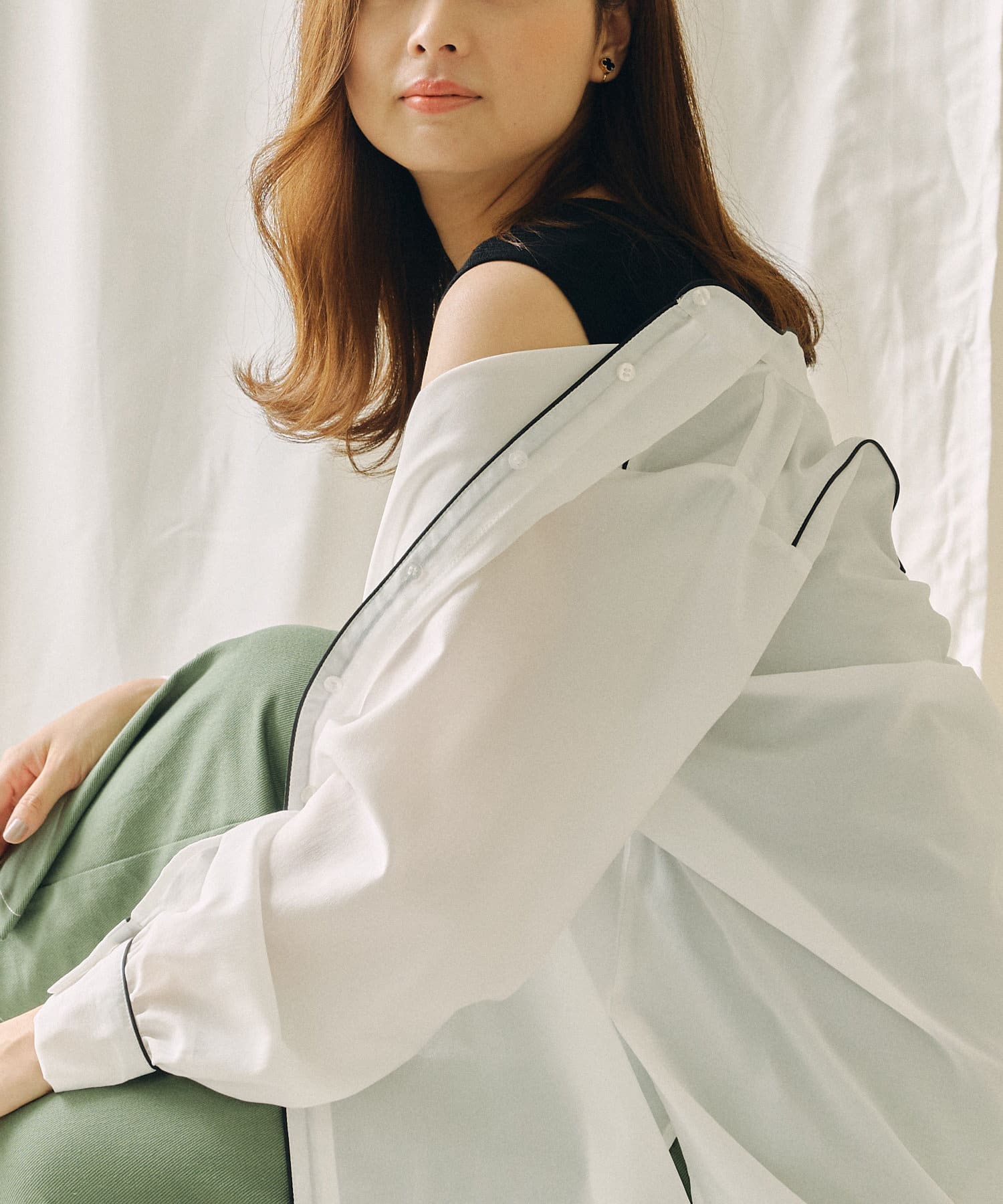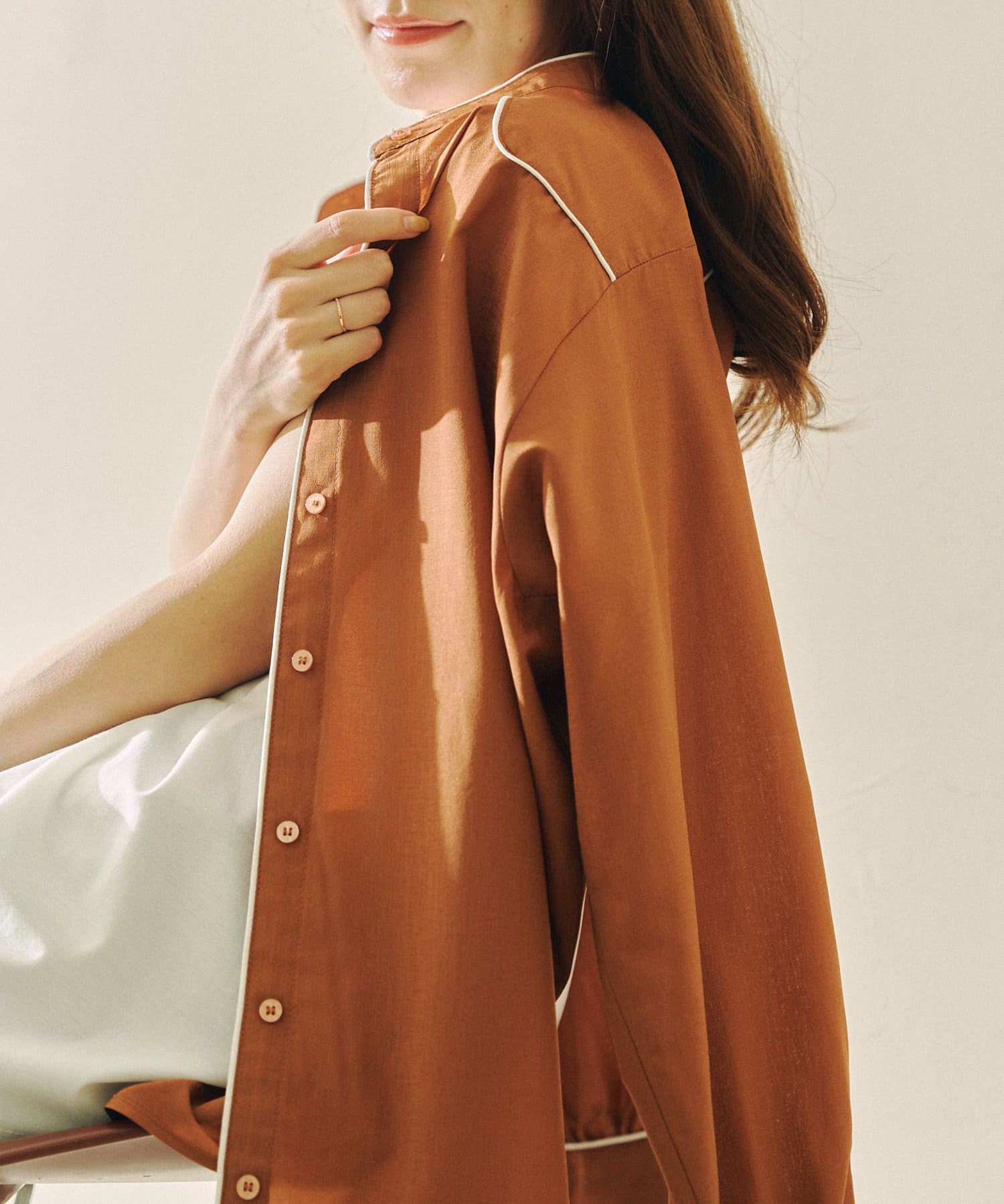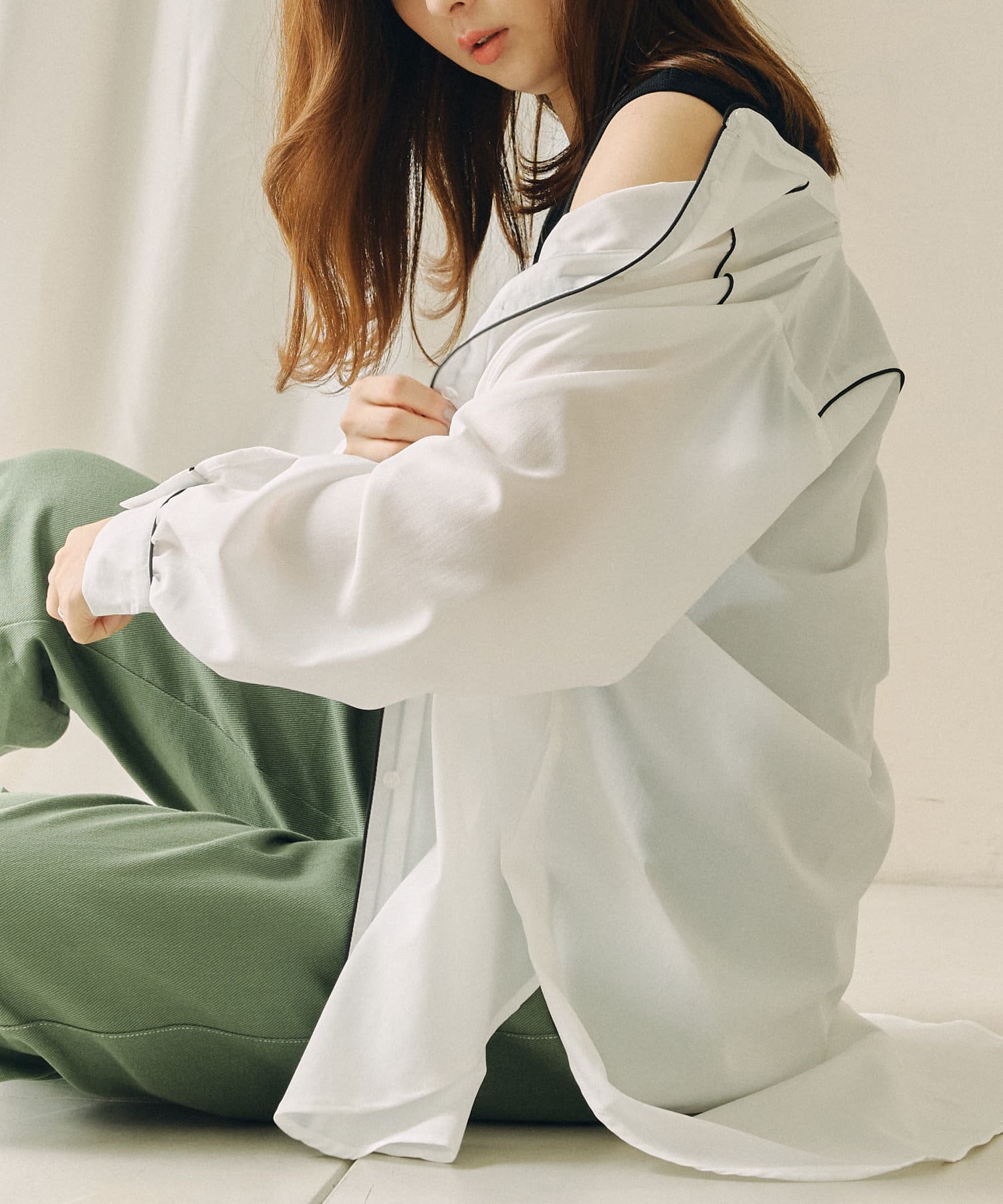 ・派手になりすぎないパイピングシャツなので幅広い年齢層の方に着て頂けるトレンドシャツです。