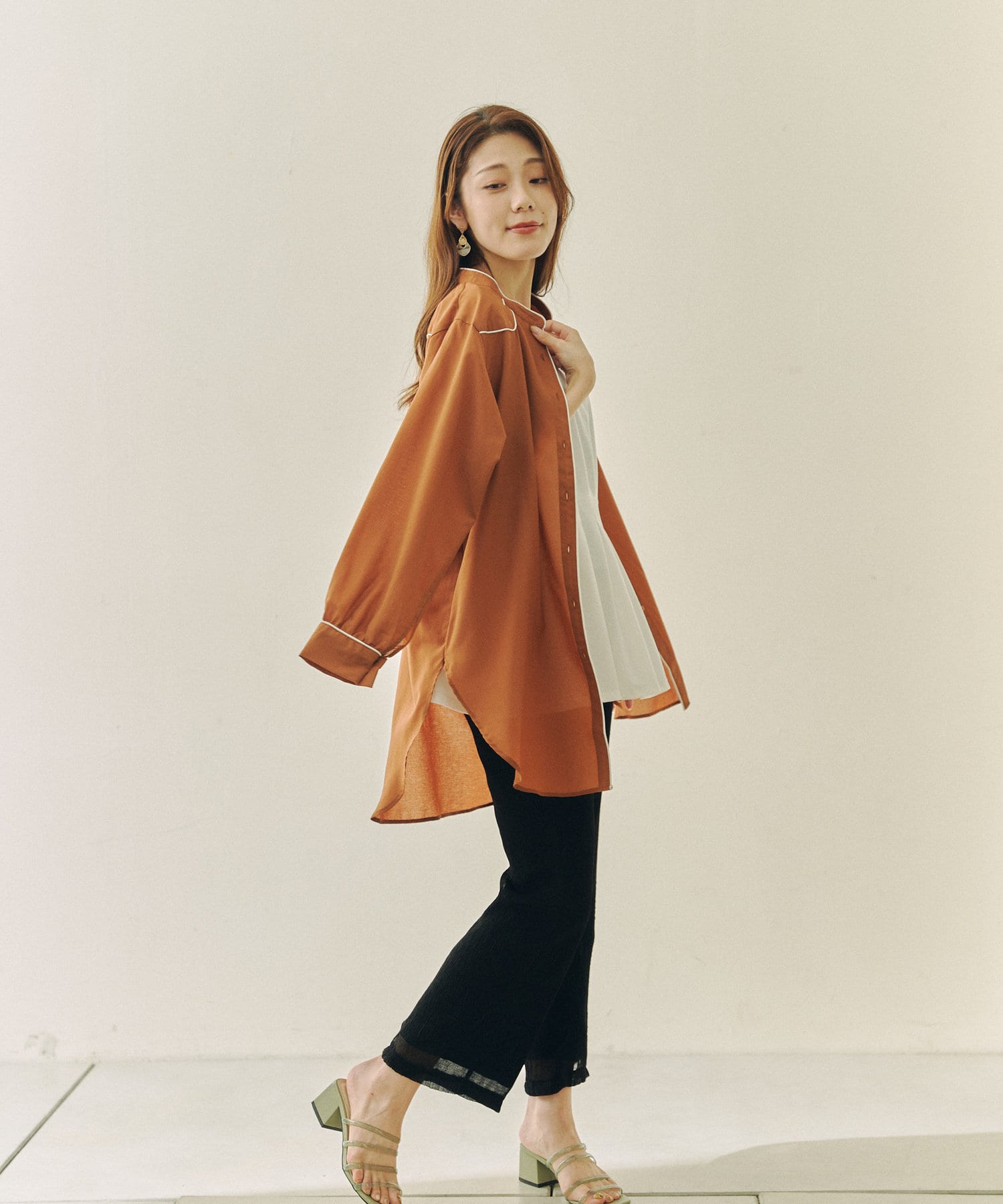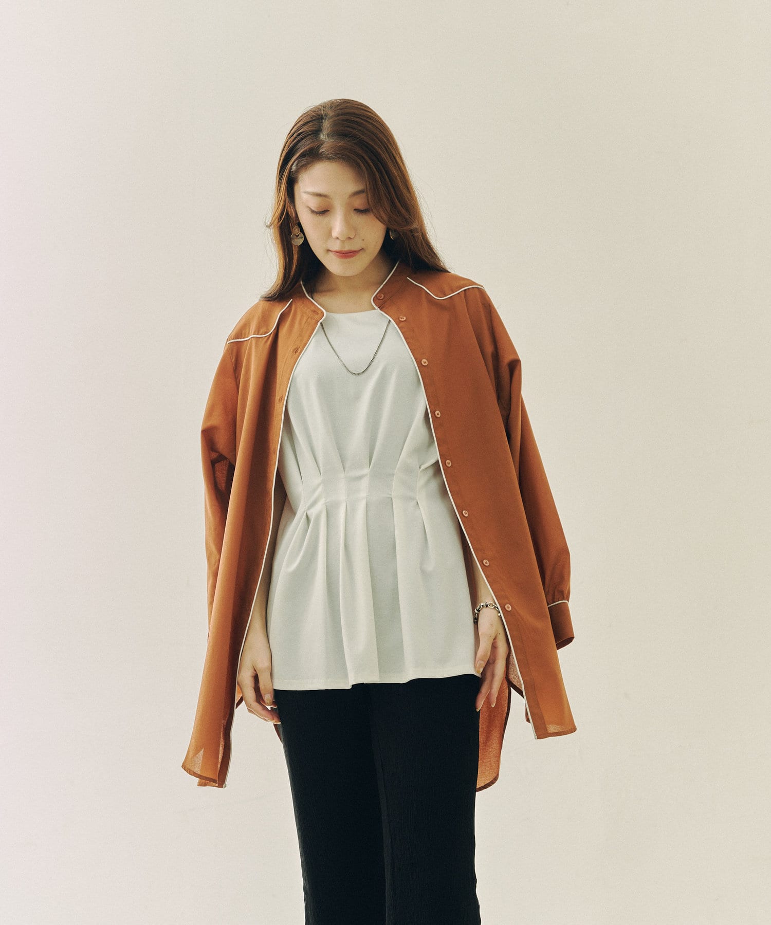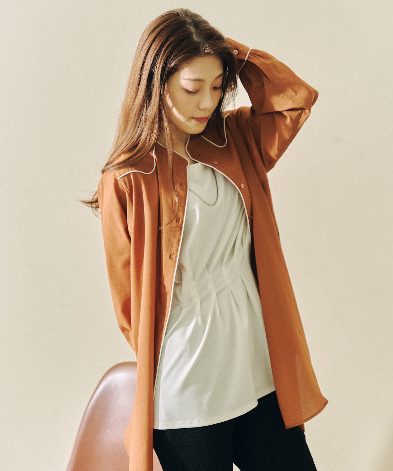 ・派手になりすぎないパイピングシャツなので幅広い年齢層の方に着て頂けるトレンドシャツです。