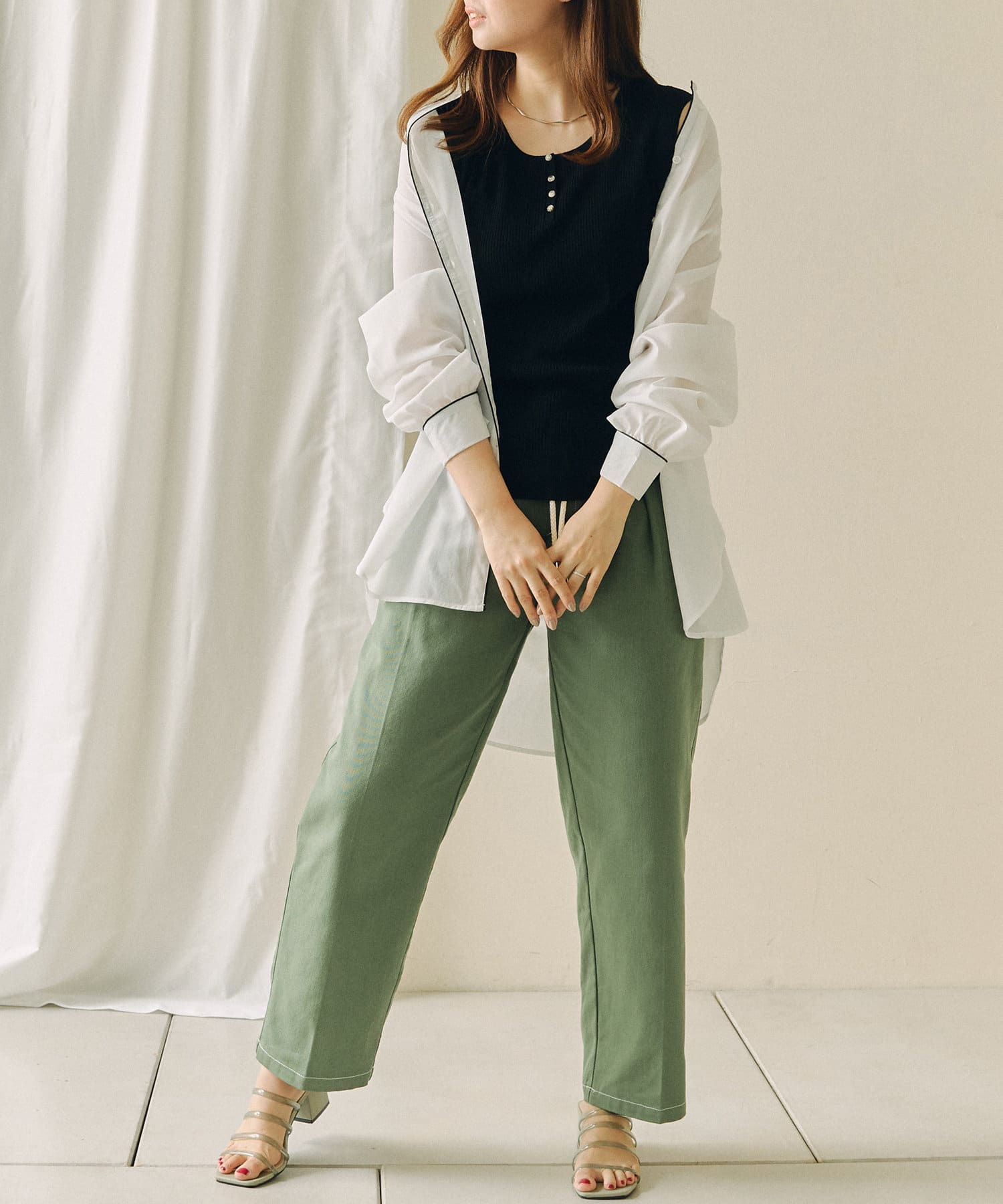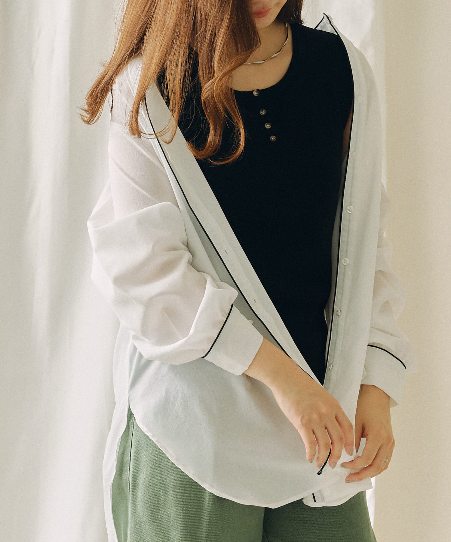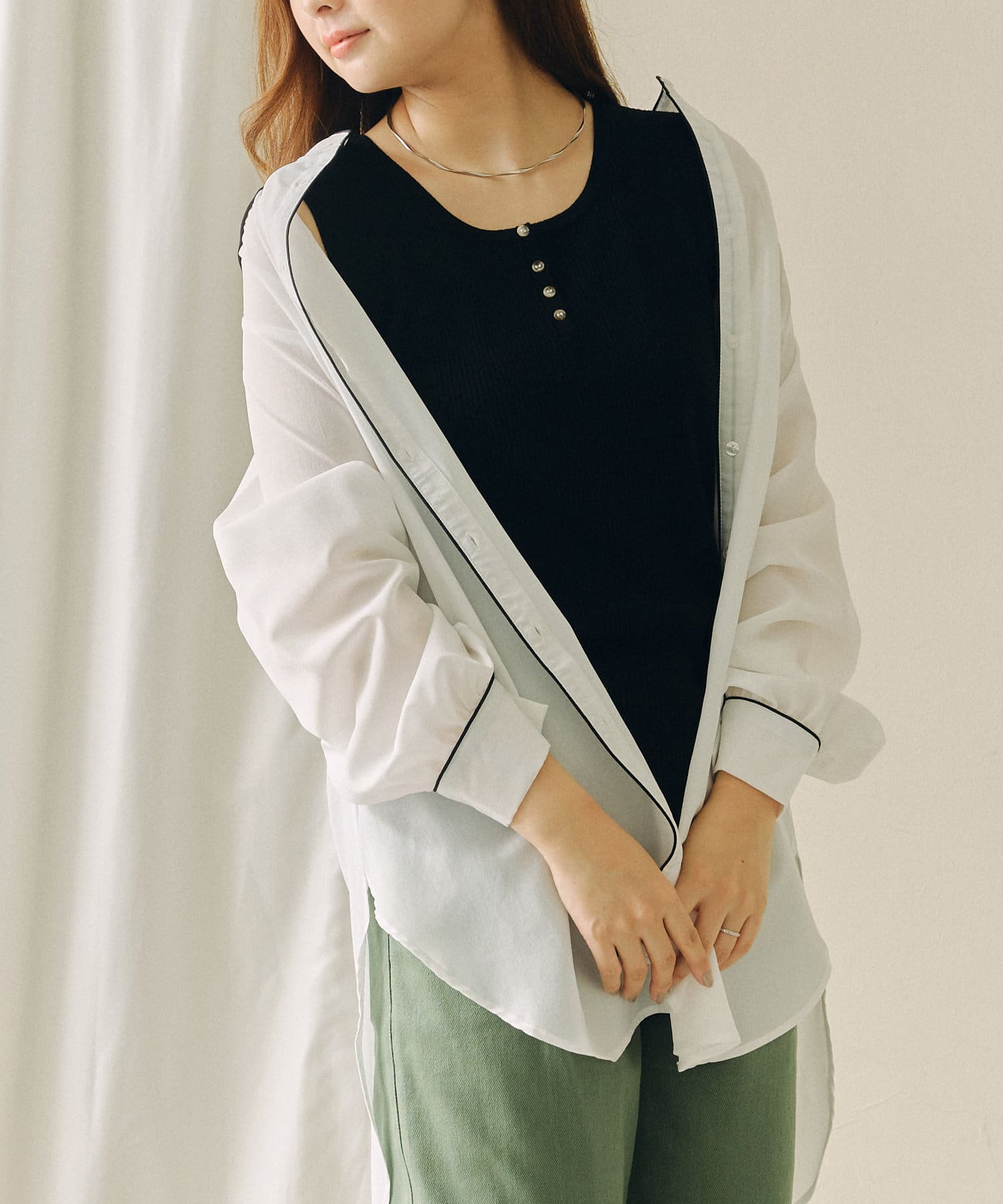 インナーにTシャツやサマーニットを合わせて羽織りスタイルで着て頂くのもおすすめです。