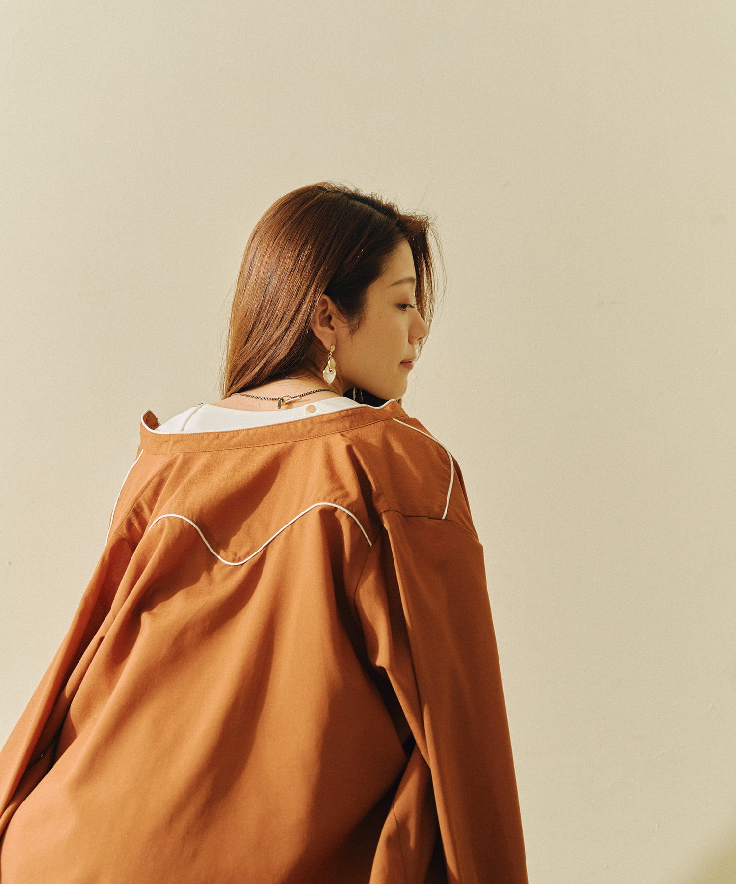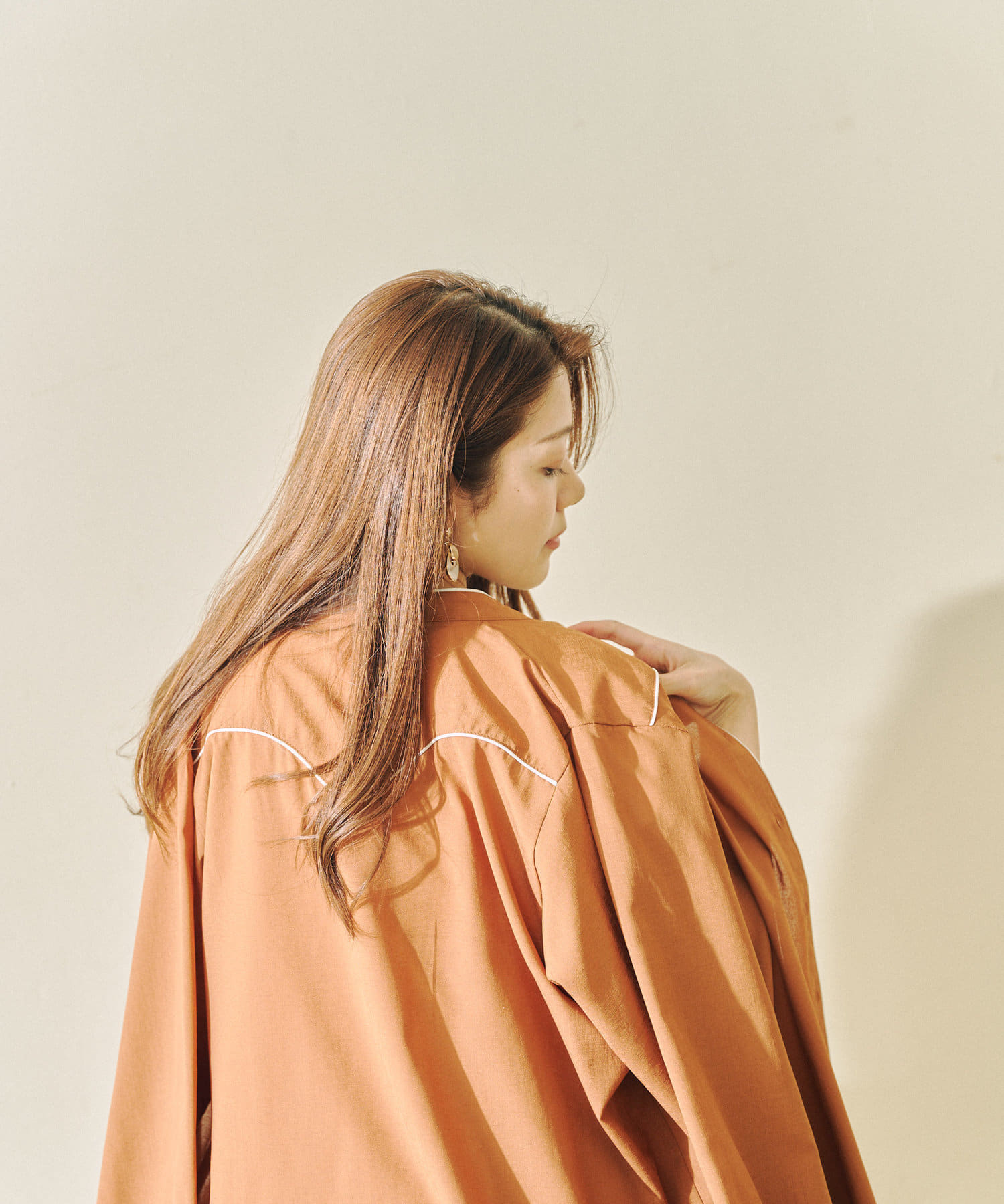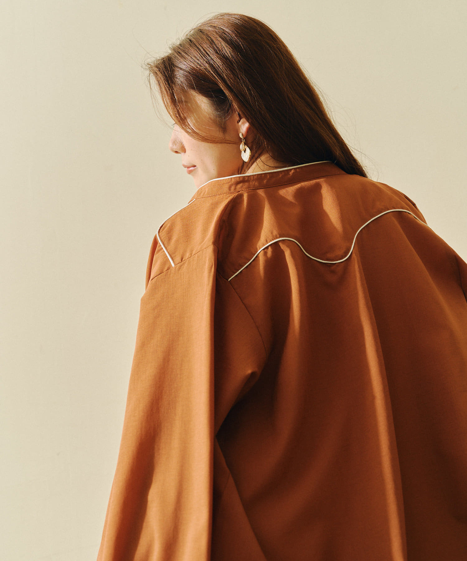 ・パイピングウエスタンシャツは着るだけでこなれ感アップ。