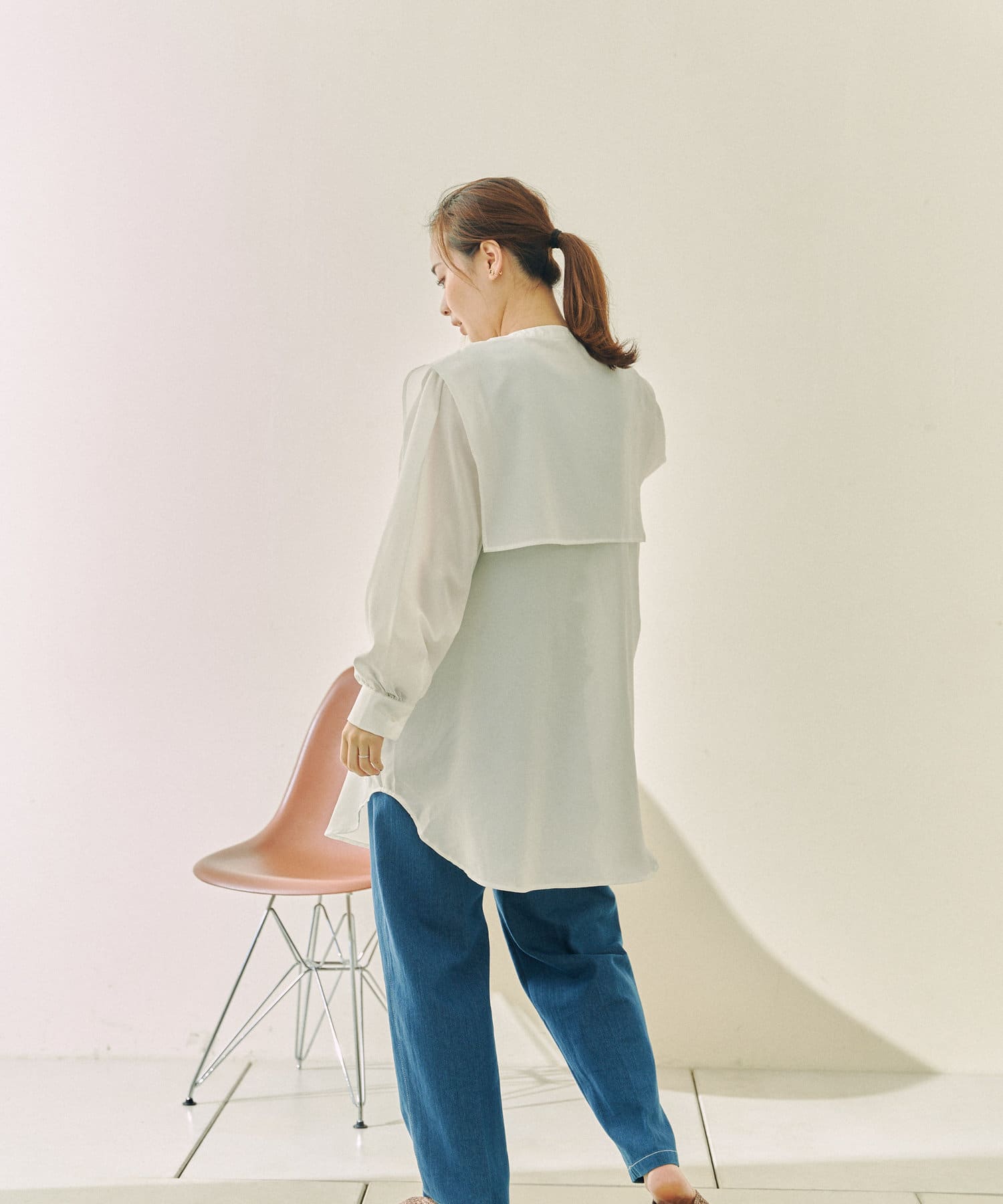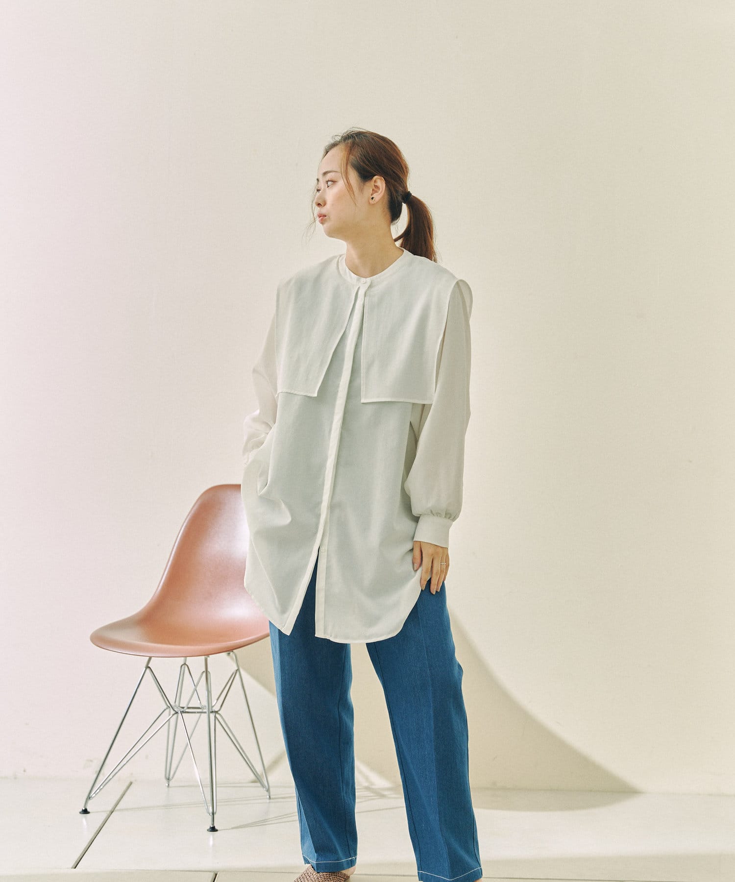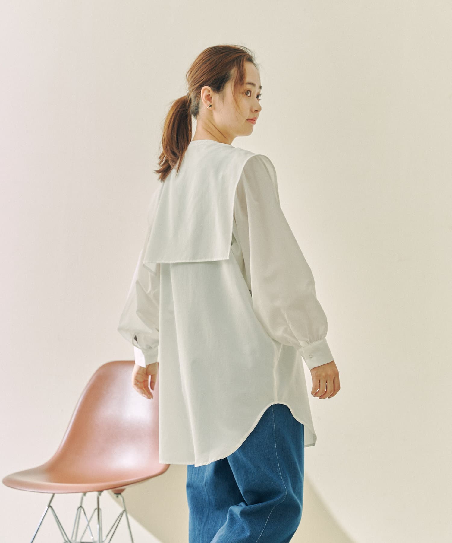 ゆったりとしたシルエットにセーラー襟のブラウス。