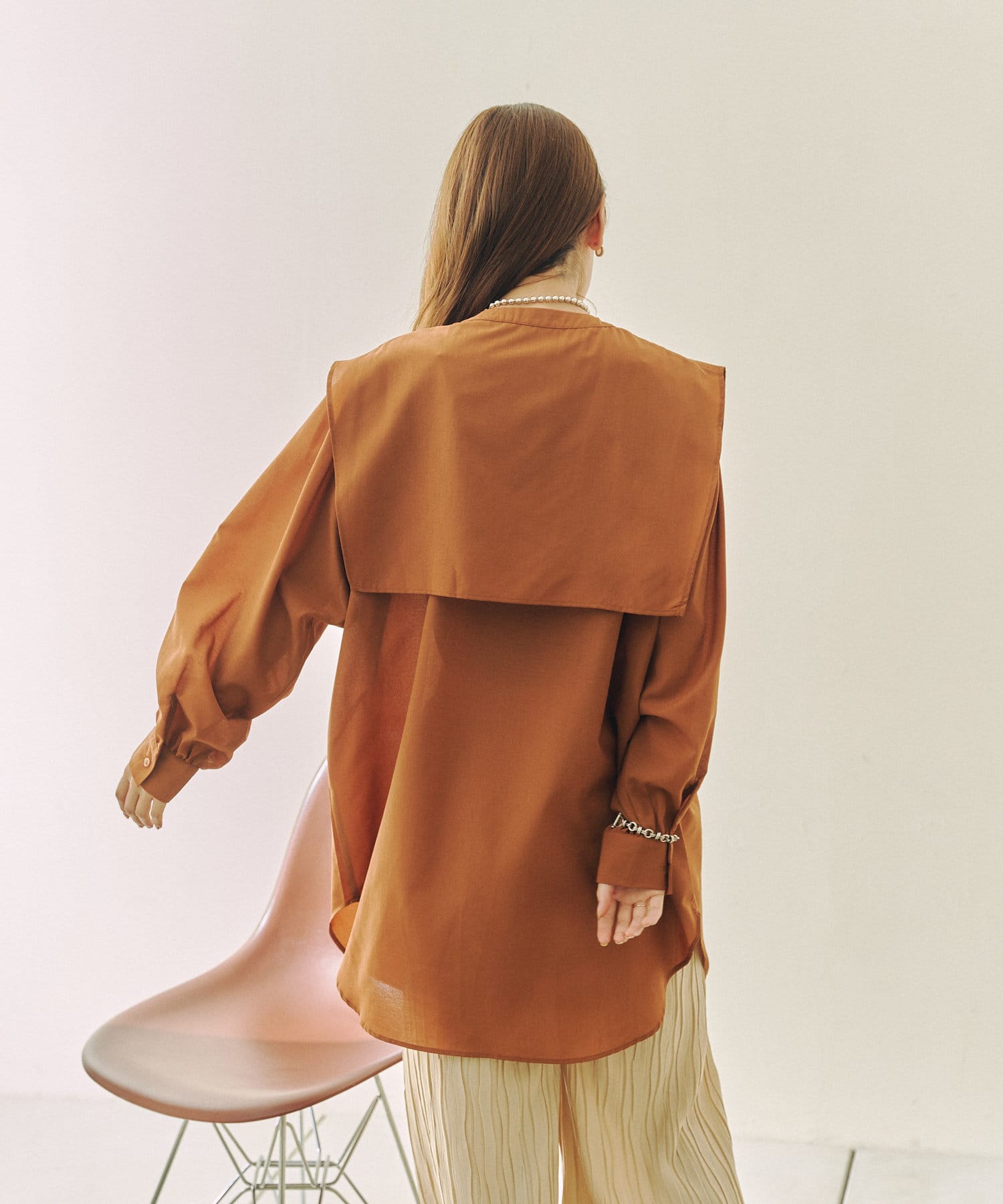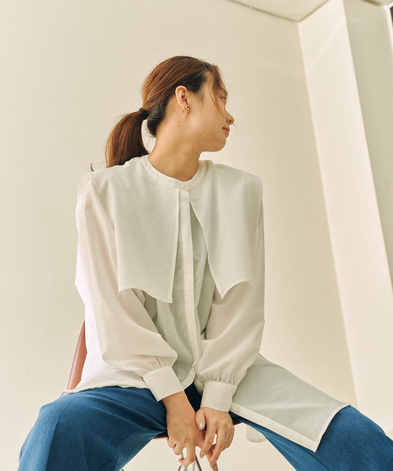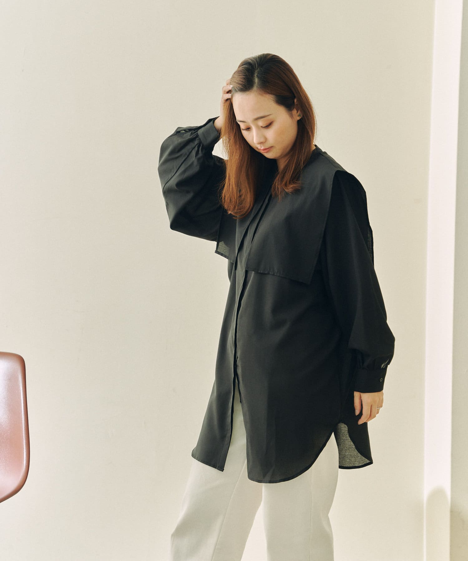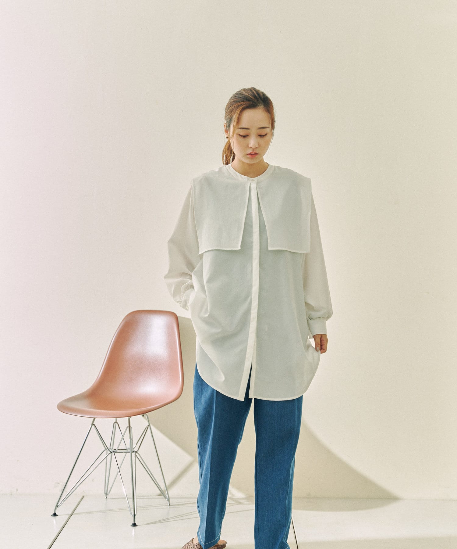 ゆったりとしたシルエットにセーラー襟のブラウス。