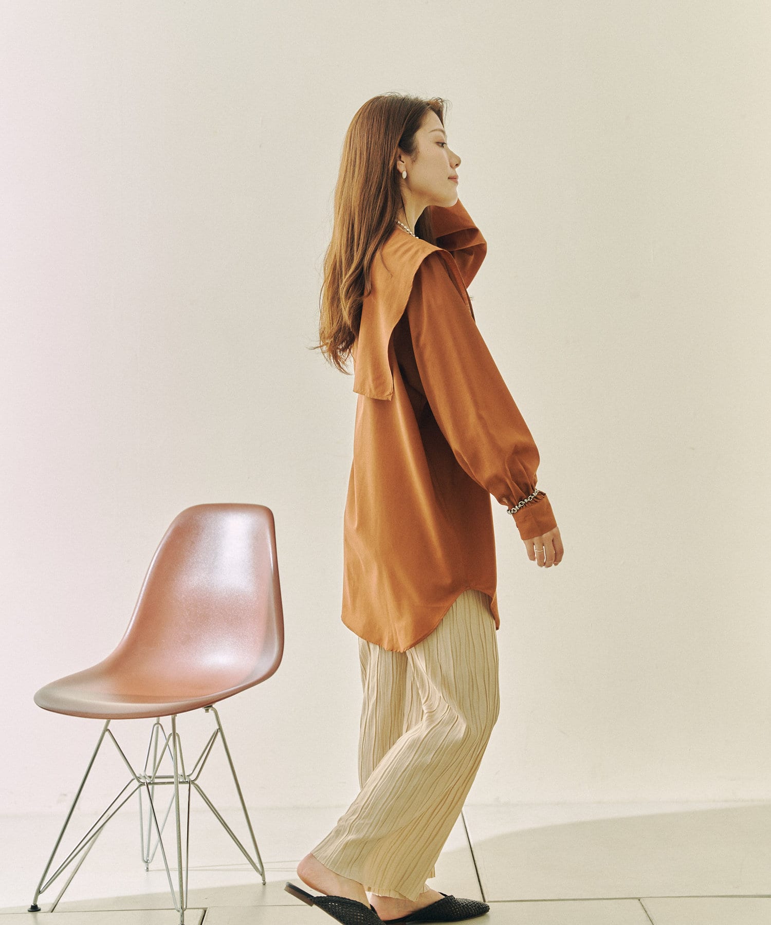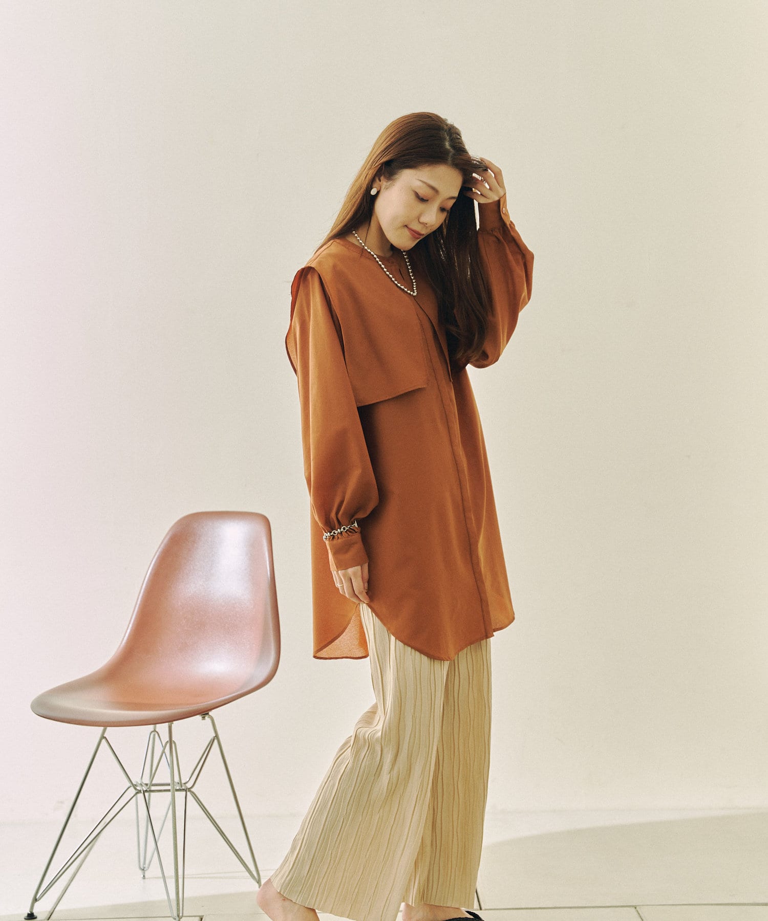 ・程よい透け感なので長袖でも重たく見えません。