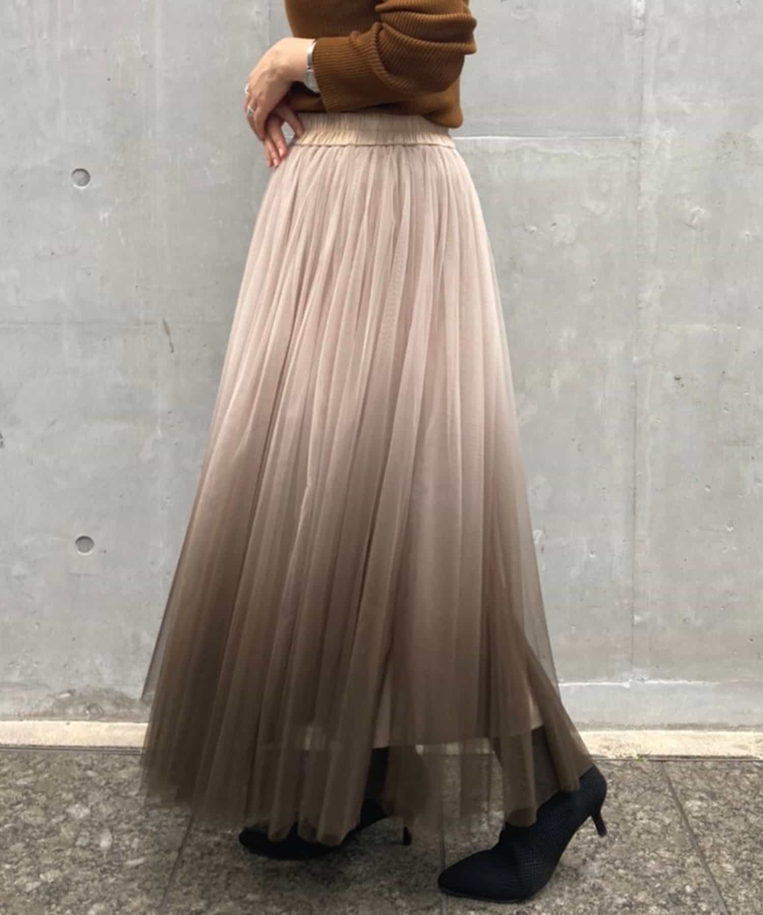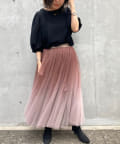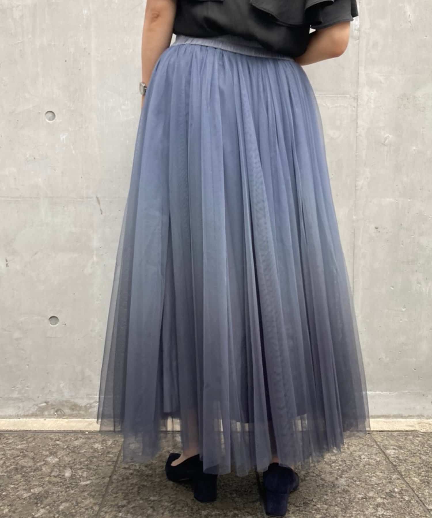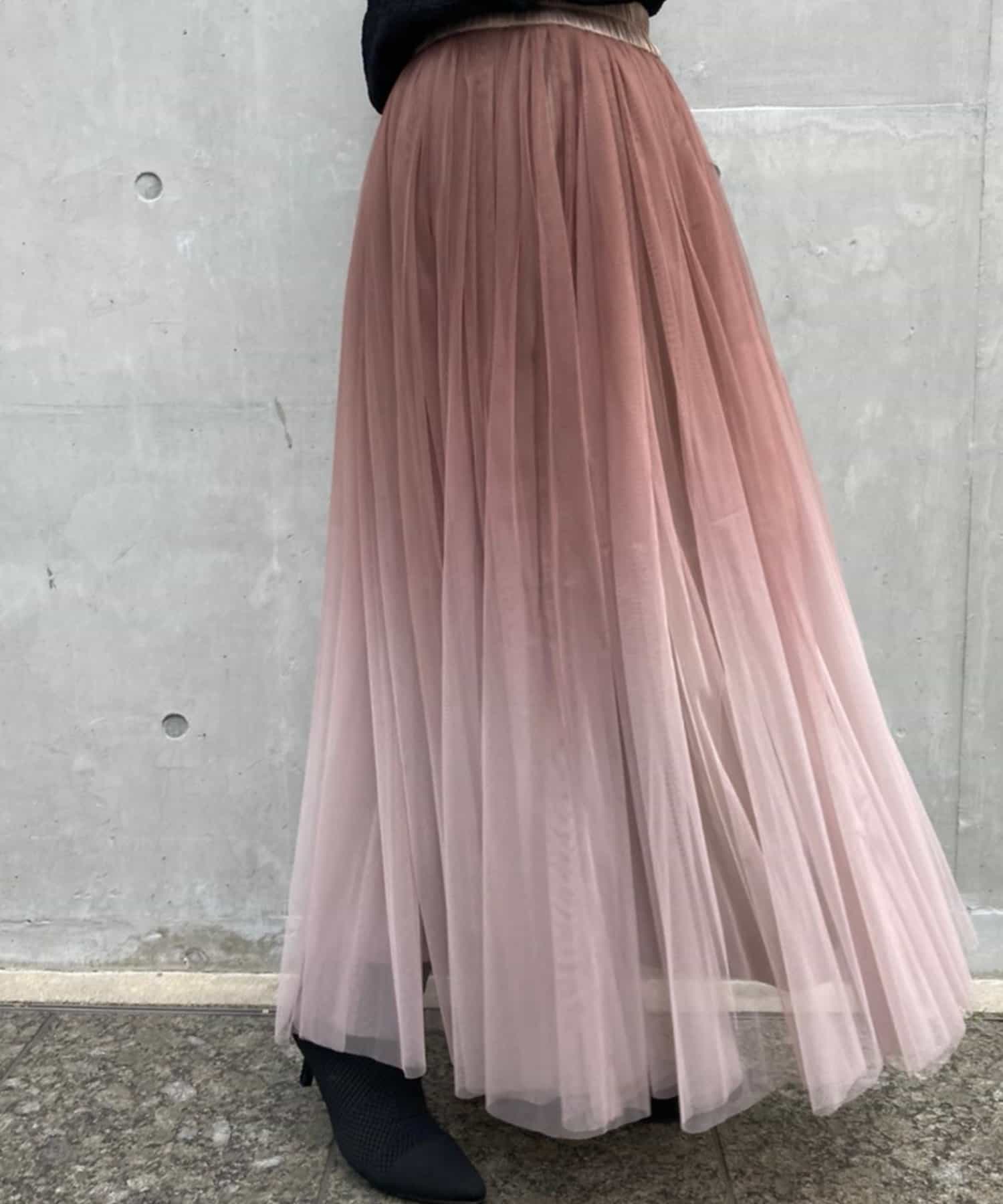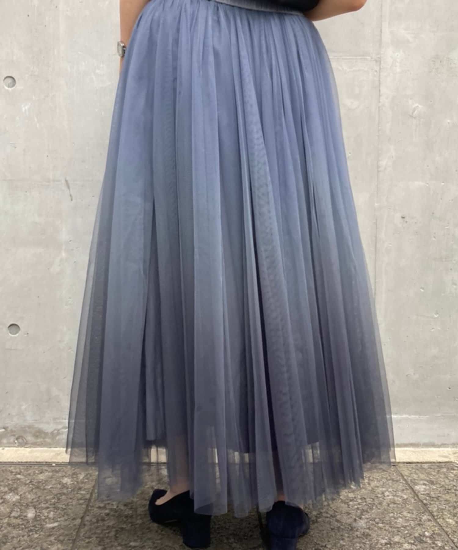 ボリューム感がたっぷりあるシルエット。グラデーション素材が他のチュールスカートと