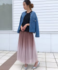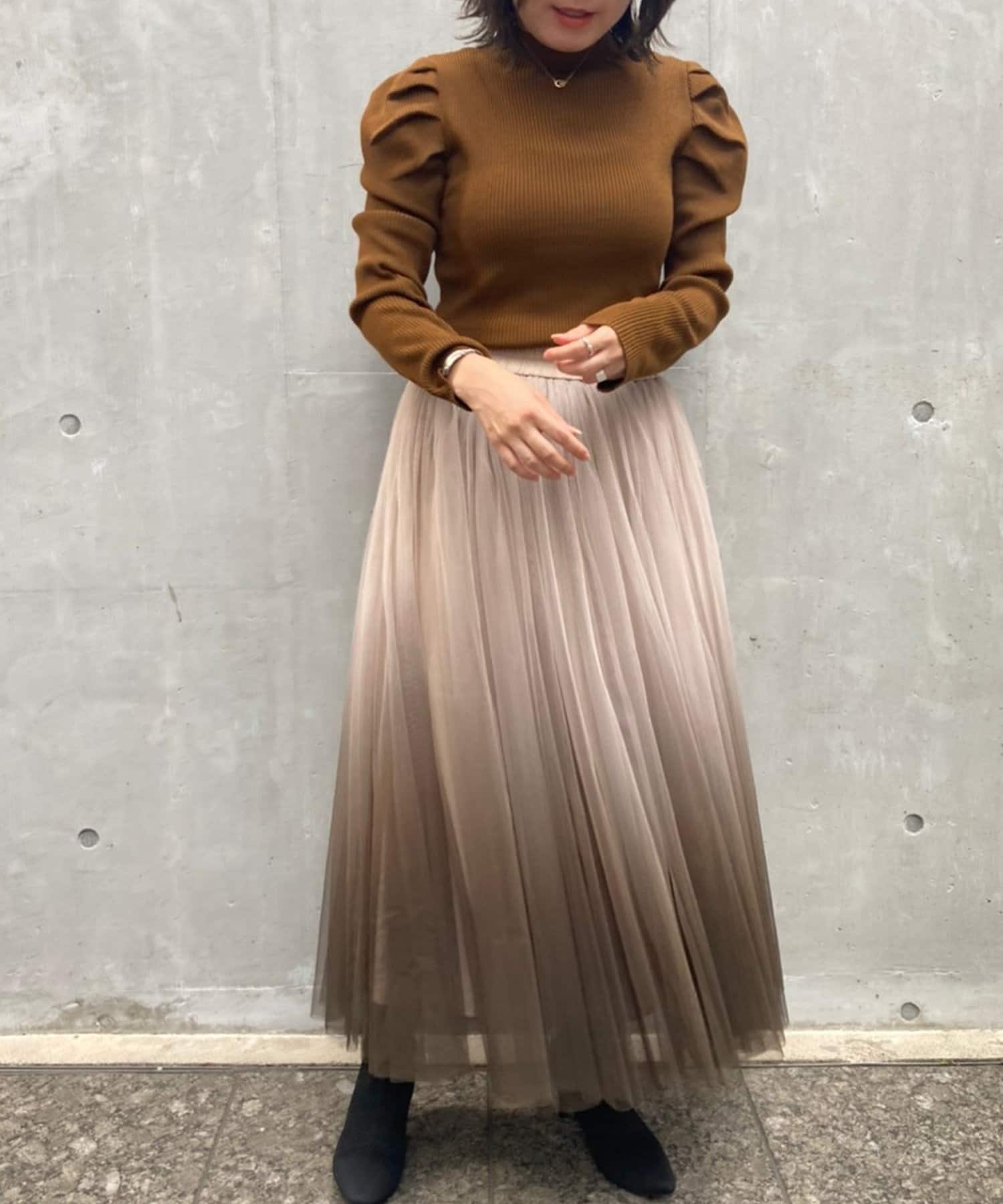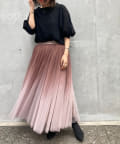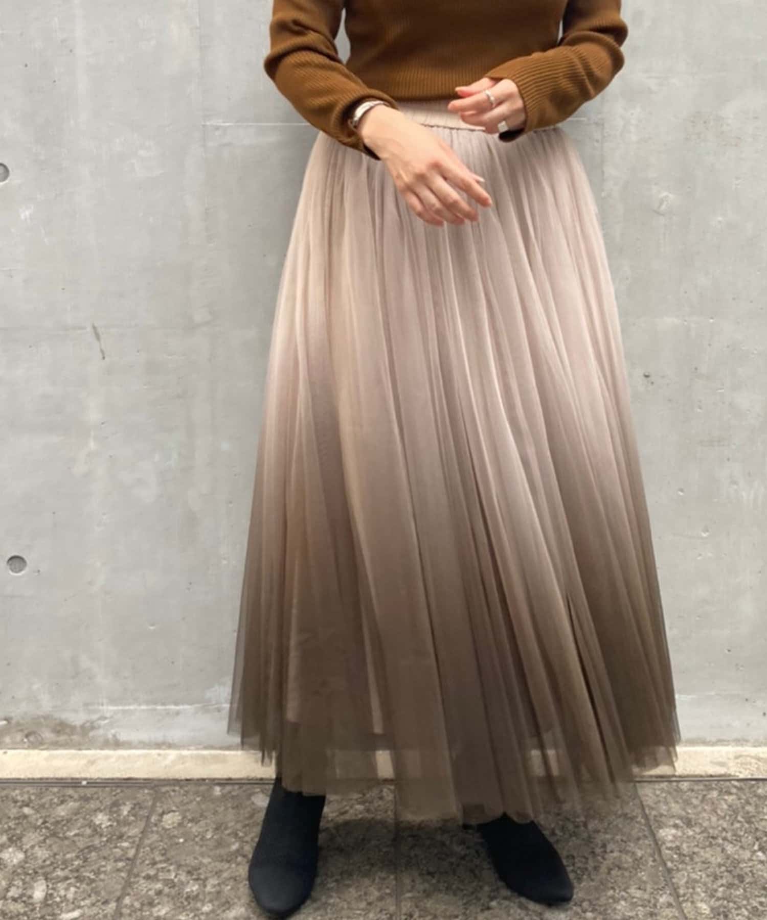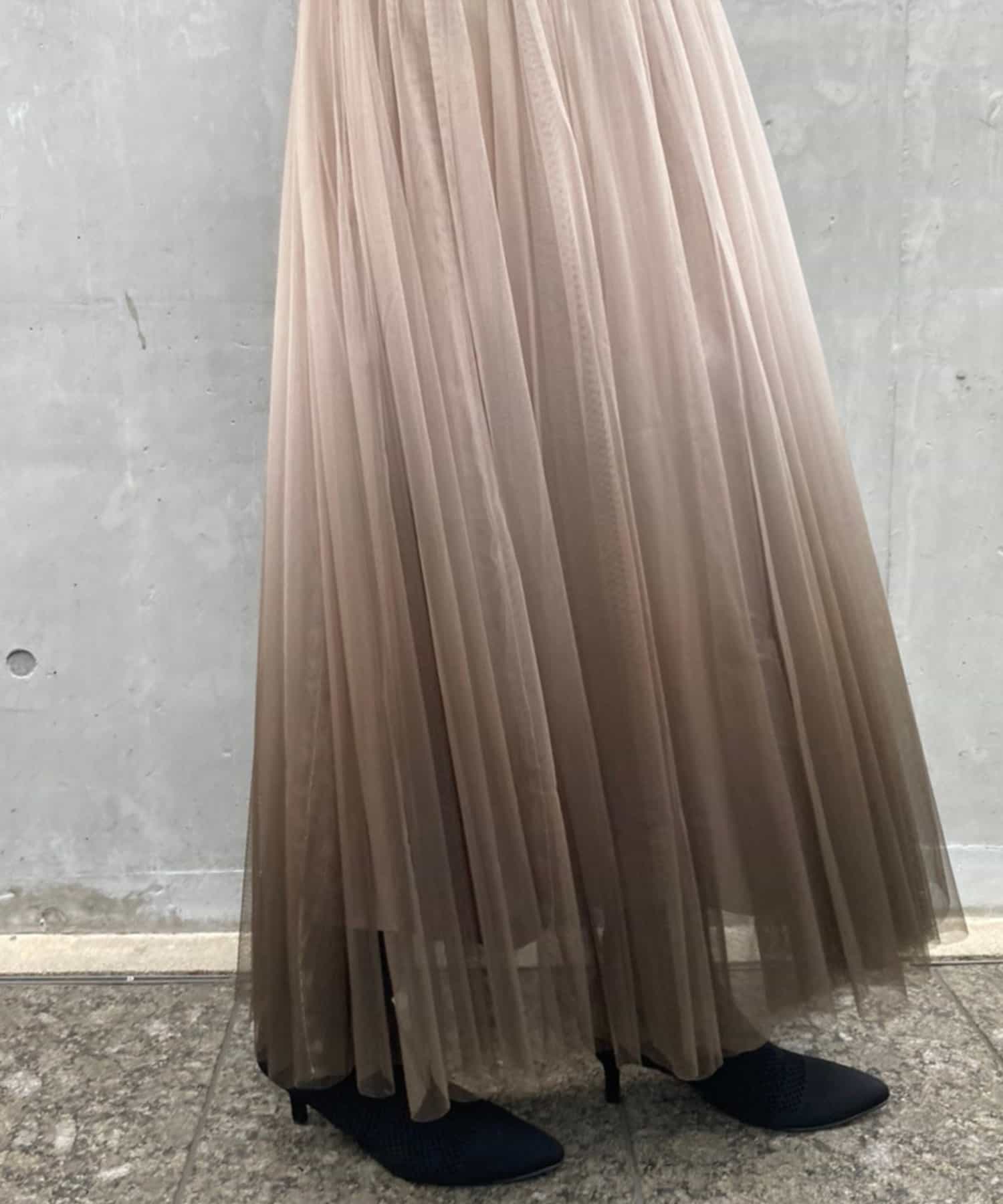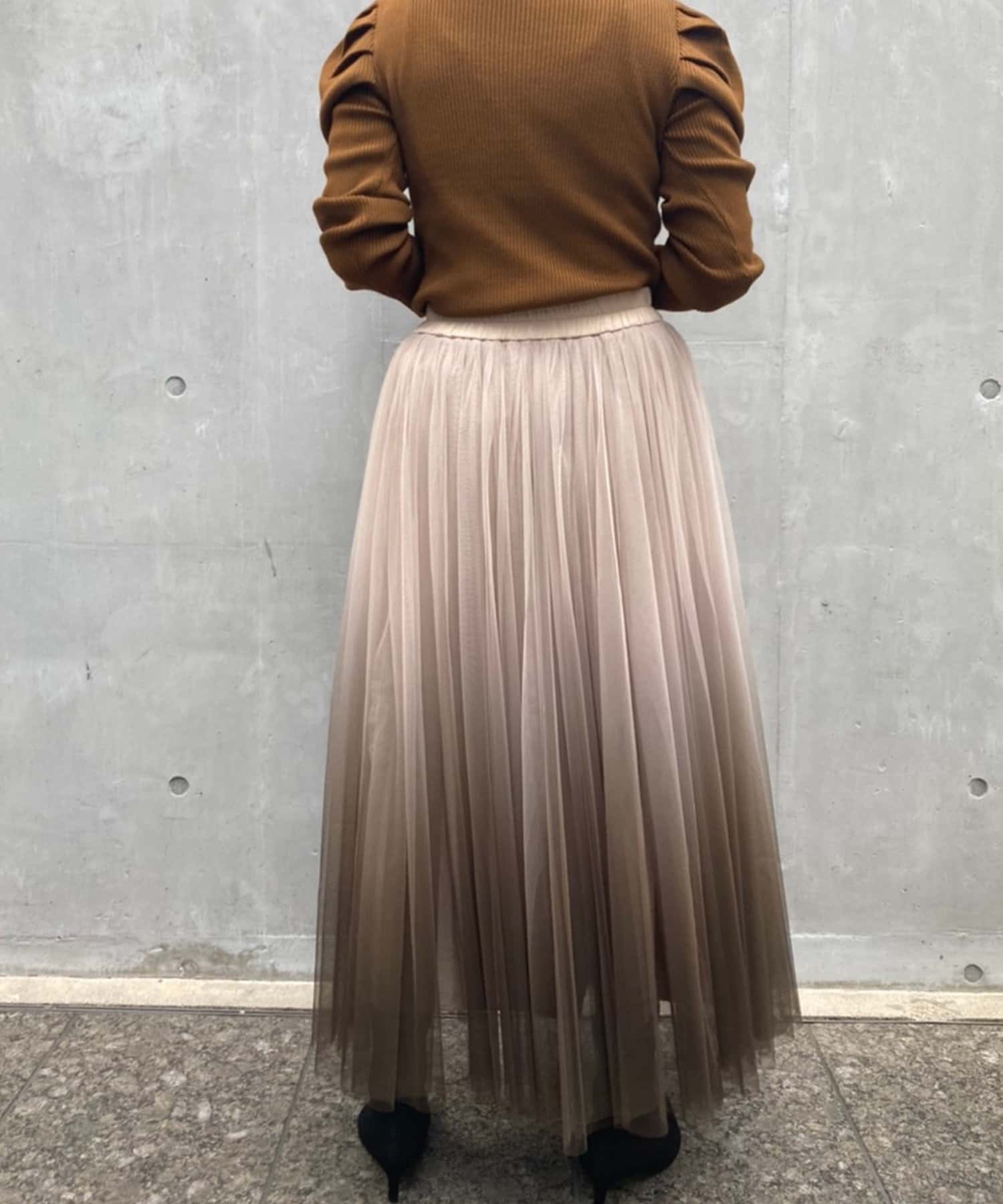 ボリューム感がたっぷりあるシルエット。グラデーション素材が他のチュールスカートと