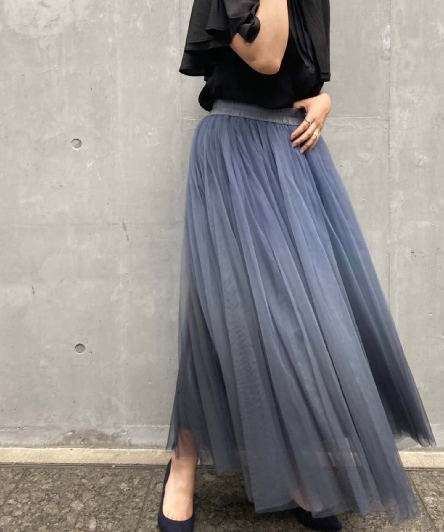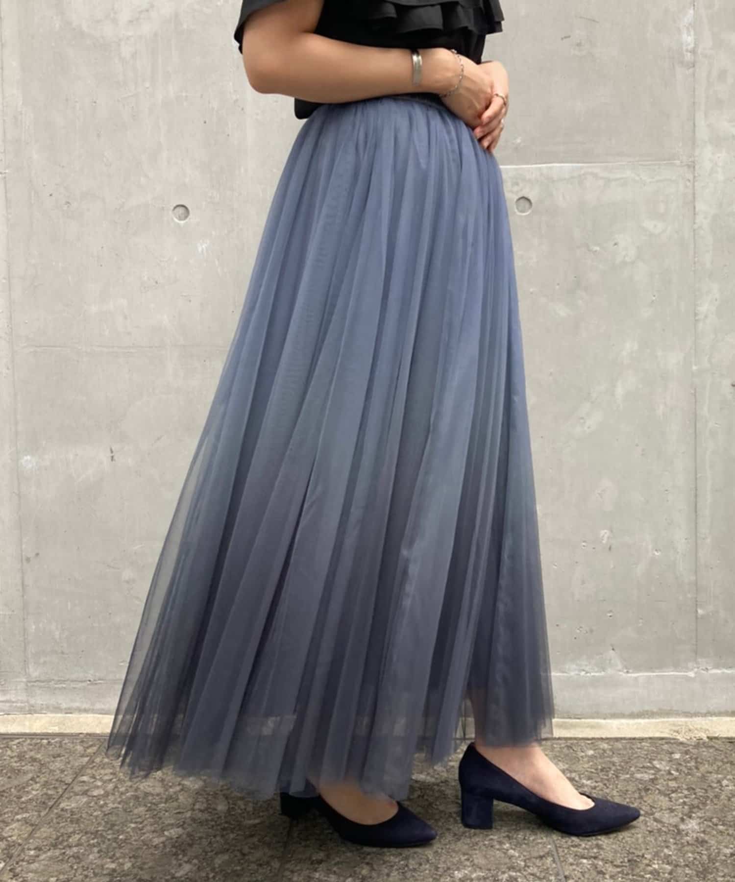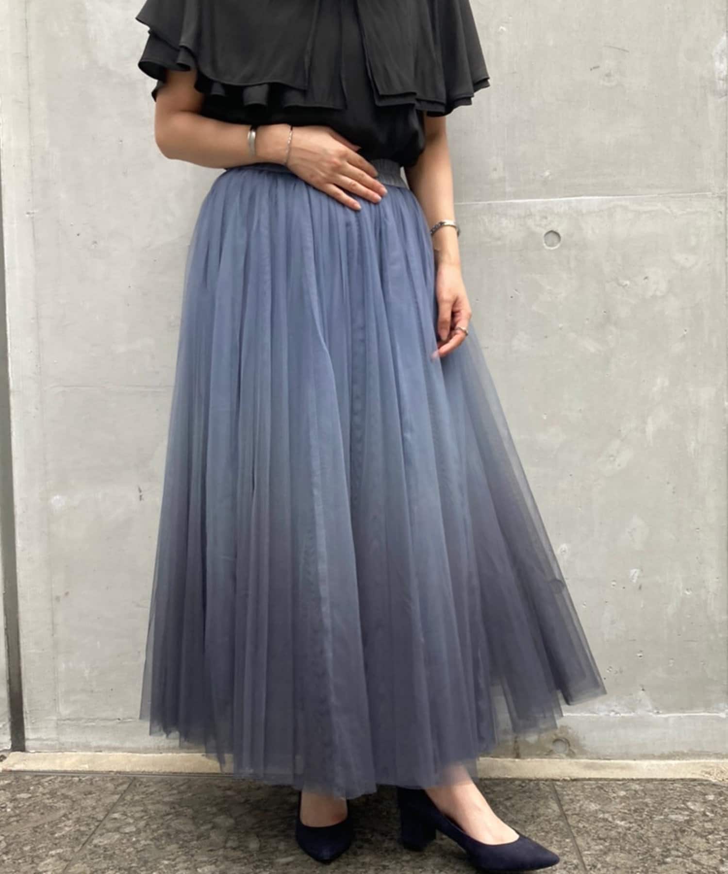 ボリュームのあるチュール素材が女性らしい華やかな印象にしてくれるスカート