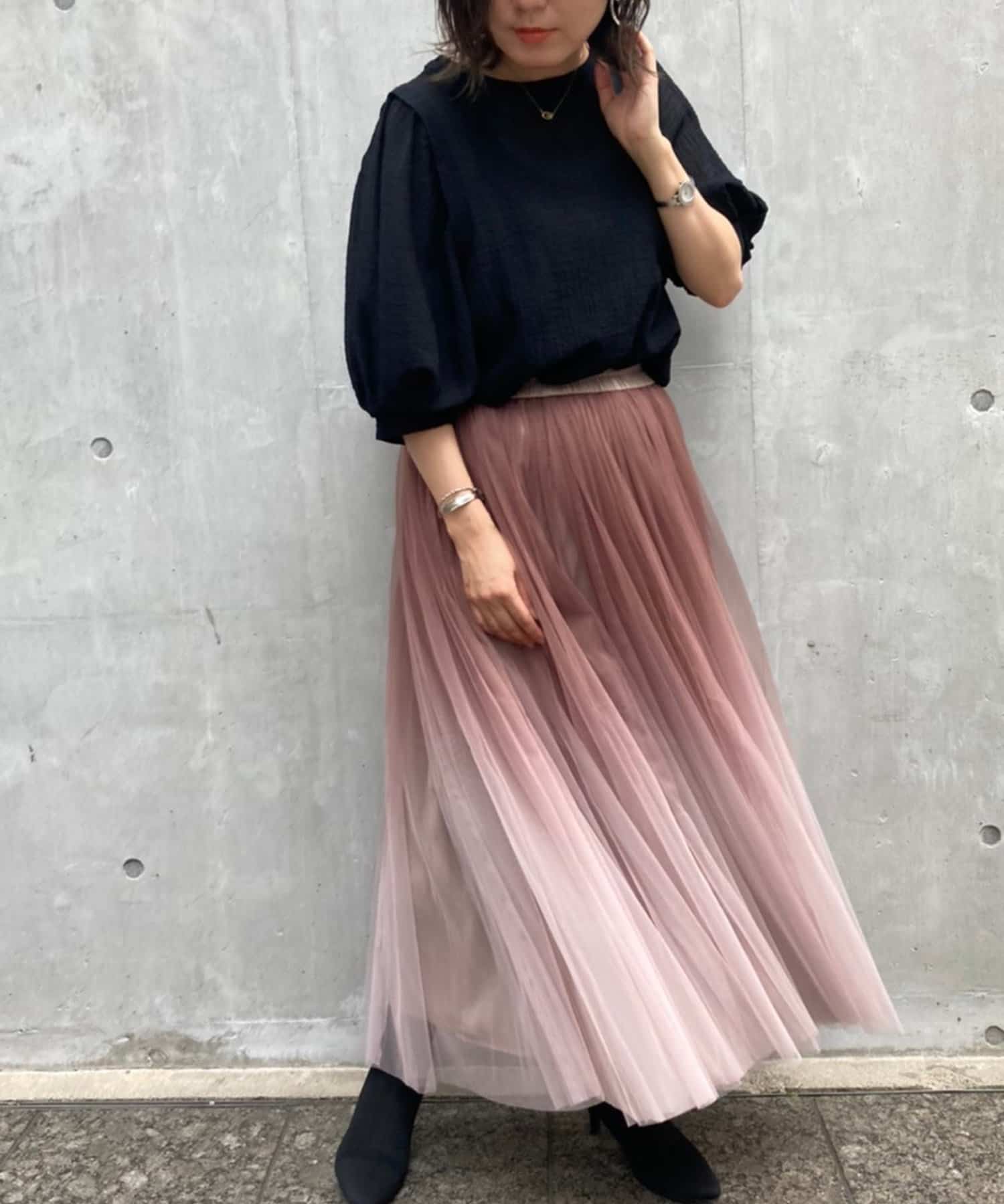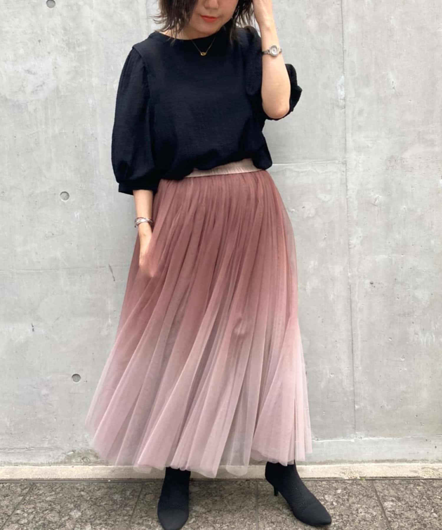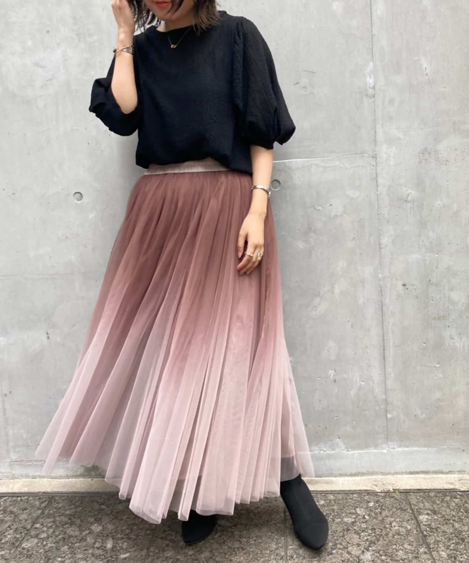ボリュームのあるチュール素材が女性らしい華やかな印象にしてくれるスカート