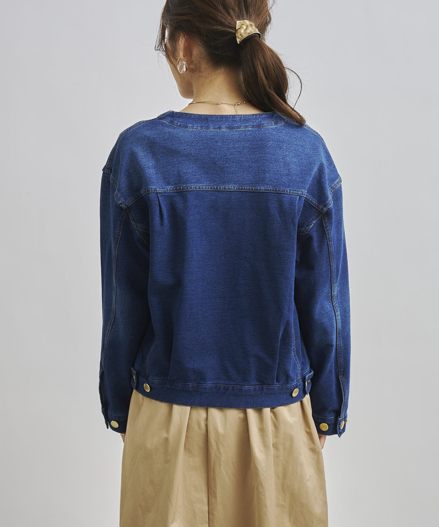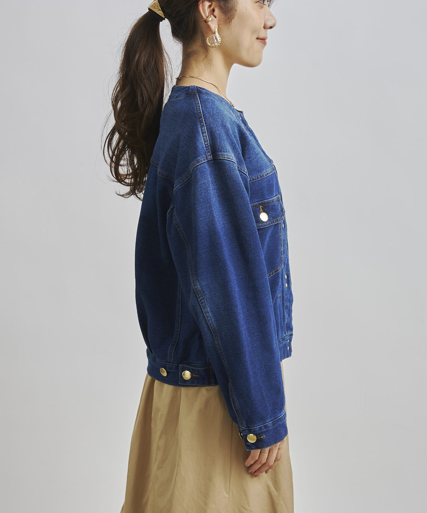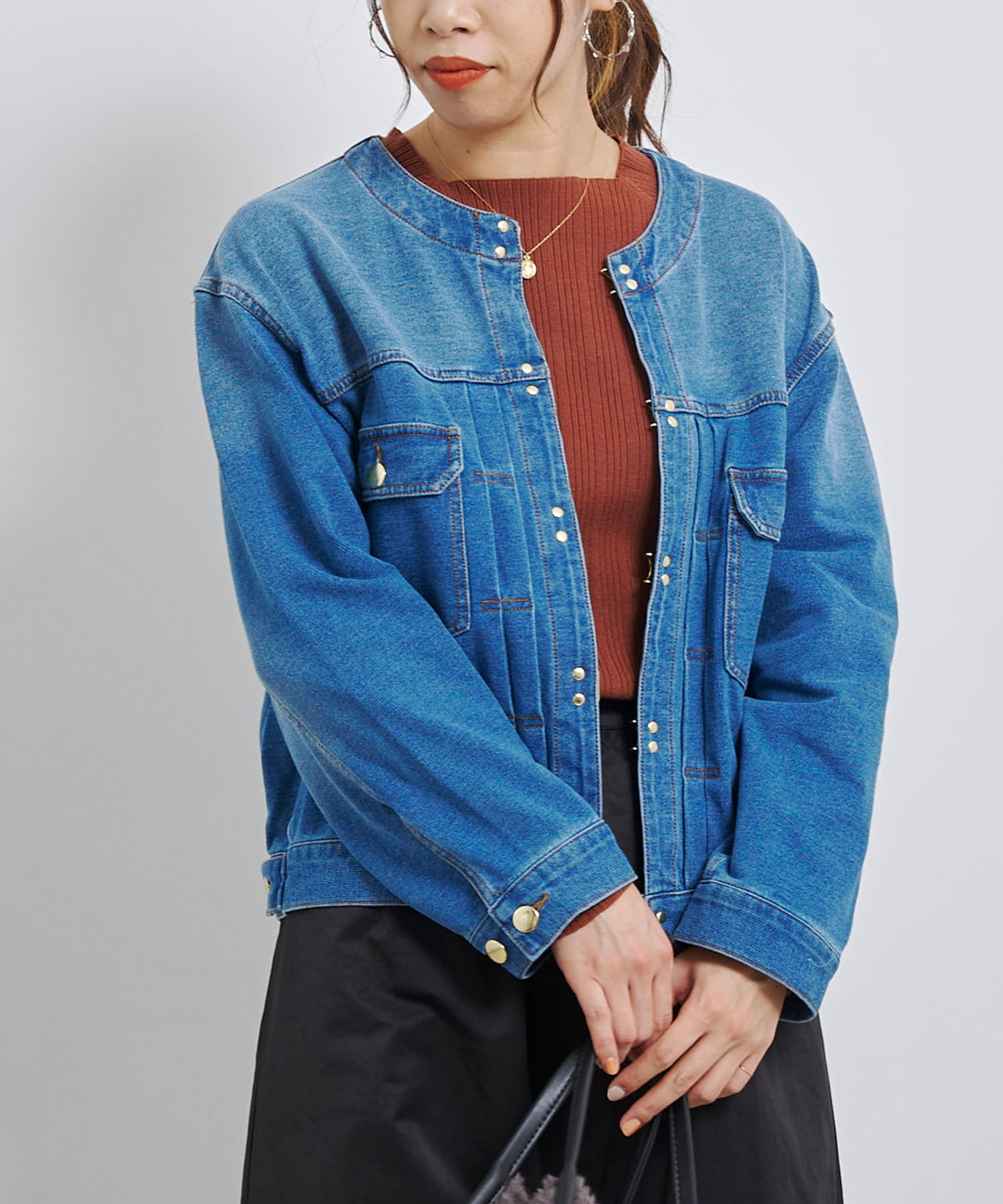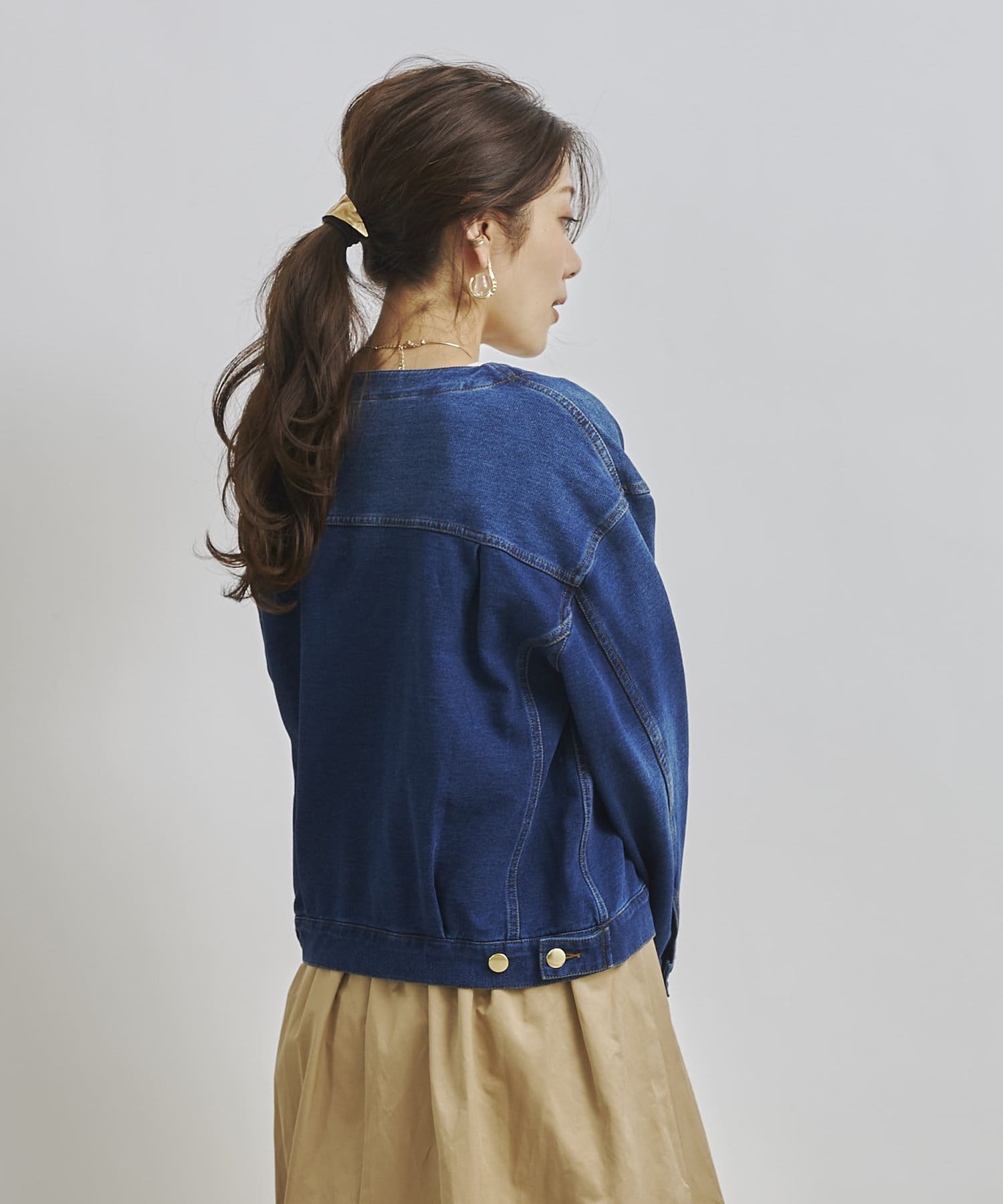 カットデニムという伸縮性がある生地感。秋口や春先に大活躍するアウターです。