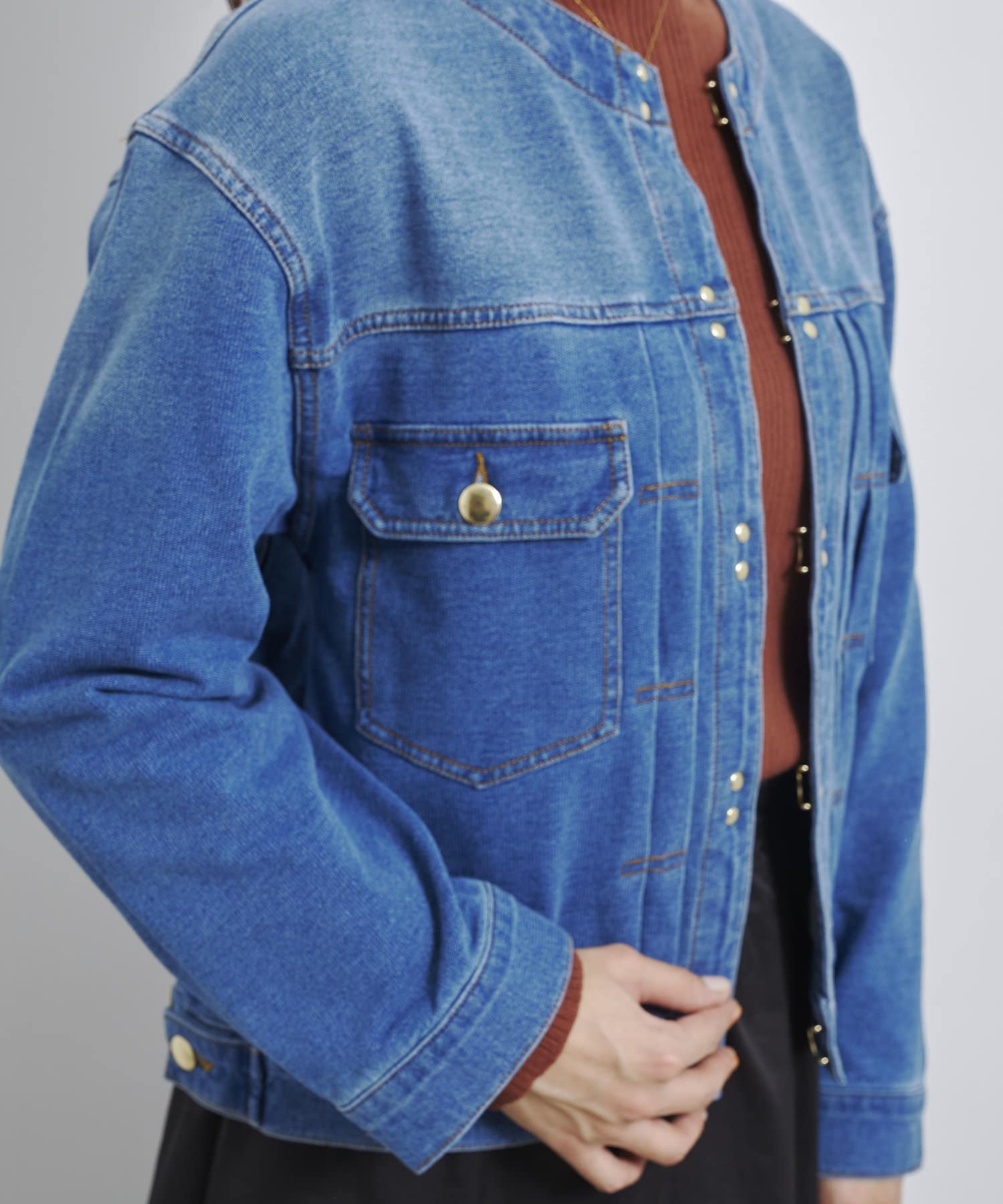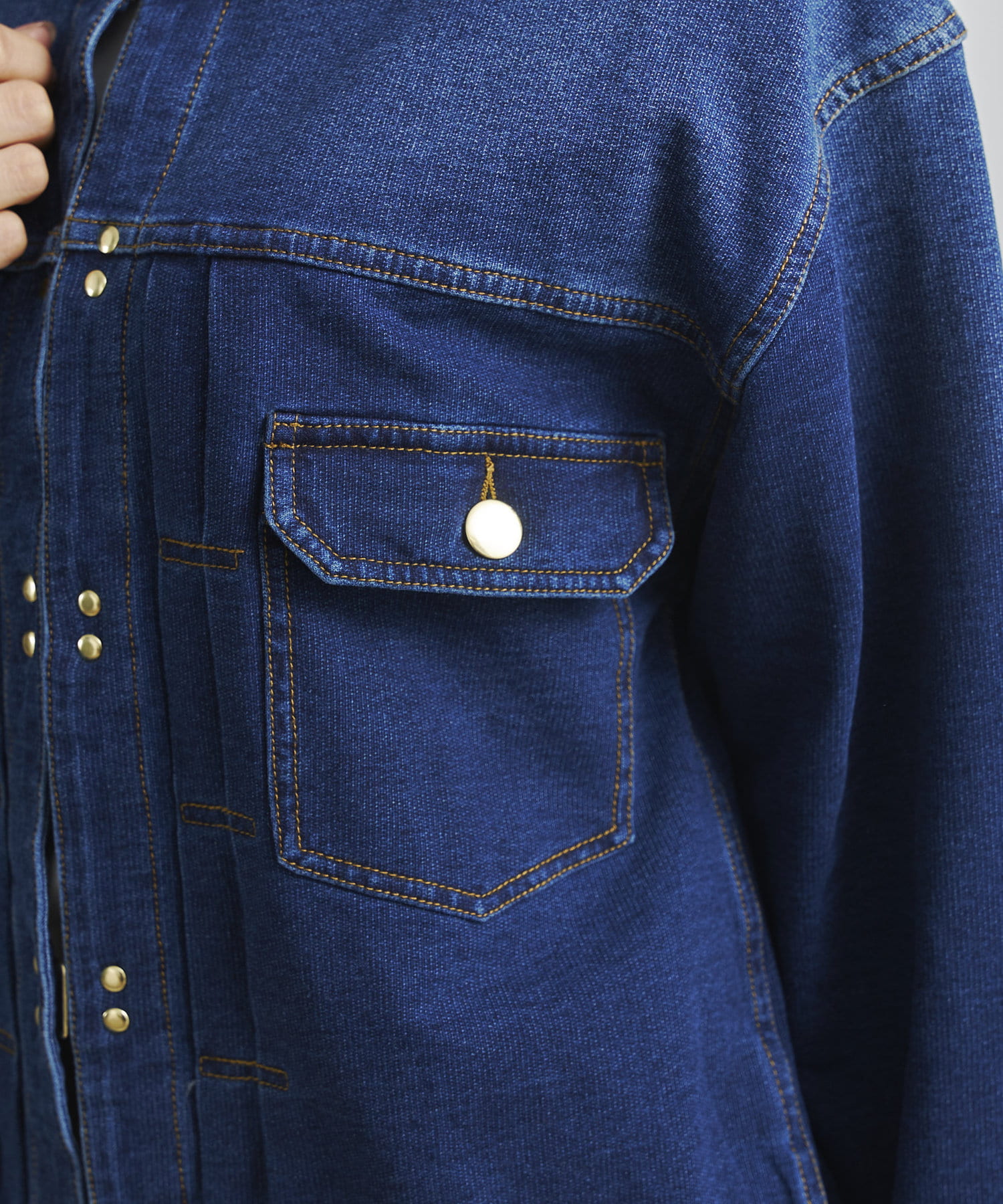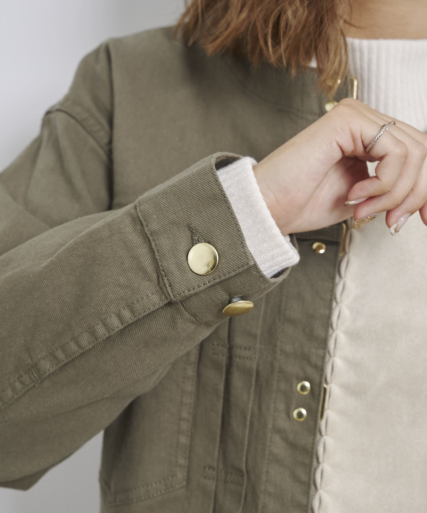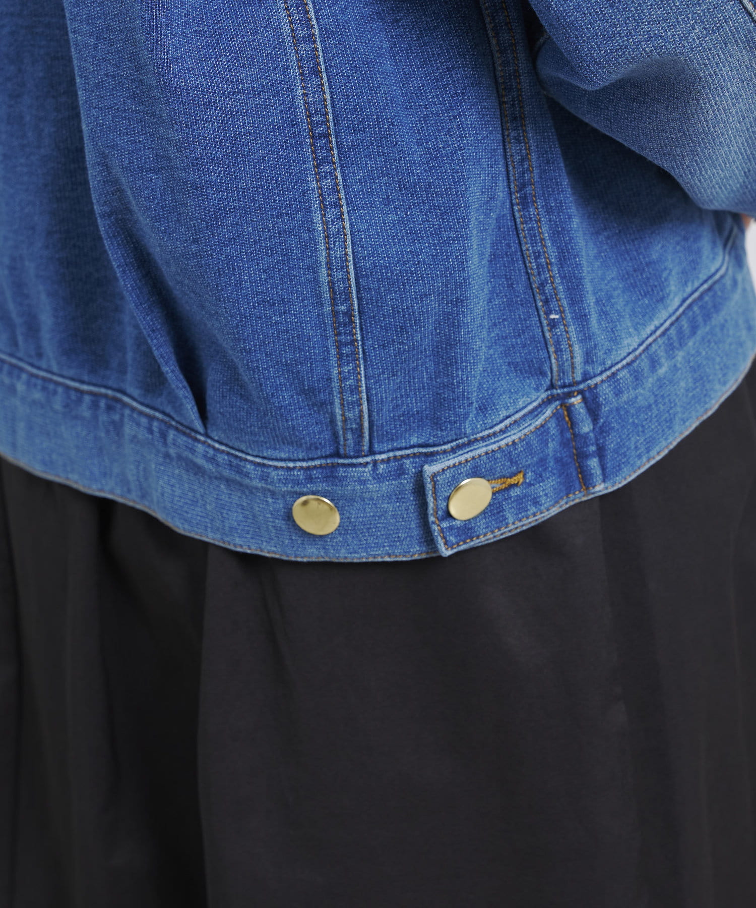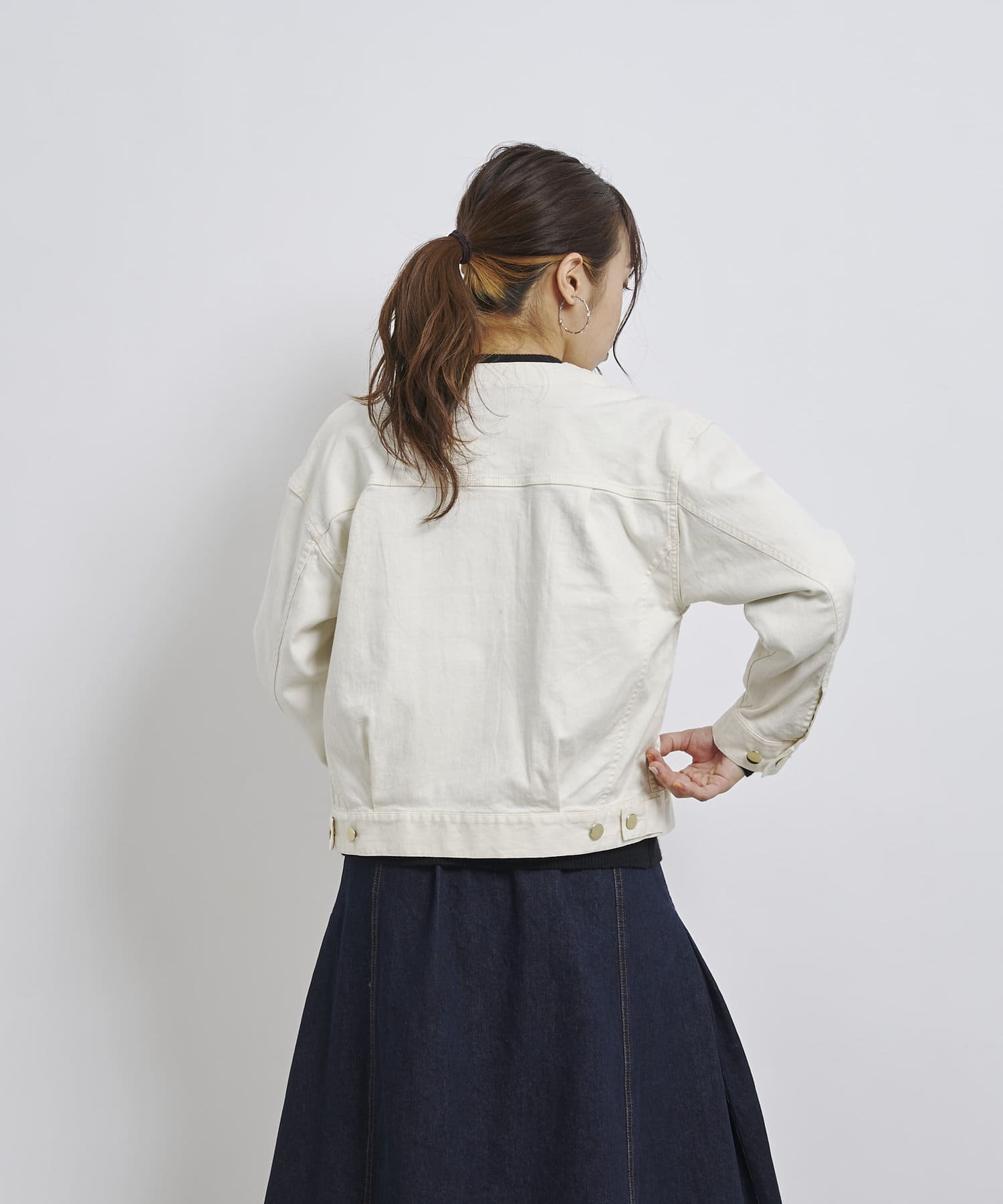 カットデニムという伸縮性がある生地感。秋口や春先に大活躍するアウターです。