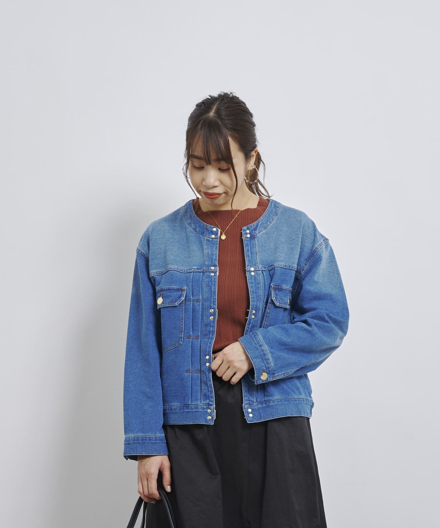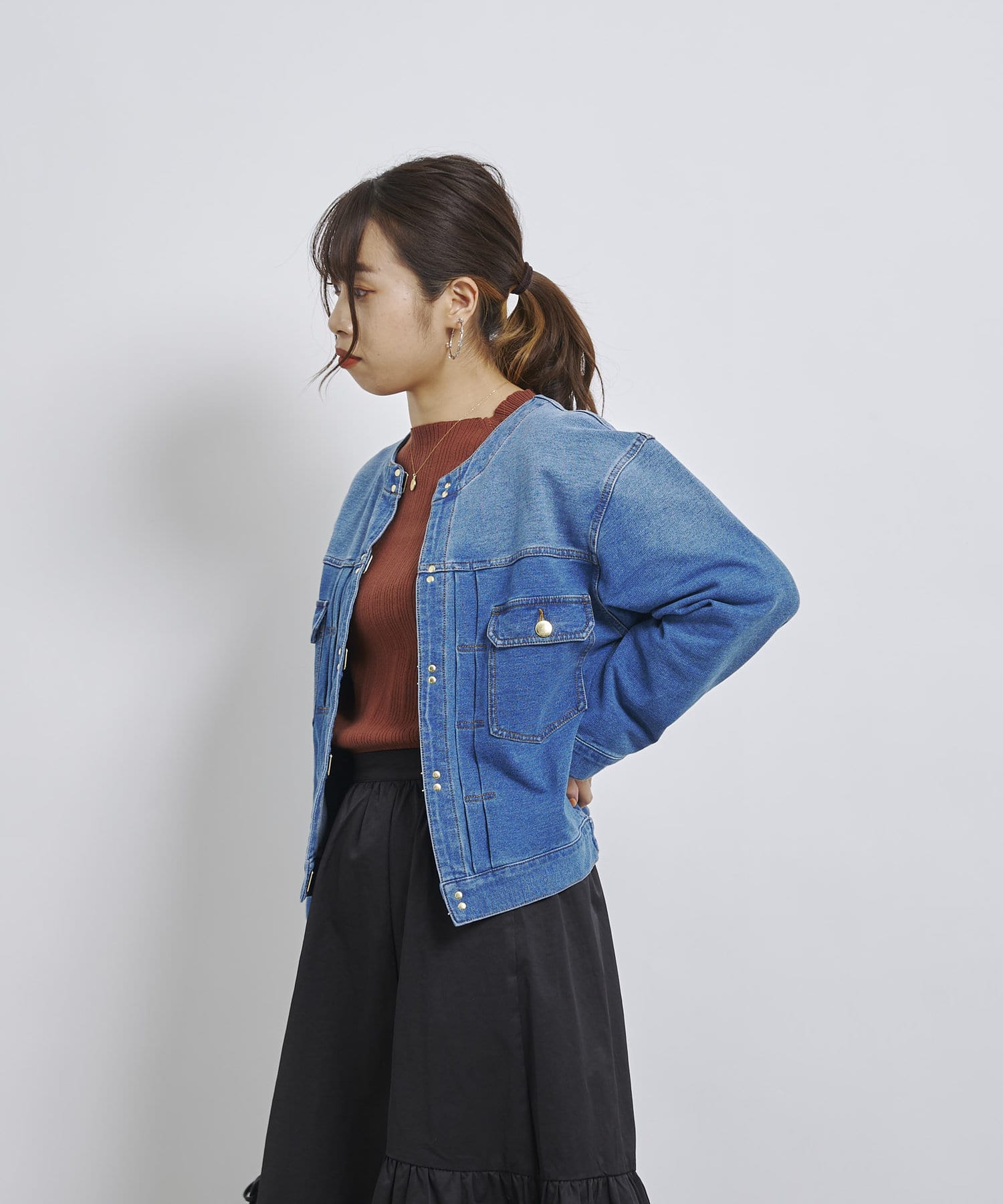 Chez toiの定番人気のデニムジャケット カットデニムが伸縮性もよく着心地抜群!!