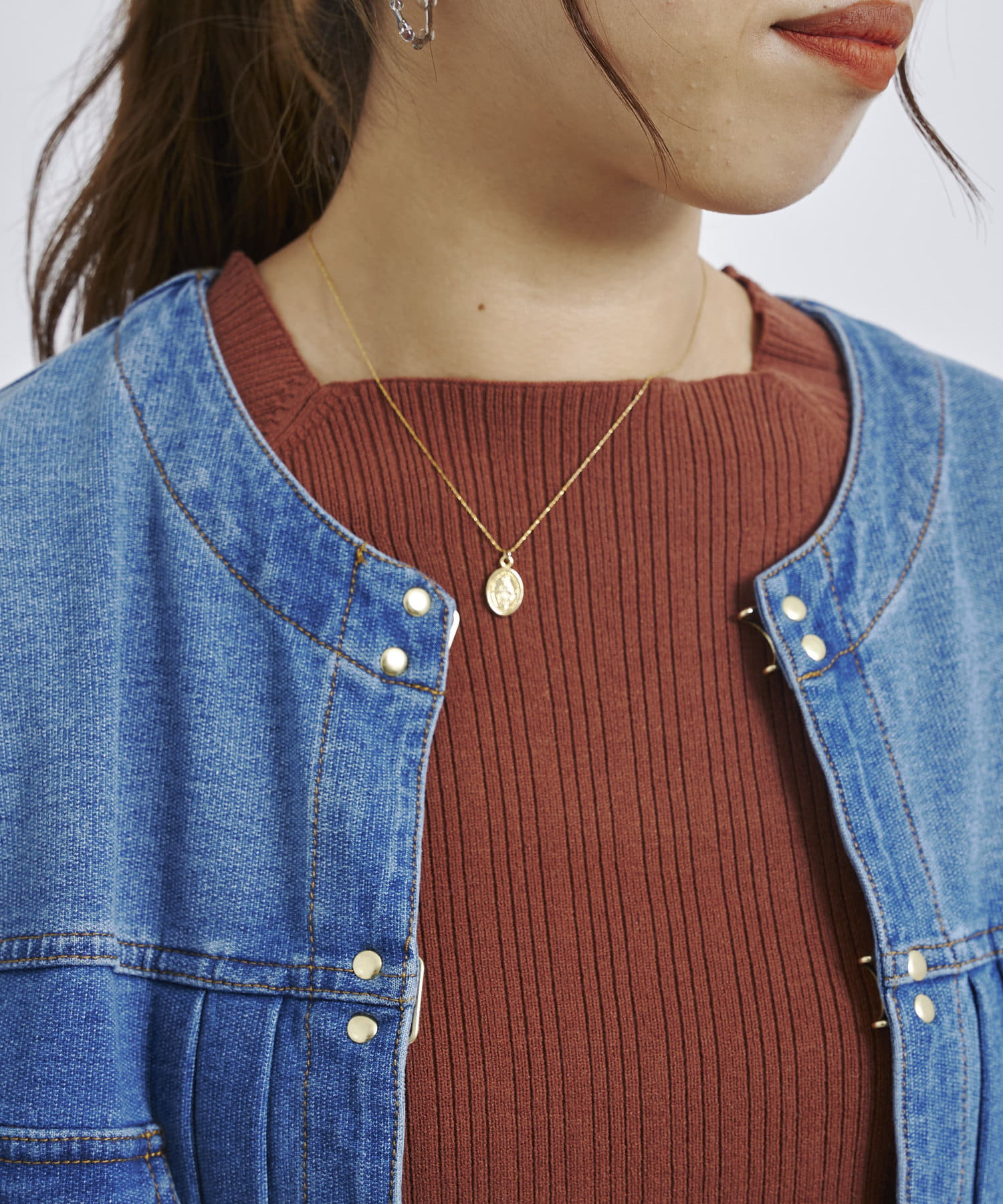 ノーカラーとGLD金具が一癖ありのデザイン。オーバーサイズではないので