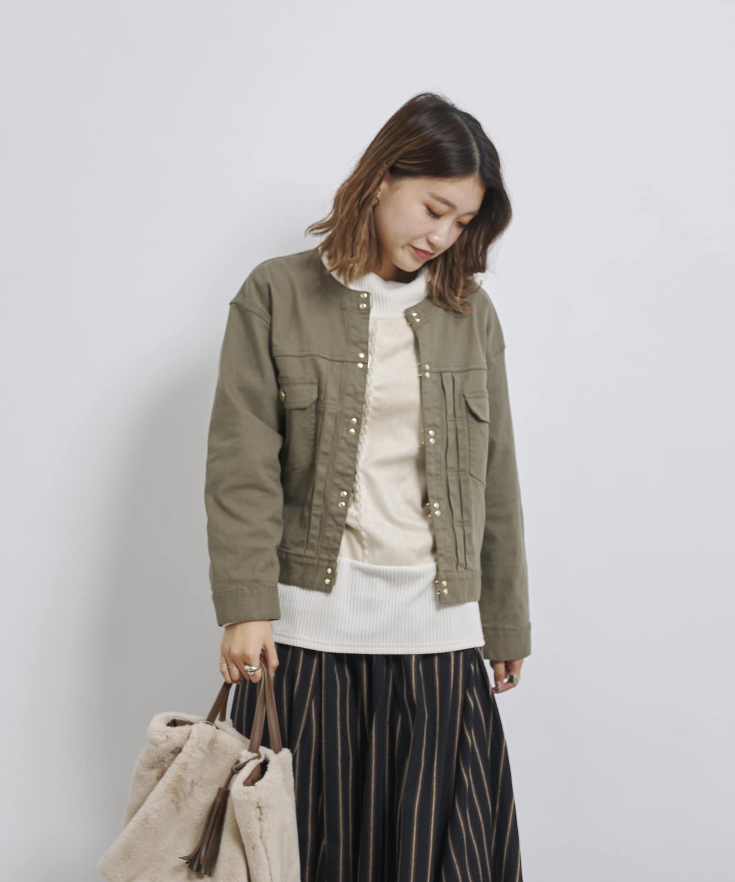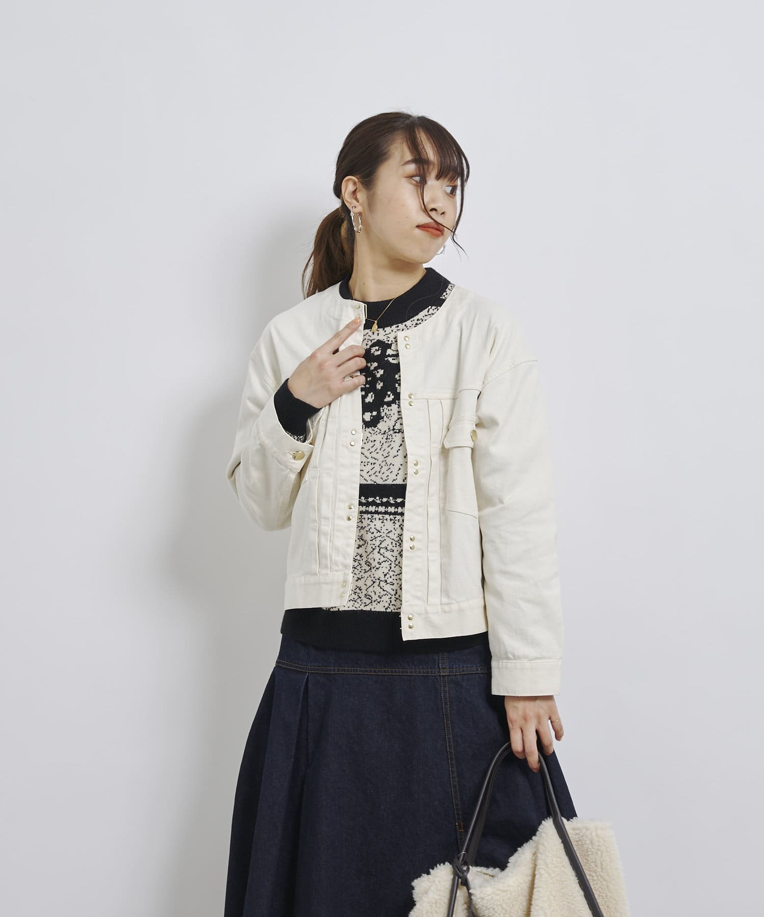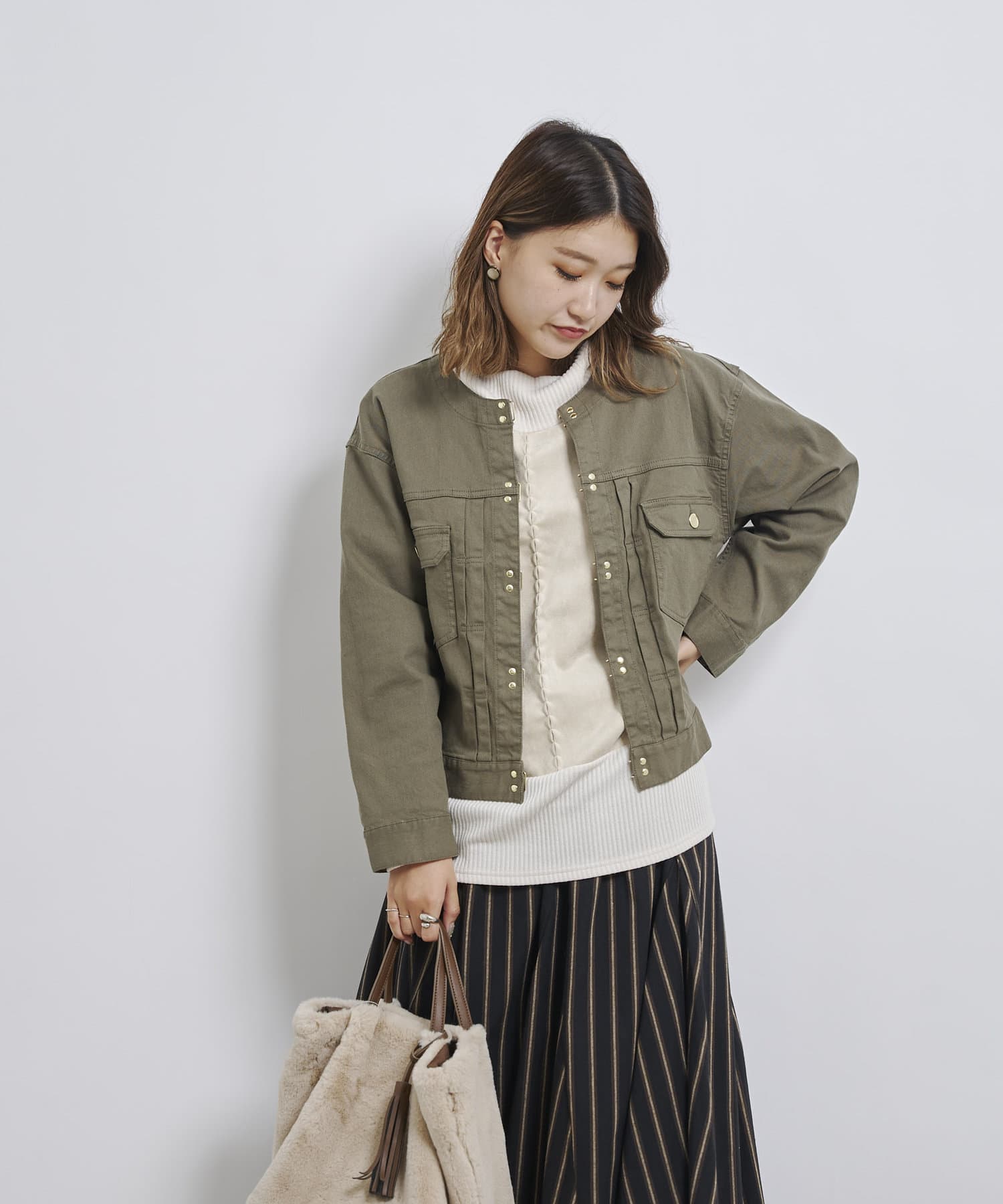 ・ノーカラーGジャンで首元もスッキリ見えるので、秋冬はマフラーとの相性も◎