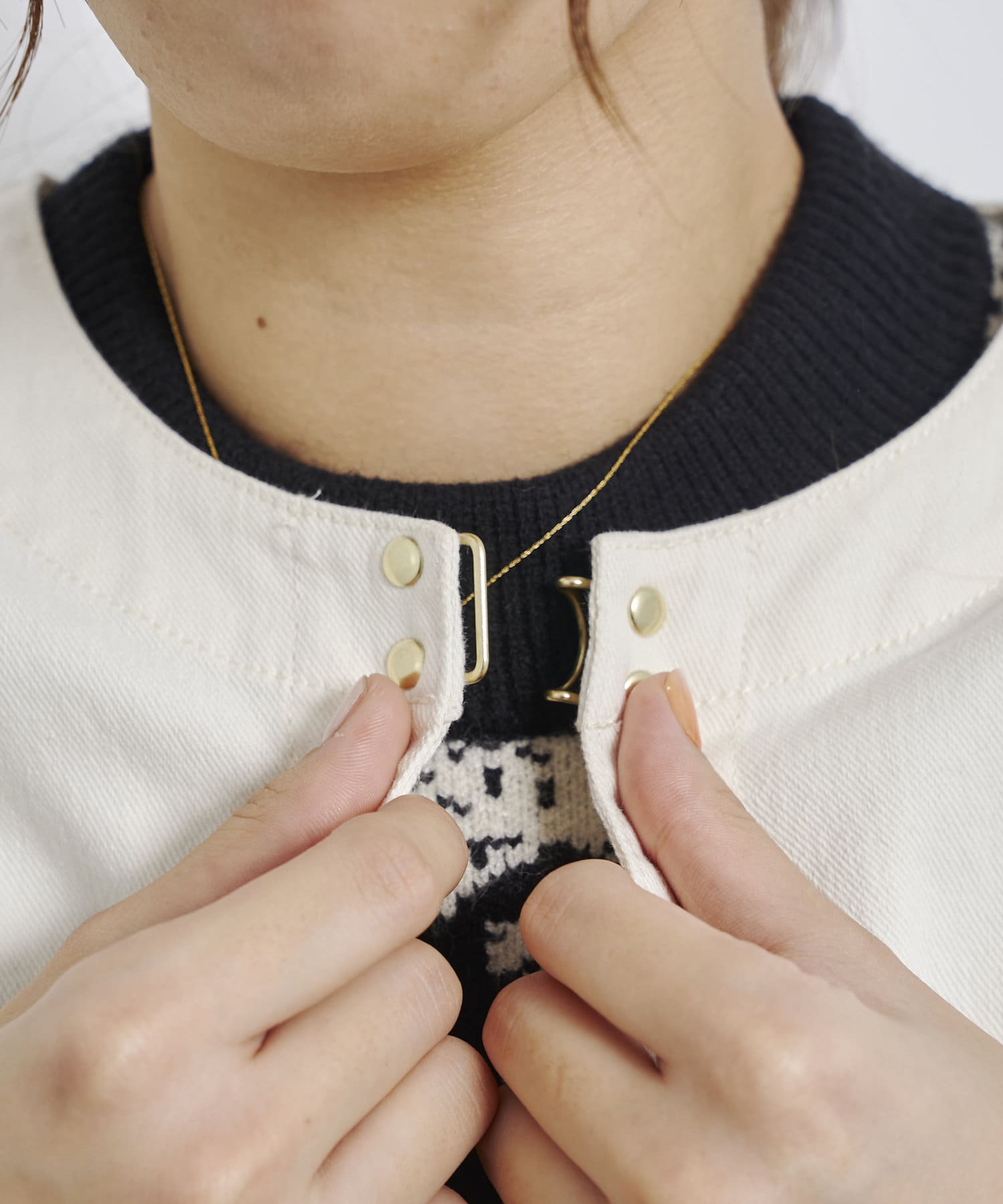 ・ゴールドの留め具が一癖あり。きれいめ見えします。
