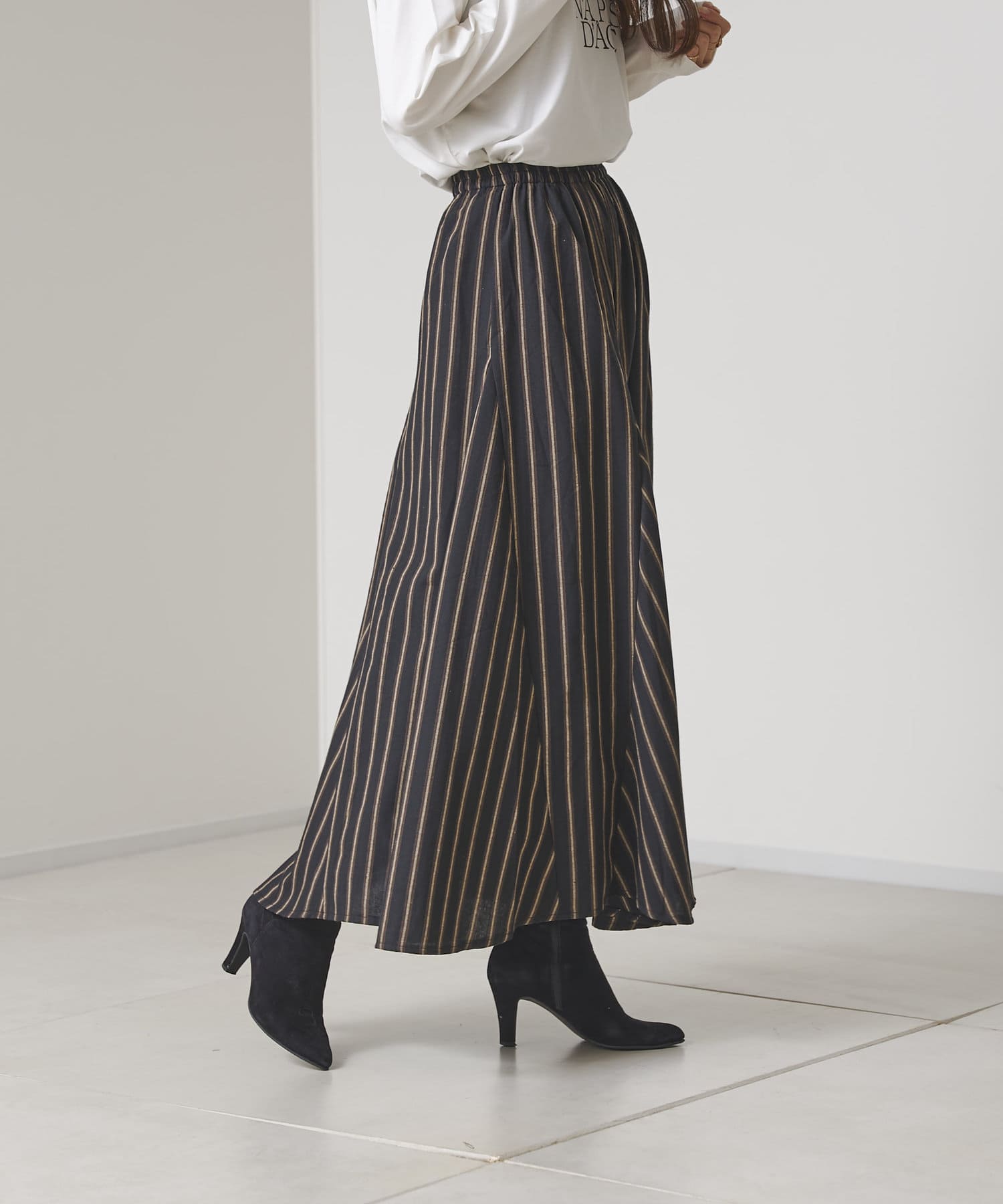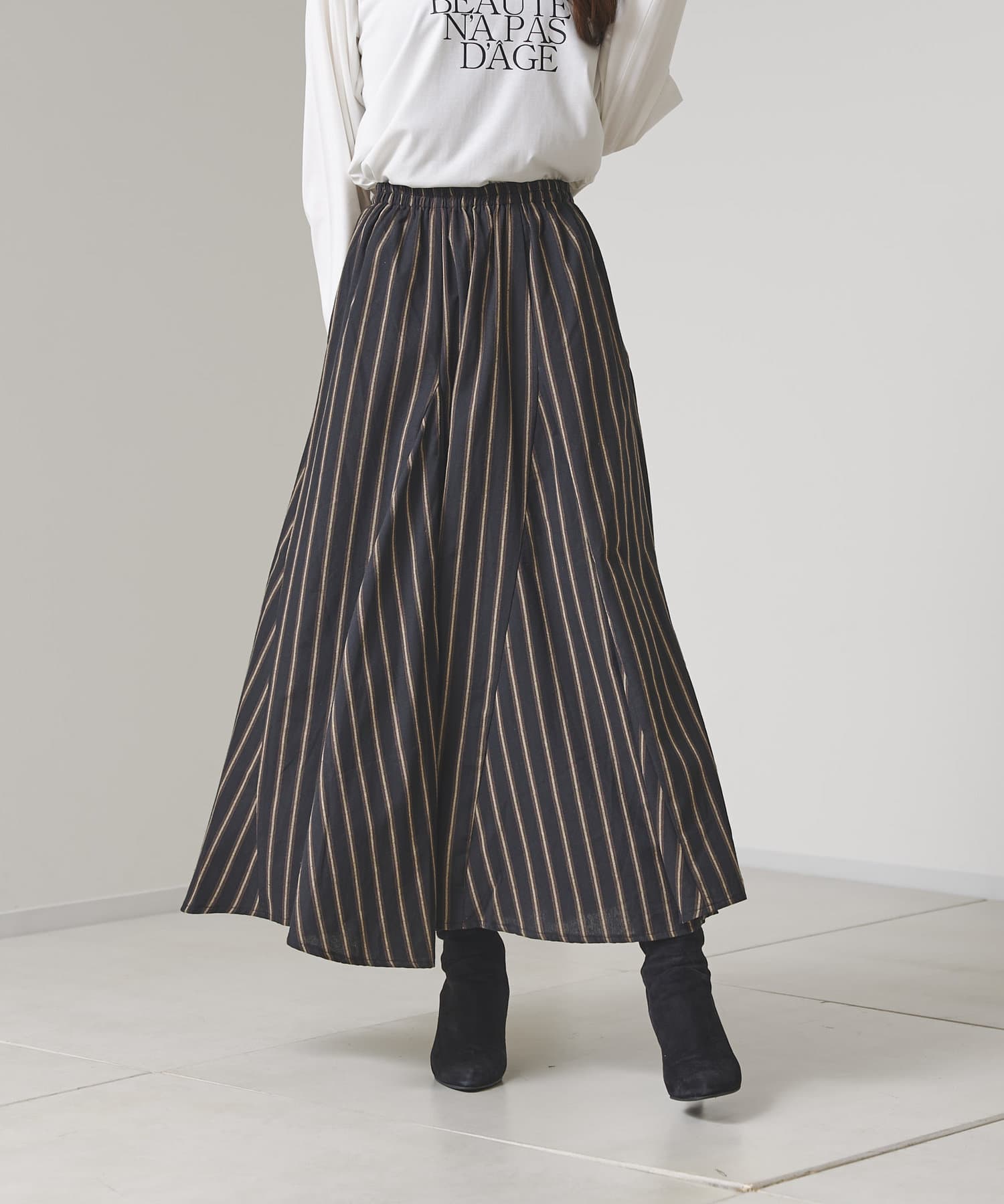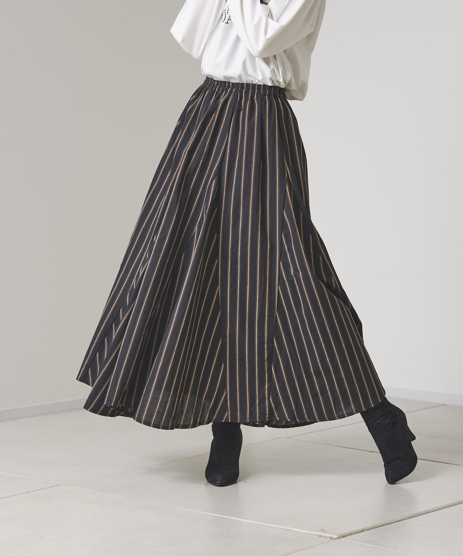 ・ふわりと裾が広がるロング丈のシルエットは清楚なフェミニン風を吹かせます。