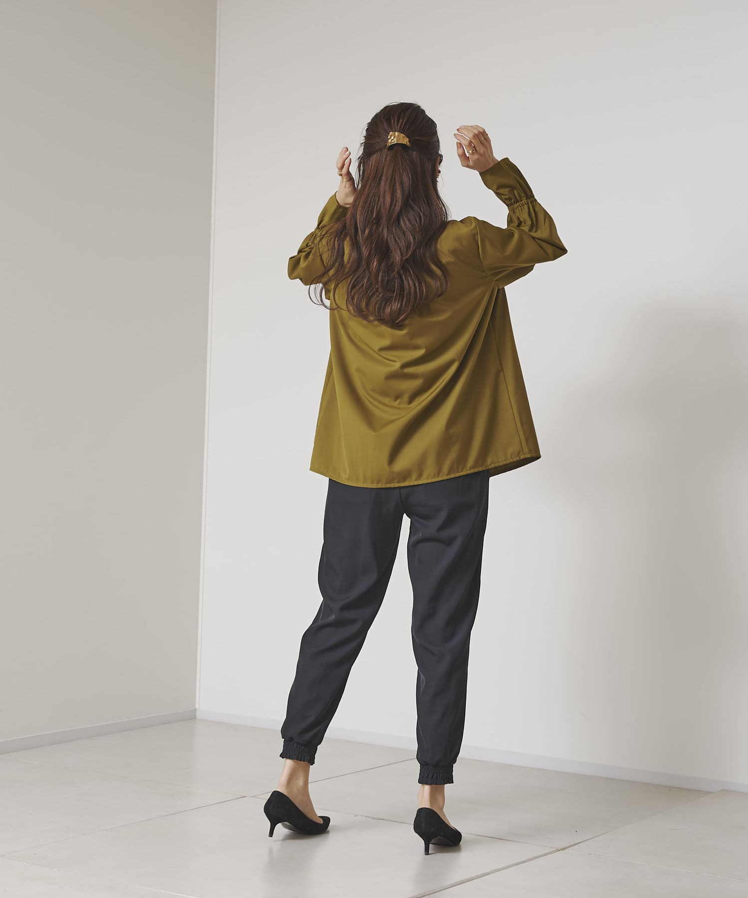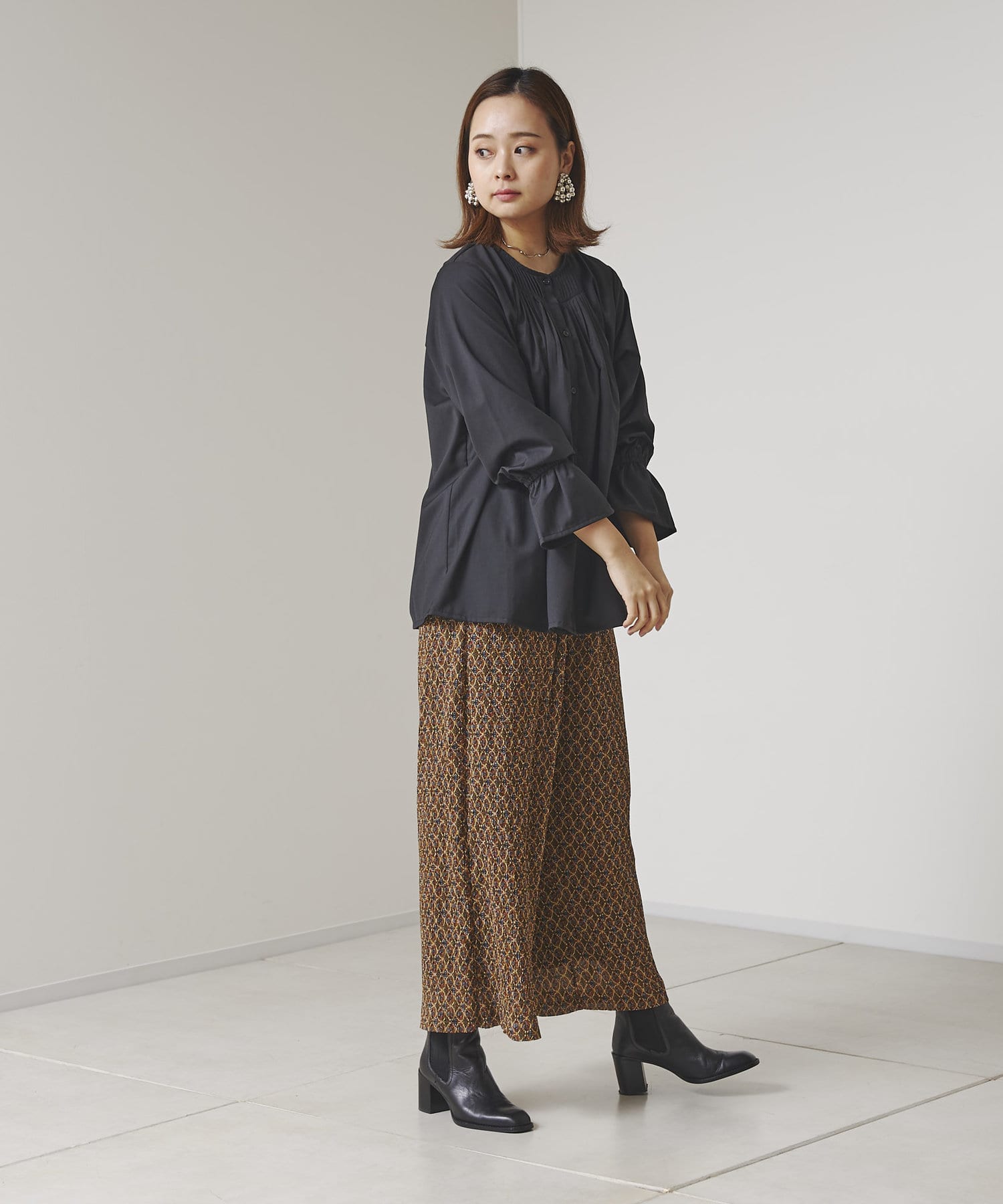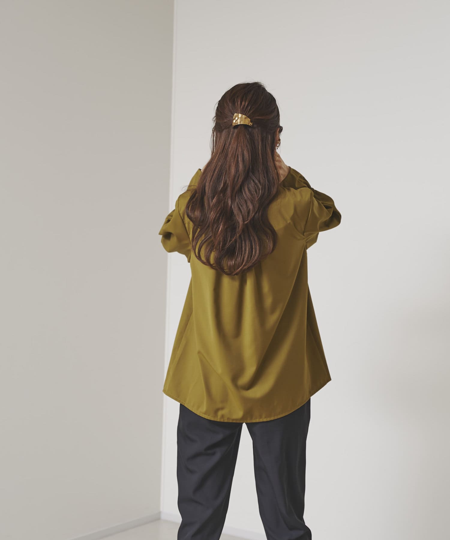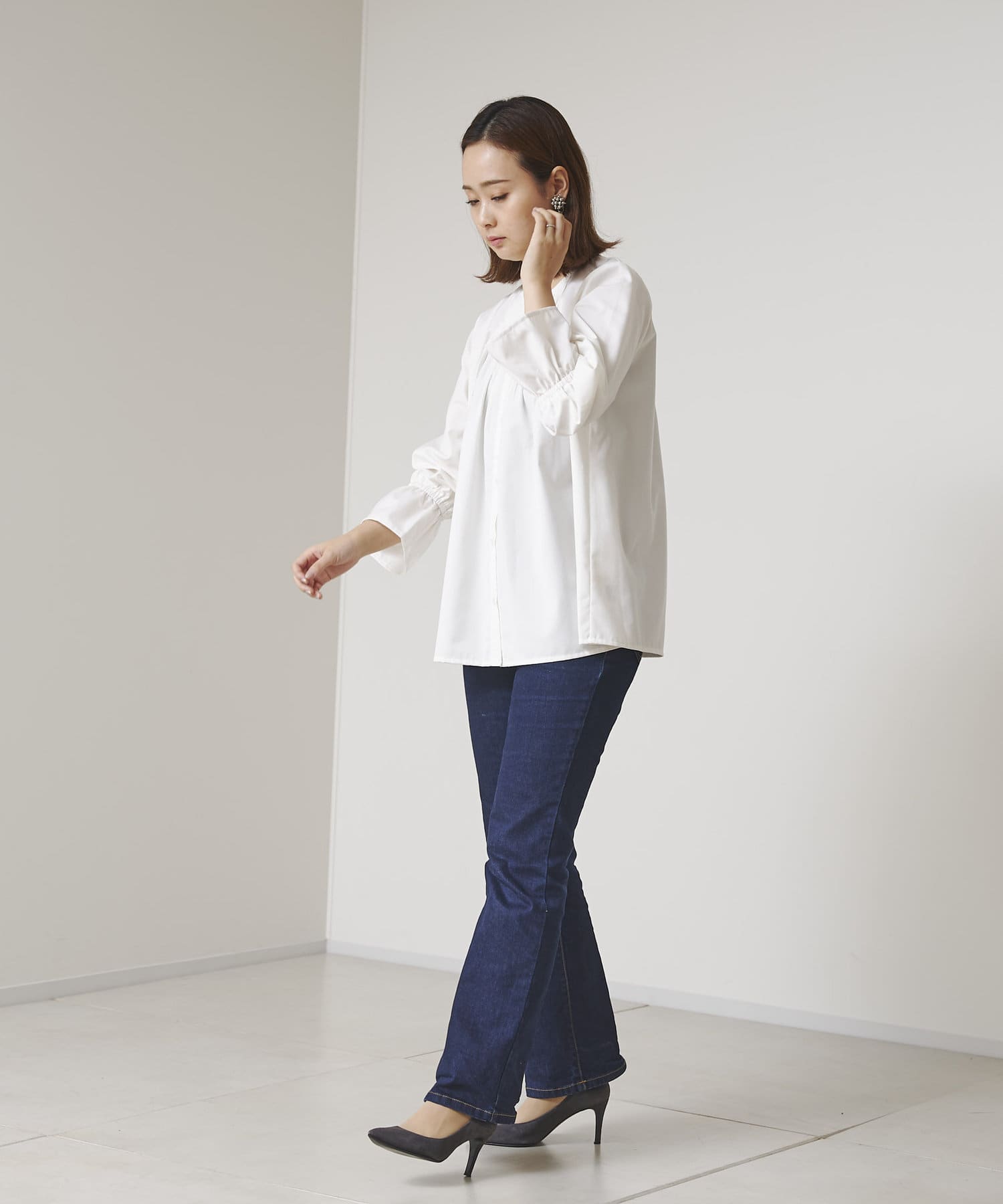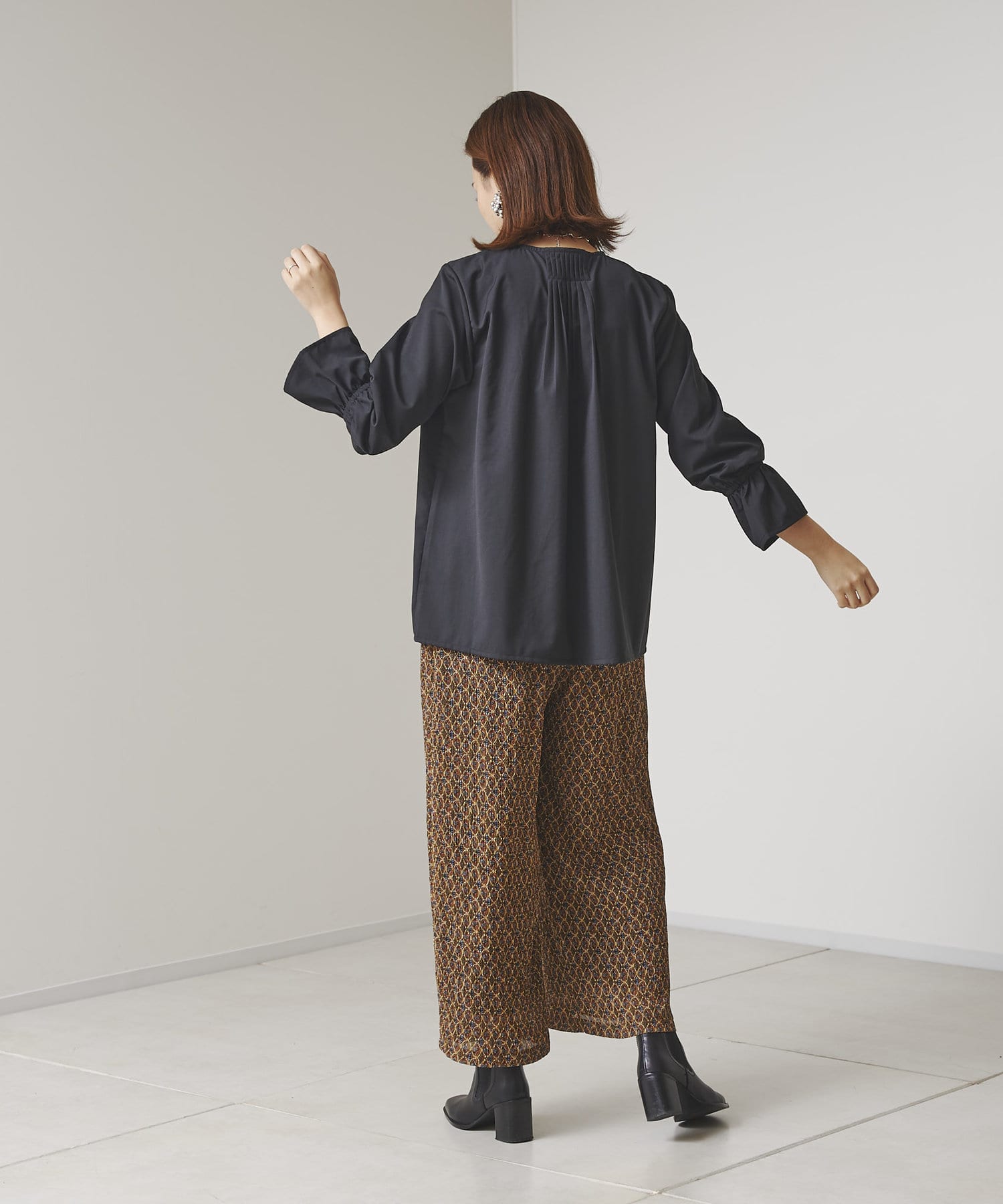 ・フロントのピンタックがネックレスなどなくても華やかな印象に。