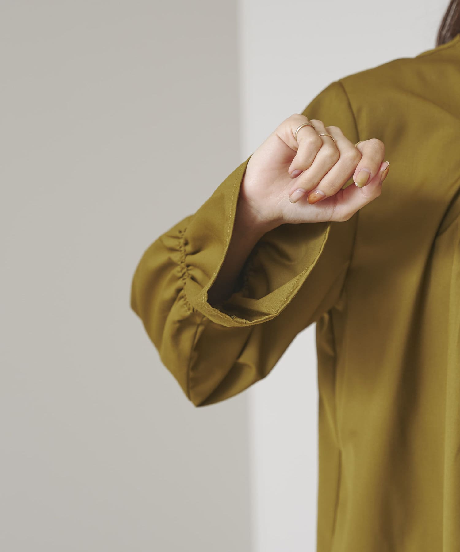 ・ギャザーをたっぷり入れたキャンディスリーブが可愛らしさを演出。