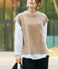 【時短で今年らしく決まる】ケーブルニットベスト×シャツ SET
