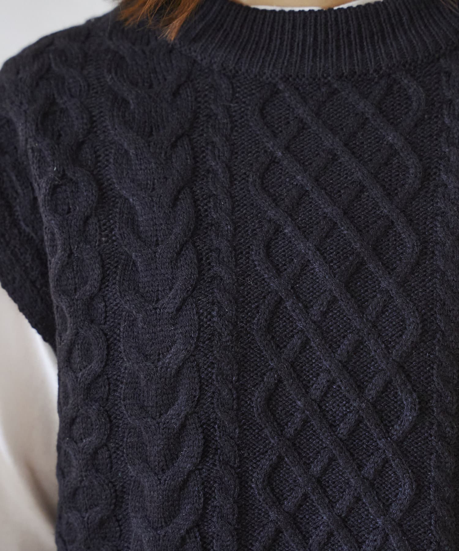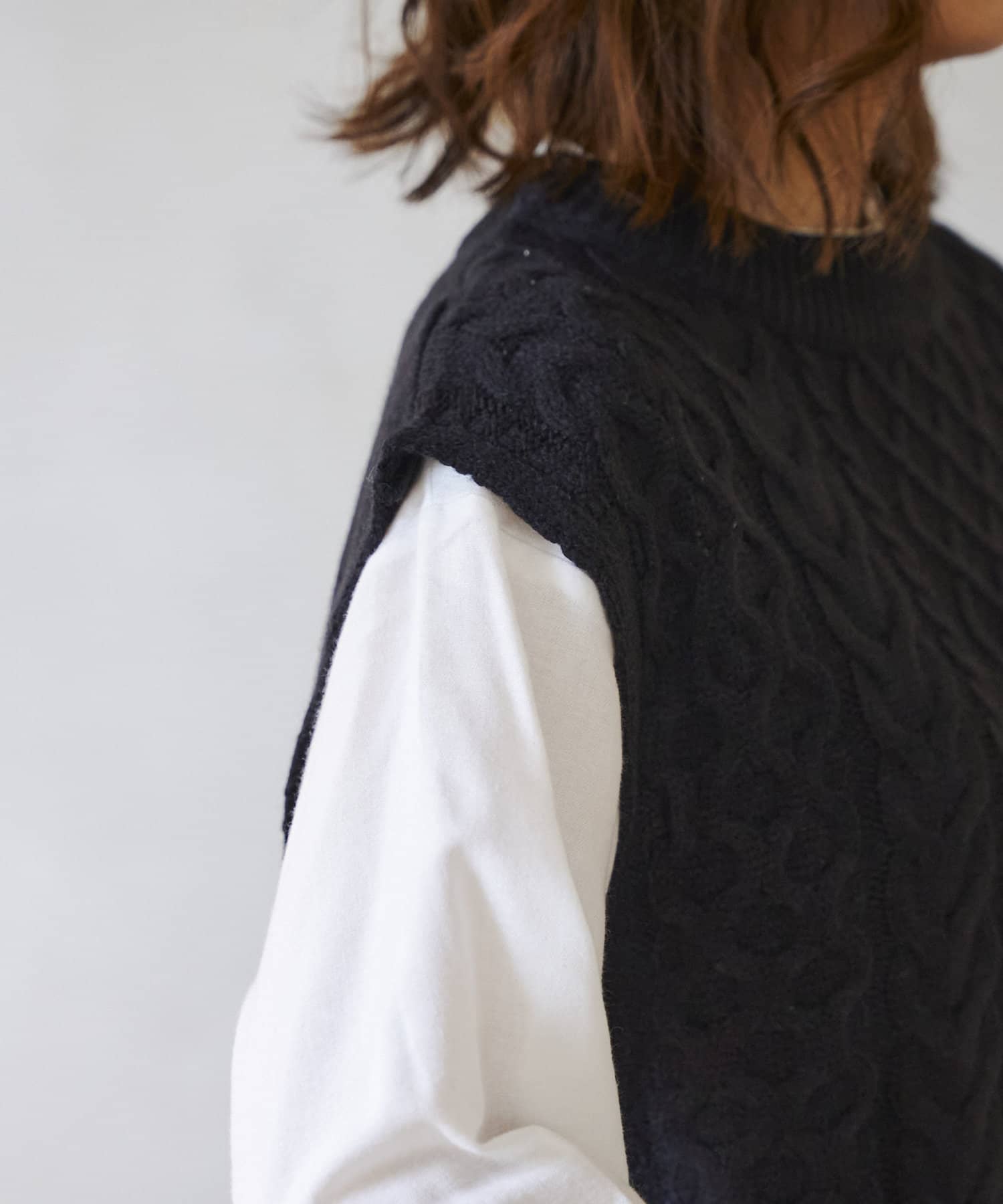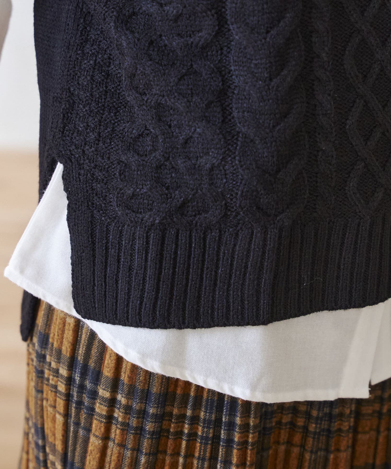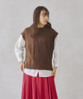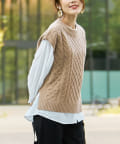 ・厚手ではないので着膨れしないケーブルニットベスト