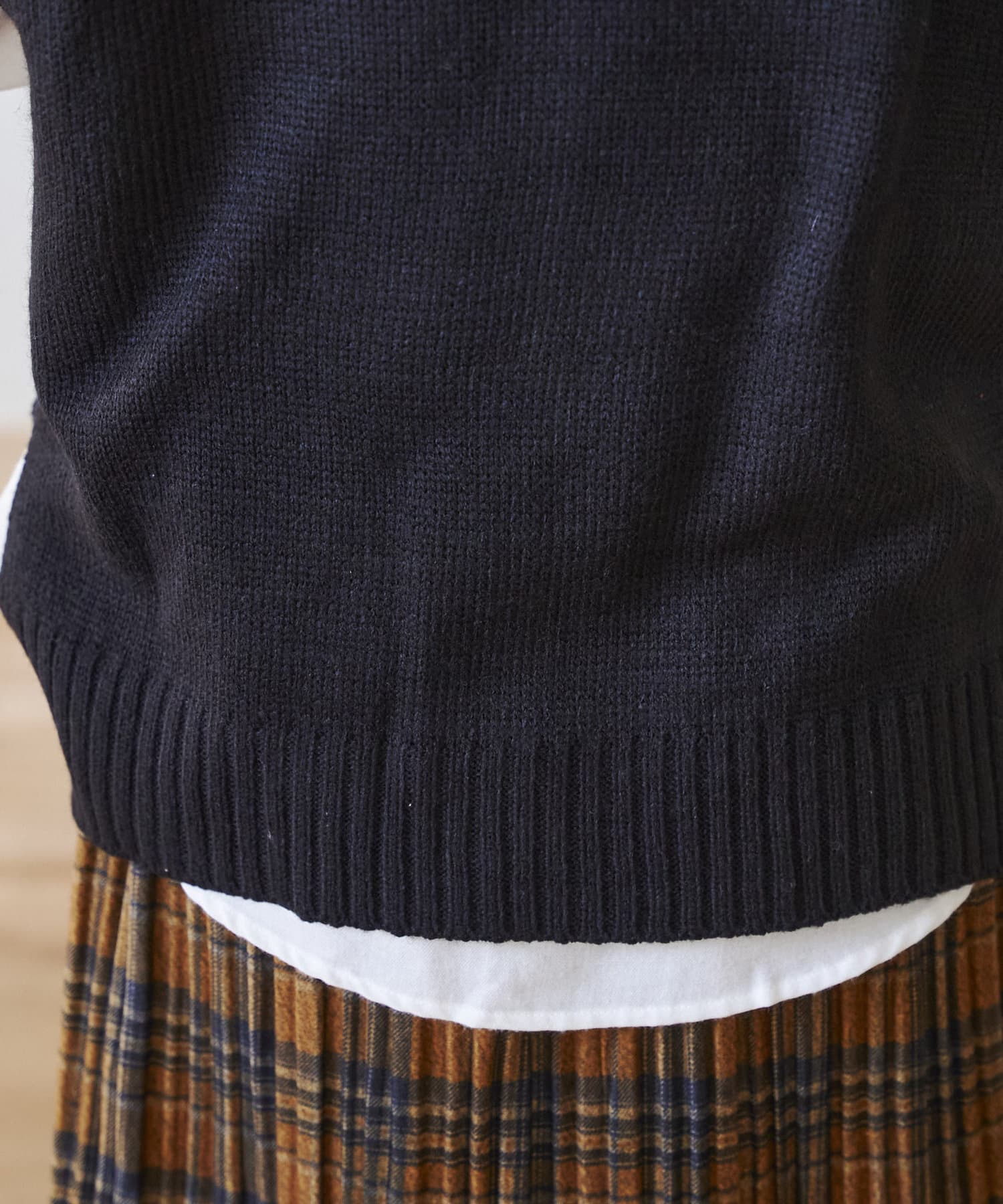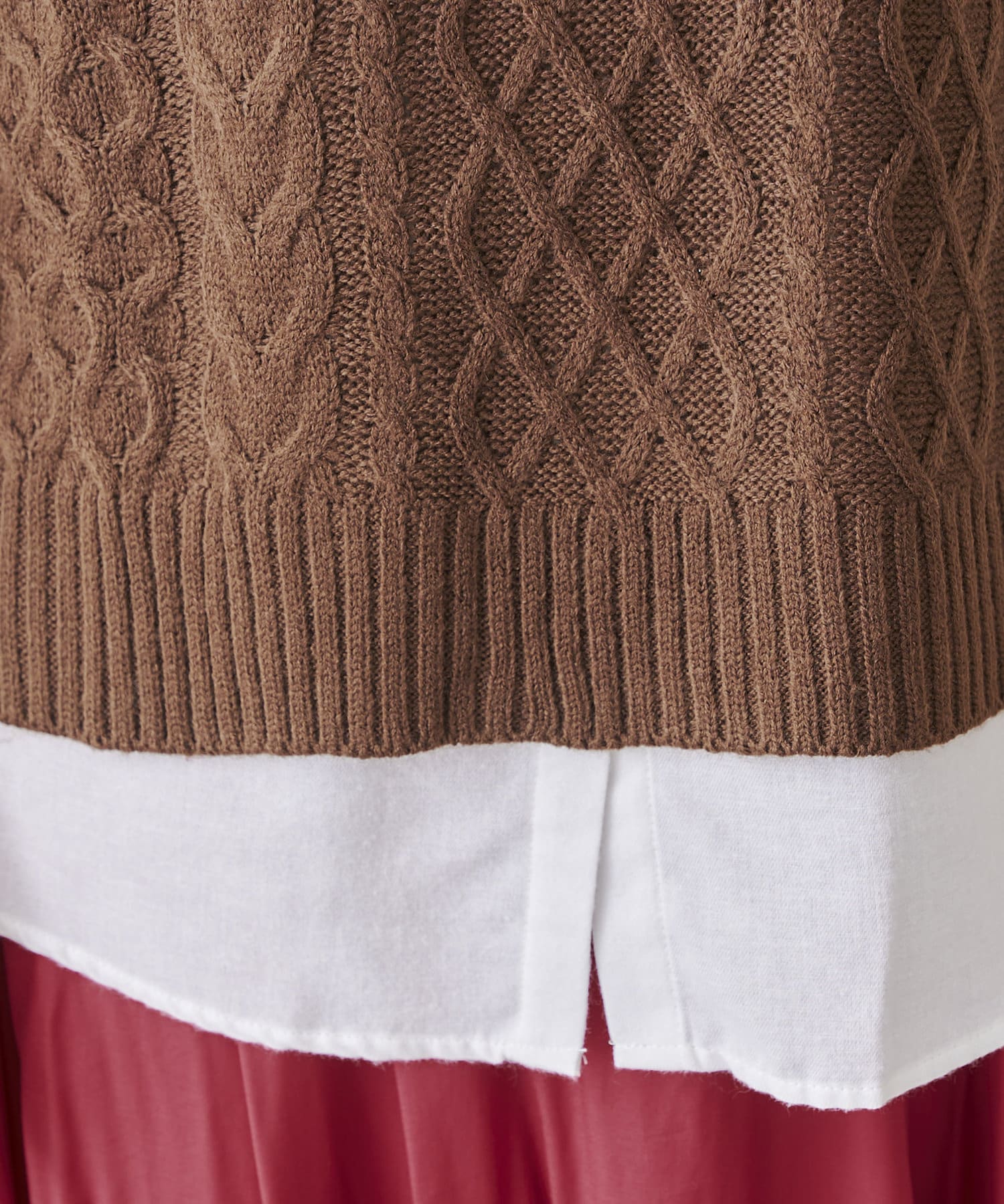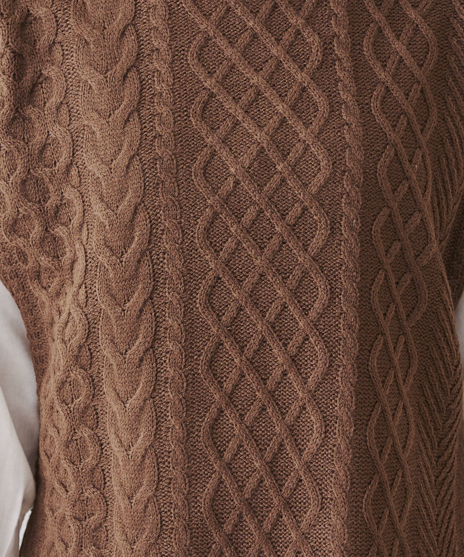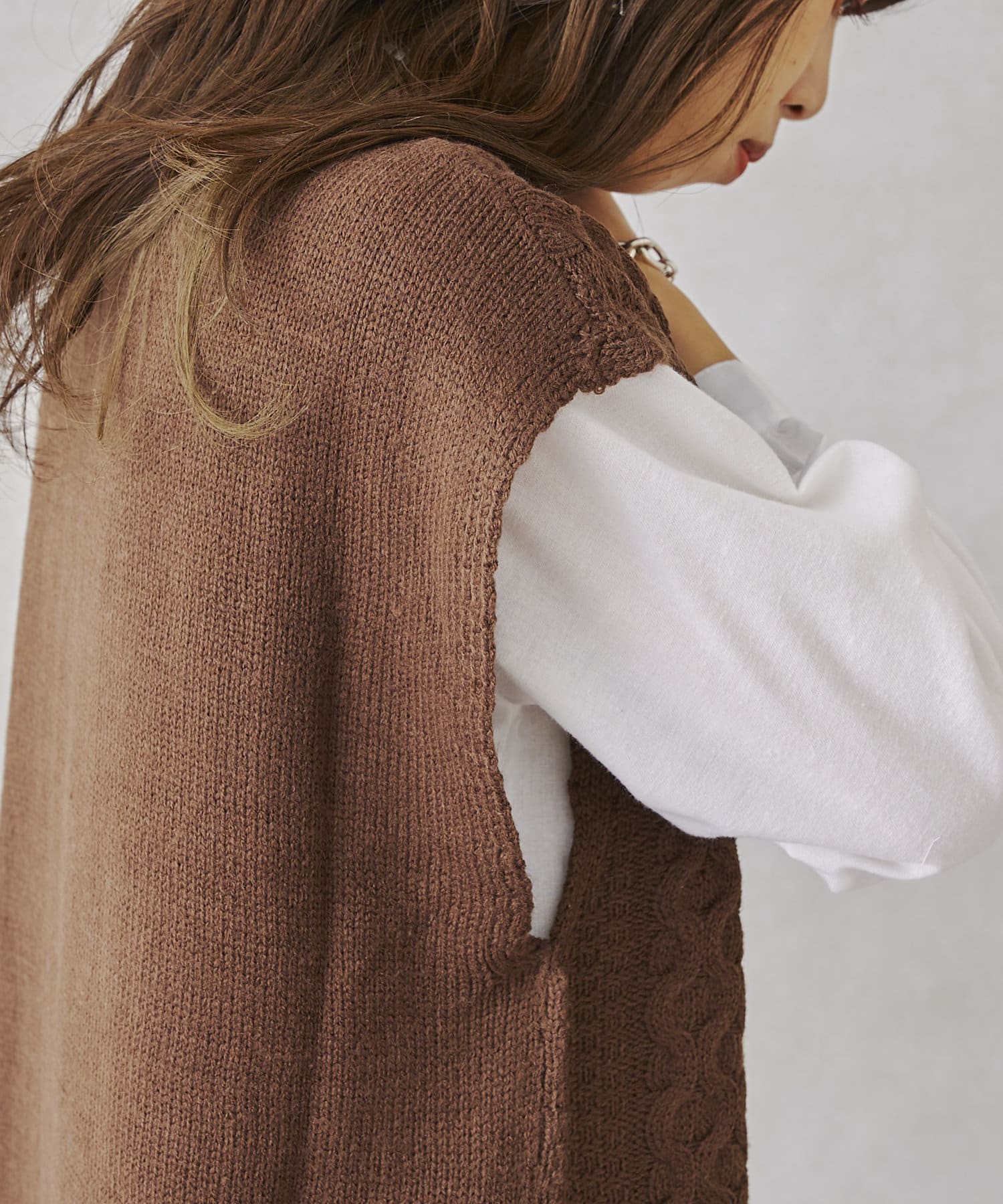 ・厚手ではないので着膨れしないケーブルニットベスト