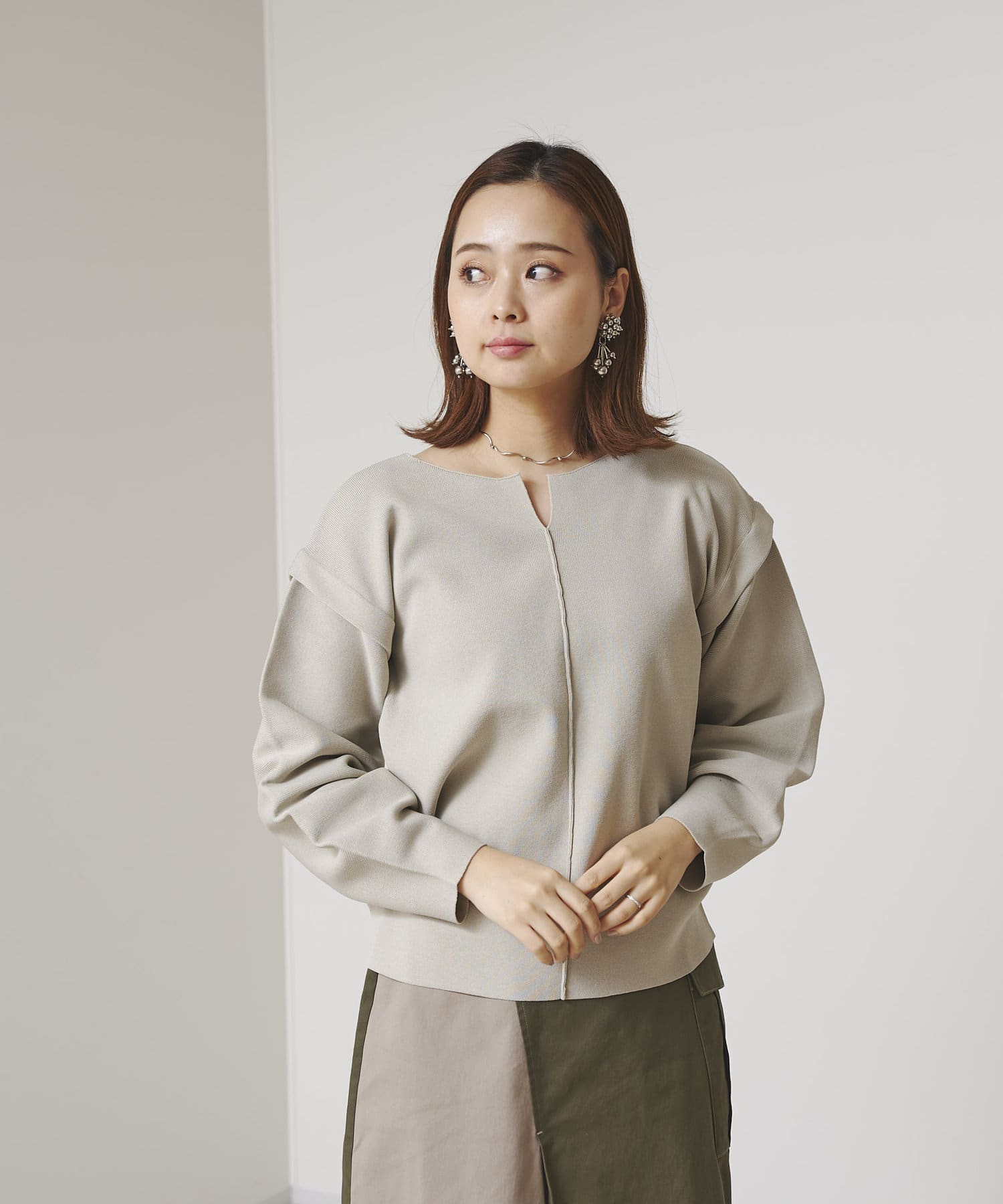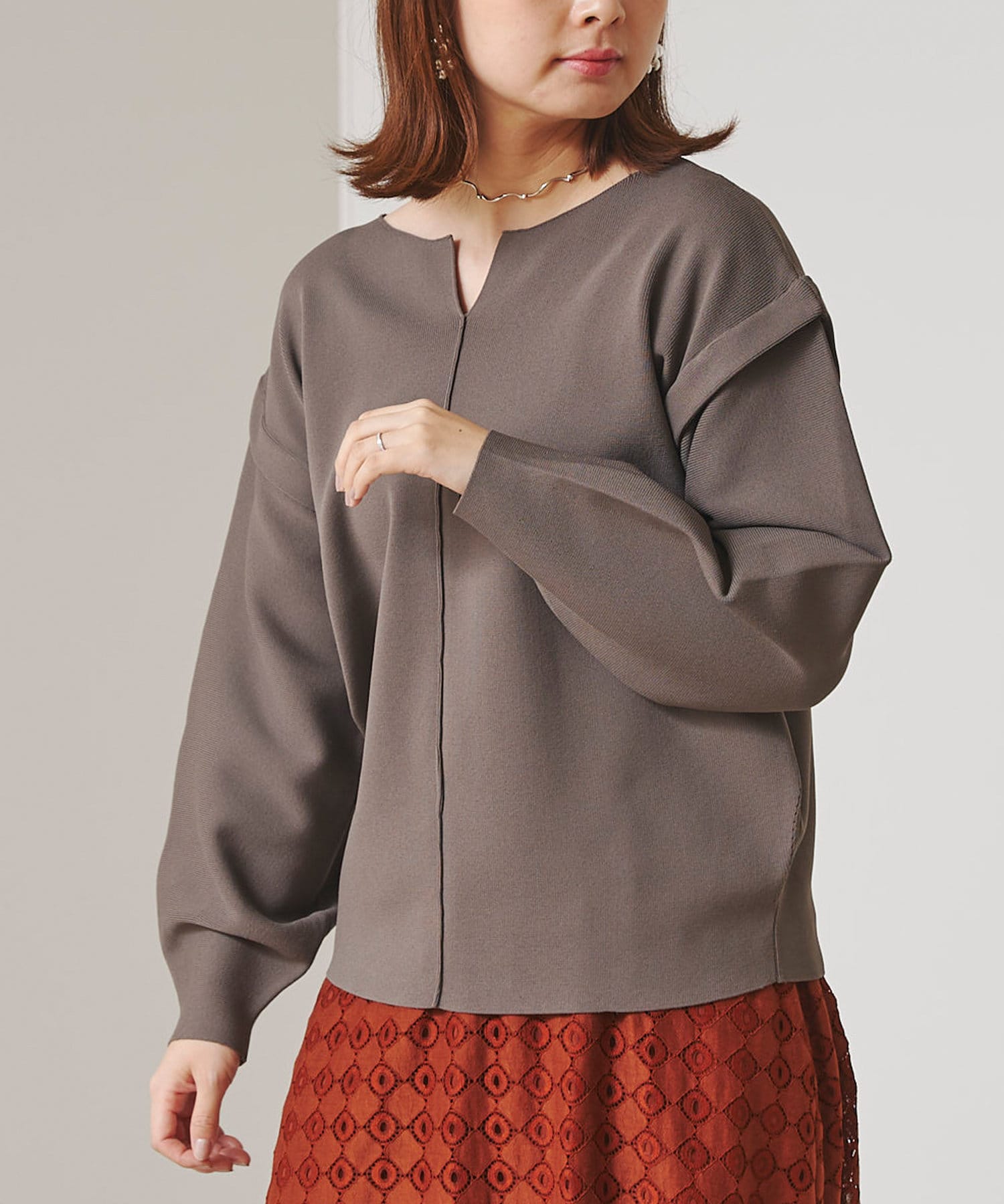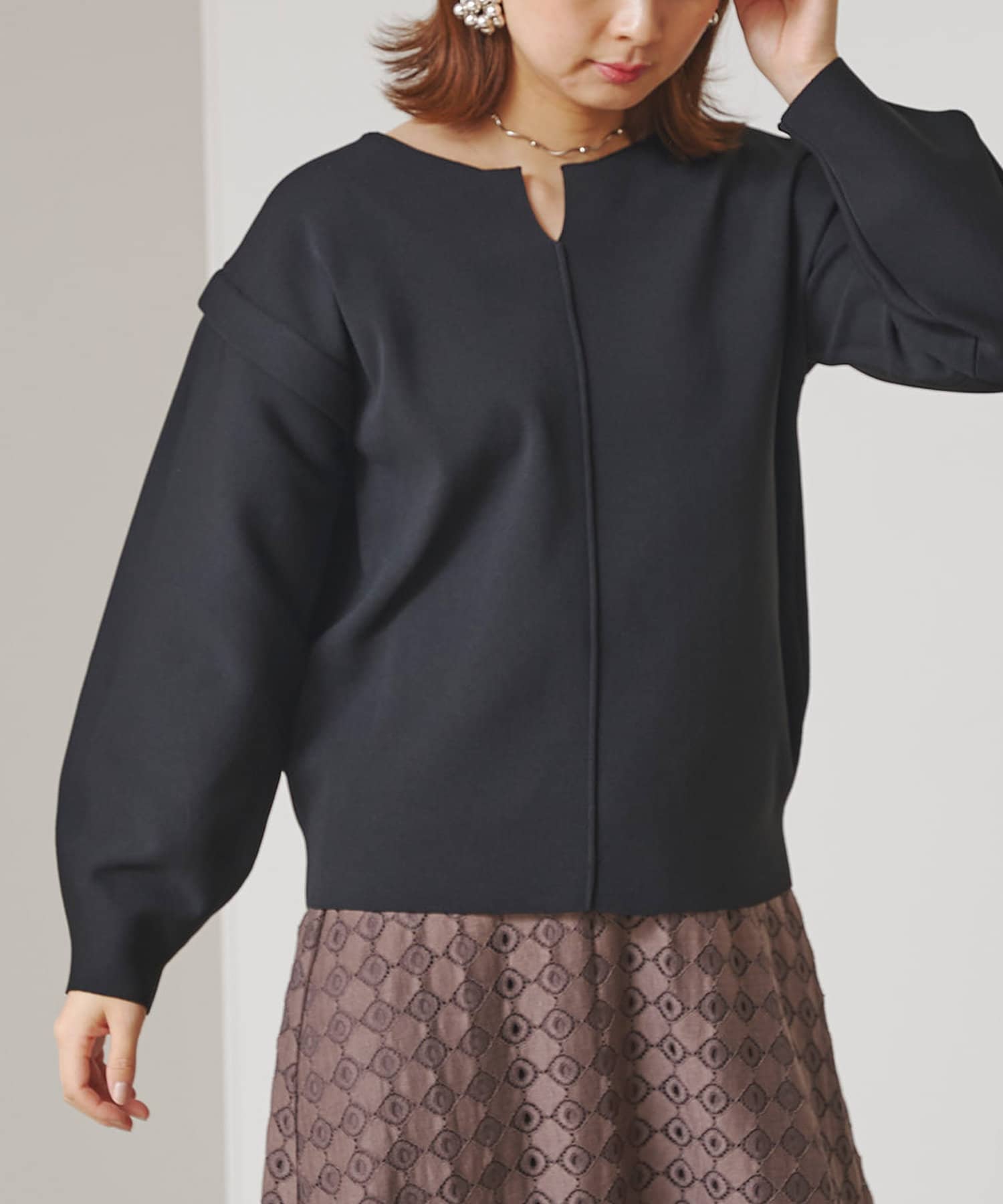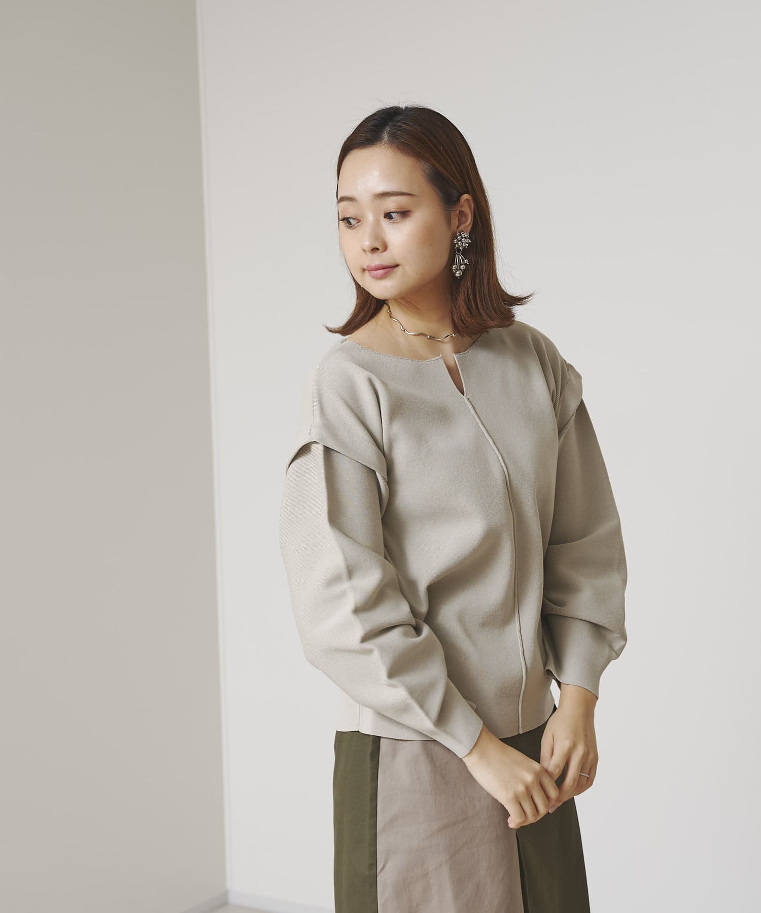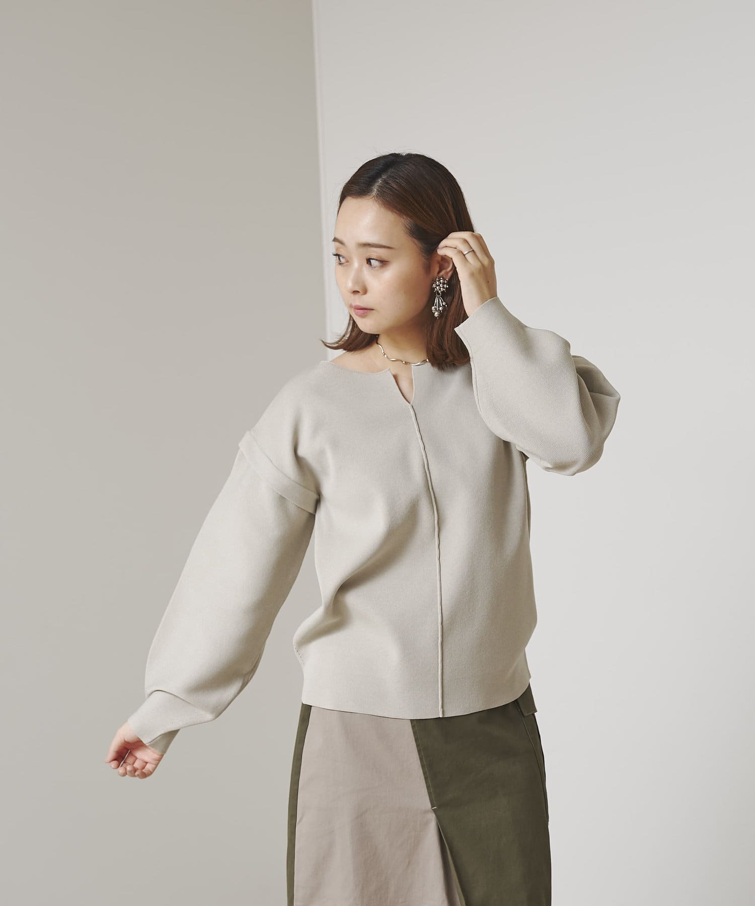 ・張り感のあるニット素材で、袖部分に程よくボリュームが出ます。