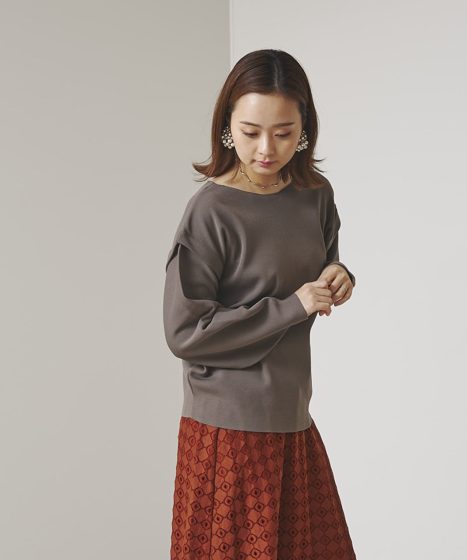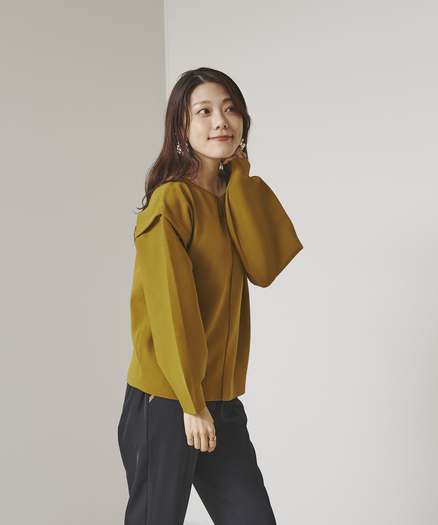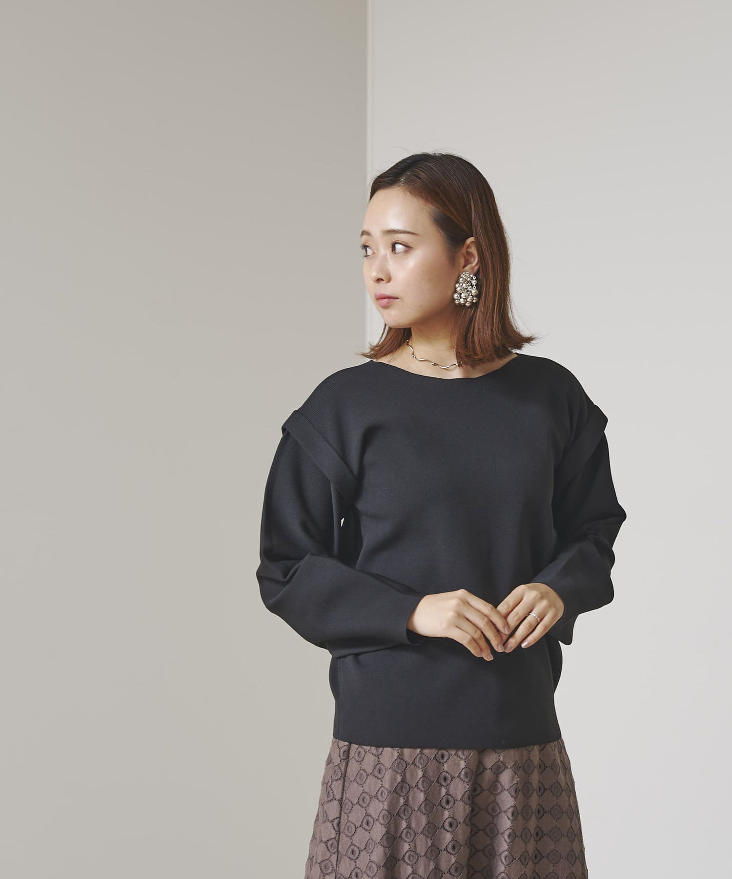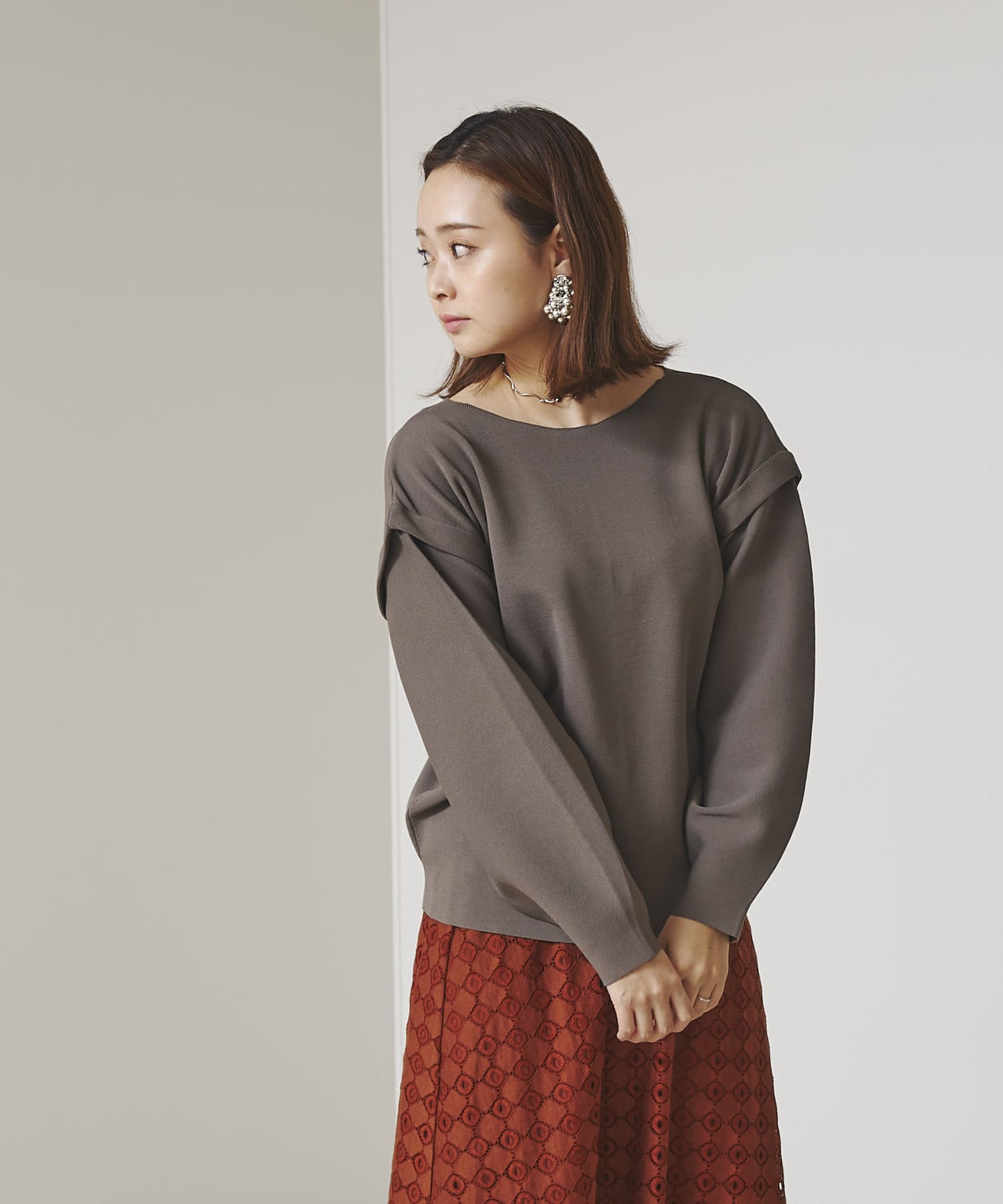 ・張り感のあるニット素材で、袖部分に程よくボリュームが出ます。