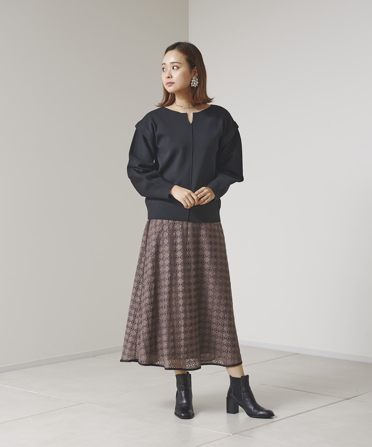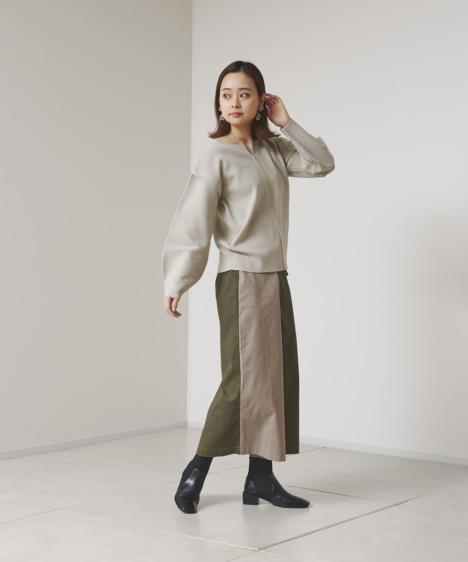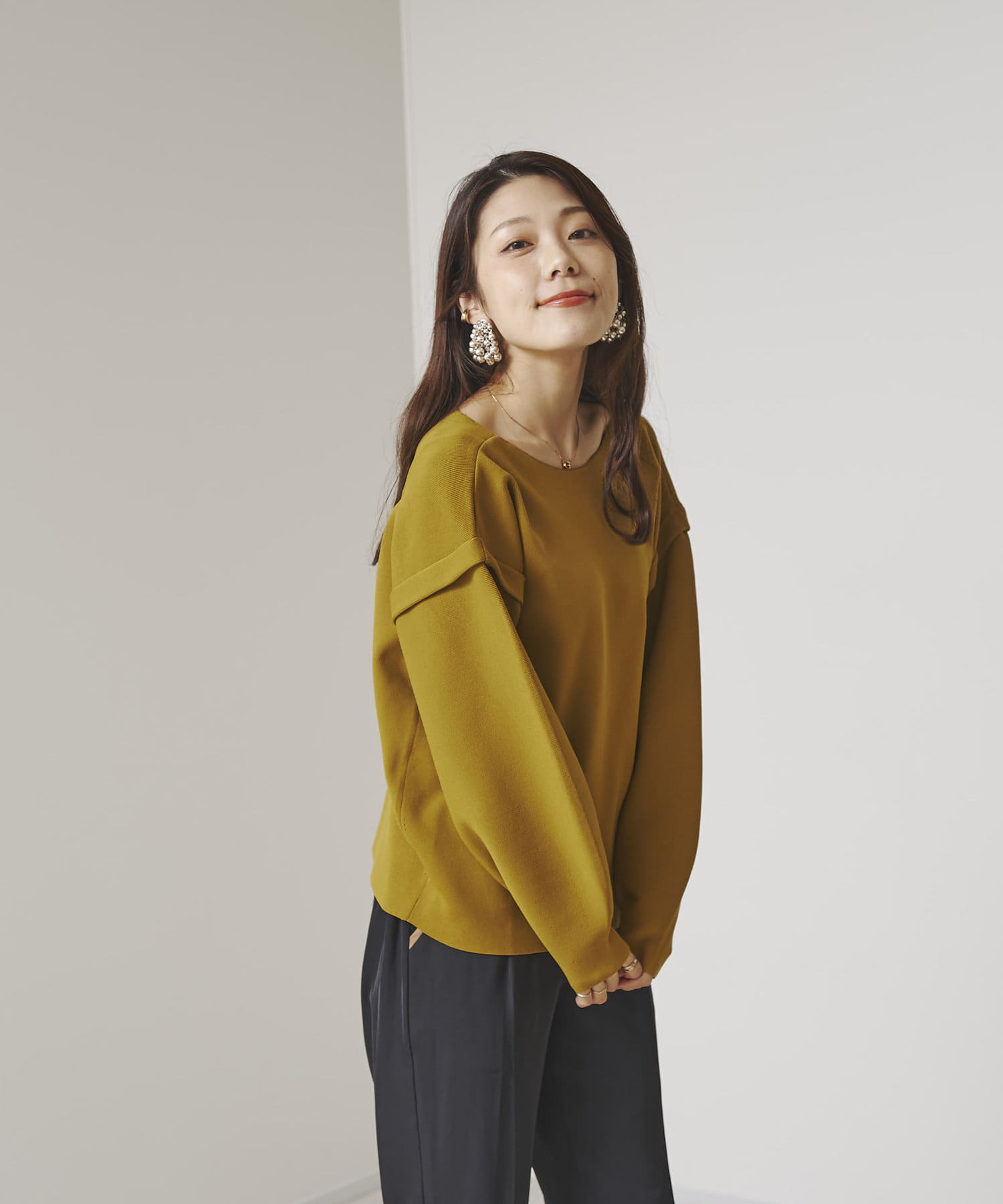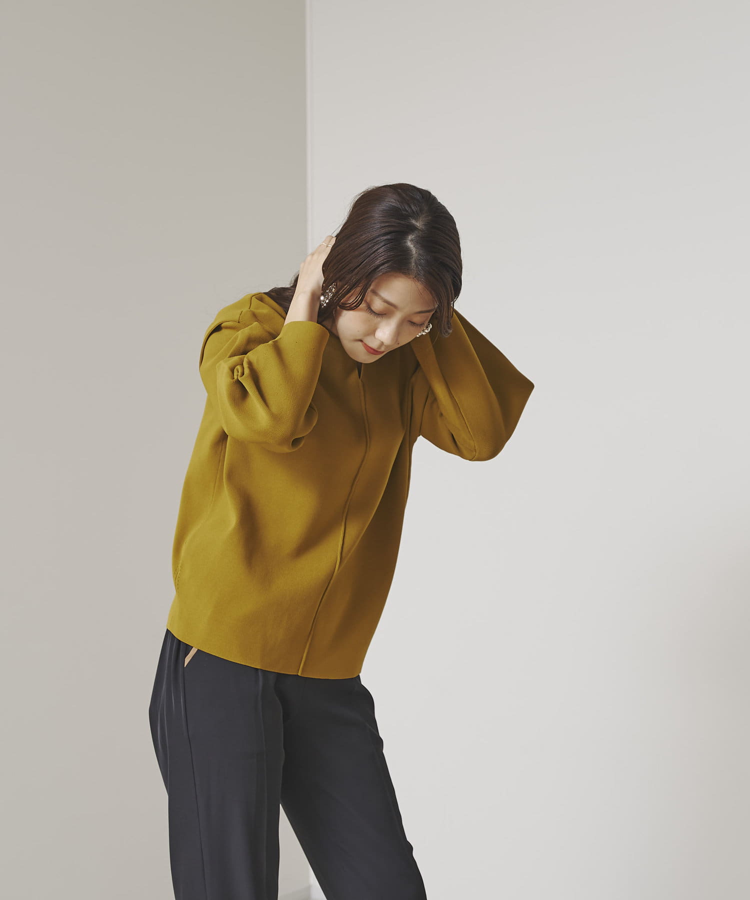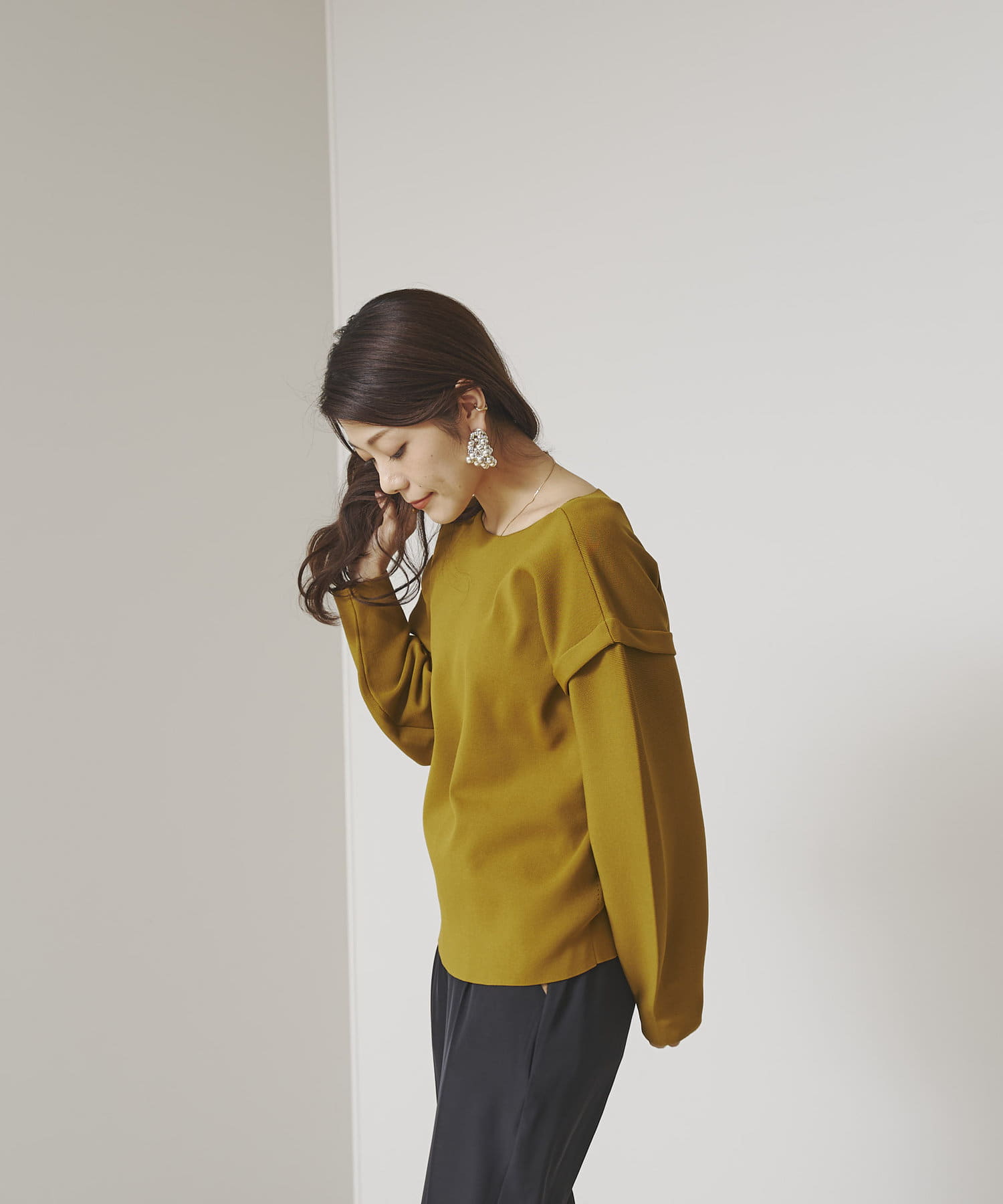 ・張り感のあるニット素材で、袖部分に程よくボリュームが出ます。