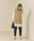 着丈が長めなので、パンツスタイルがおすすめ。テーパードパンツやデニムなどシンプルな