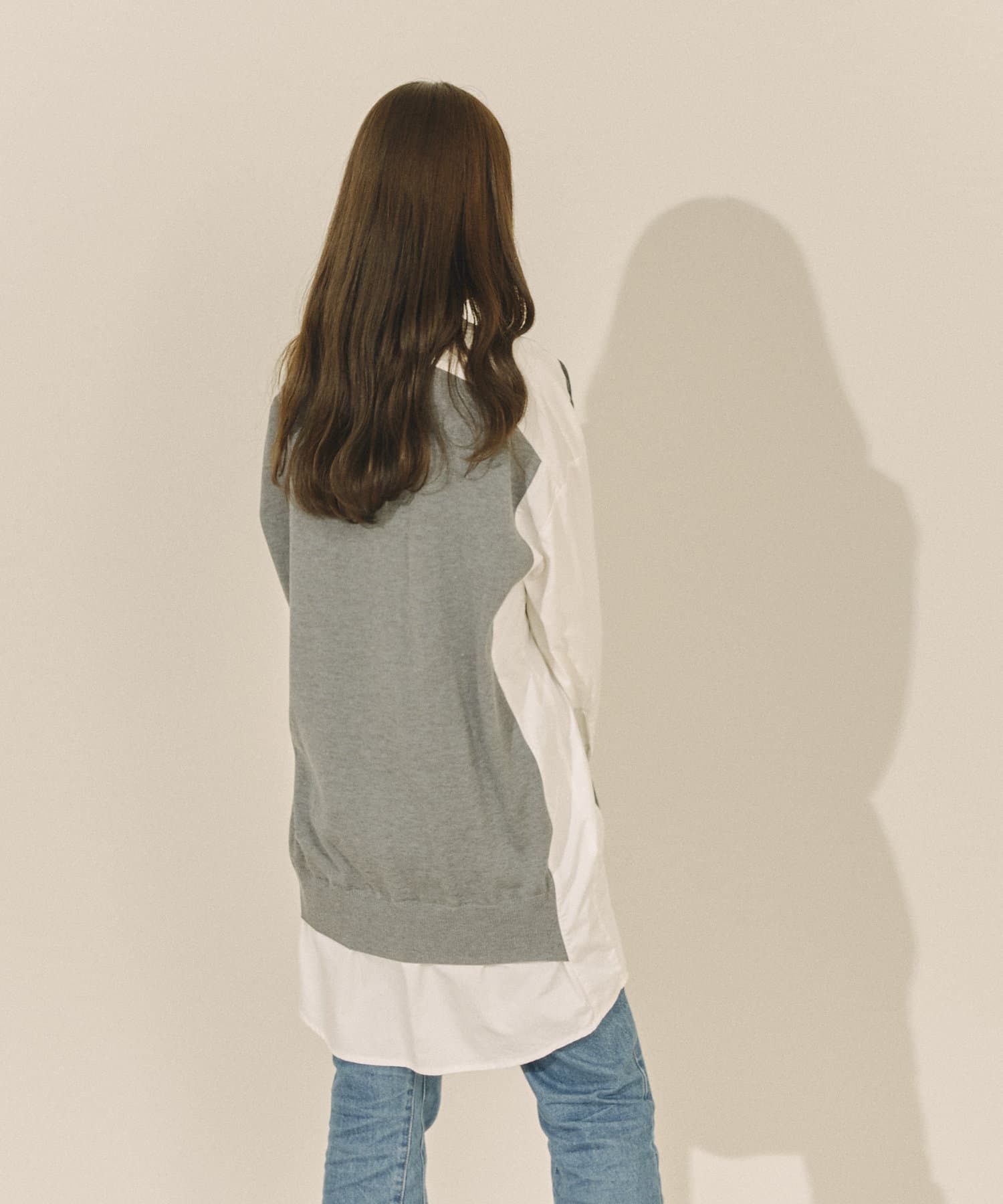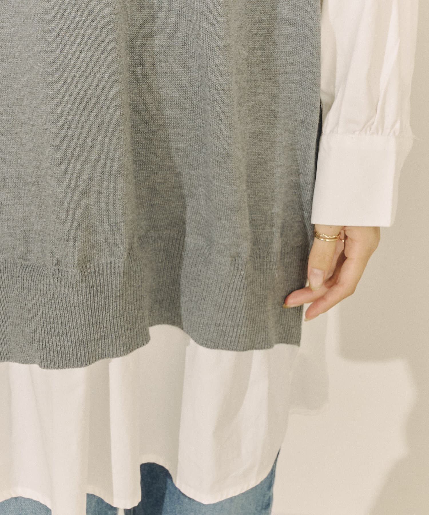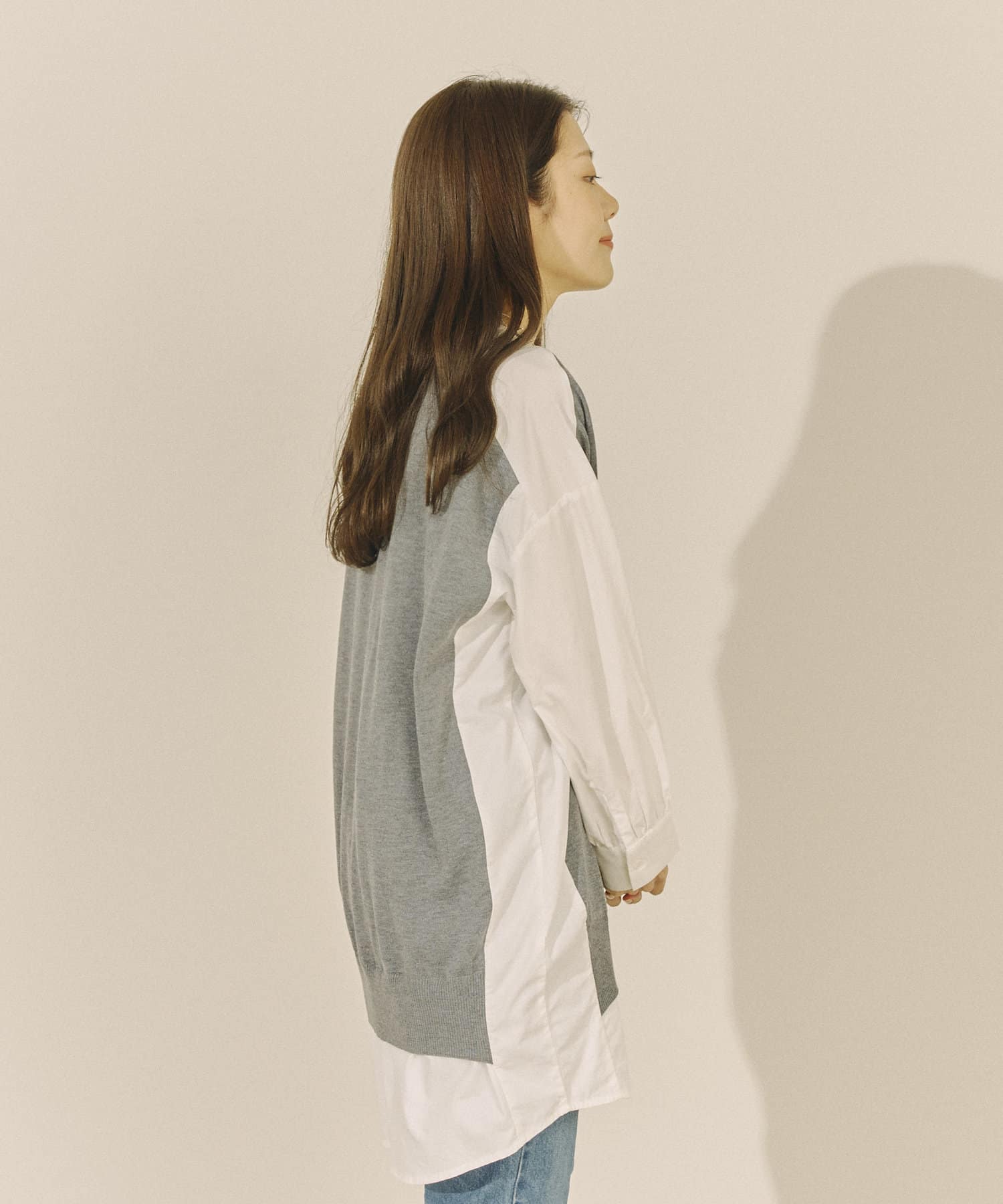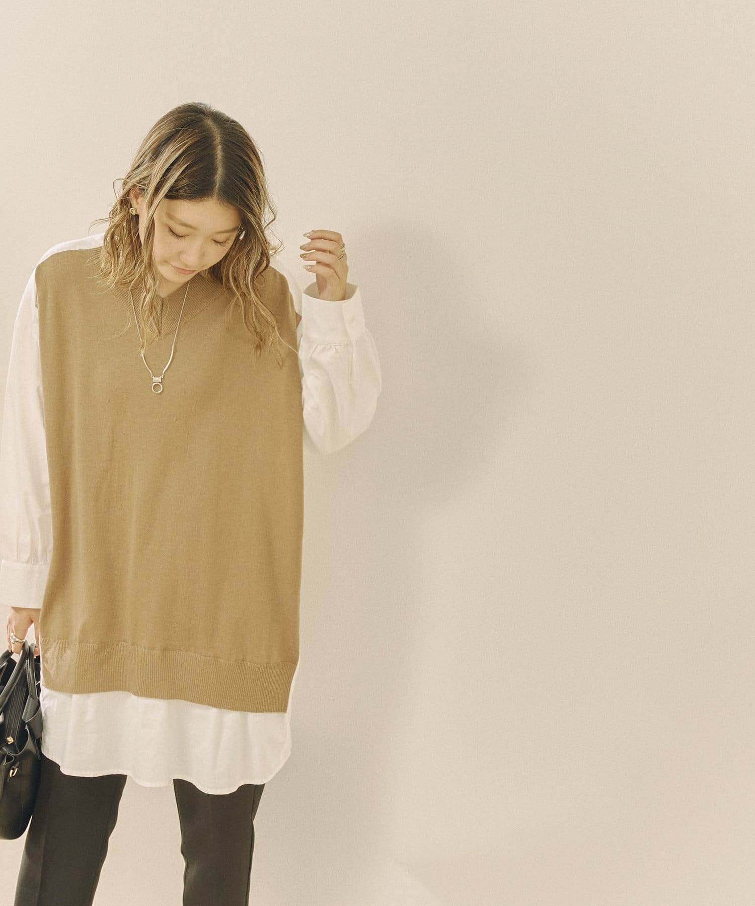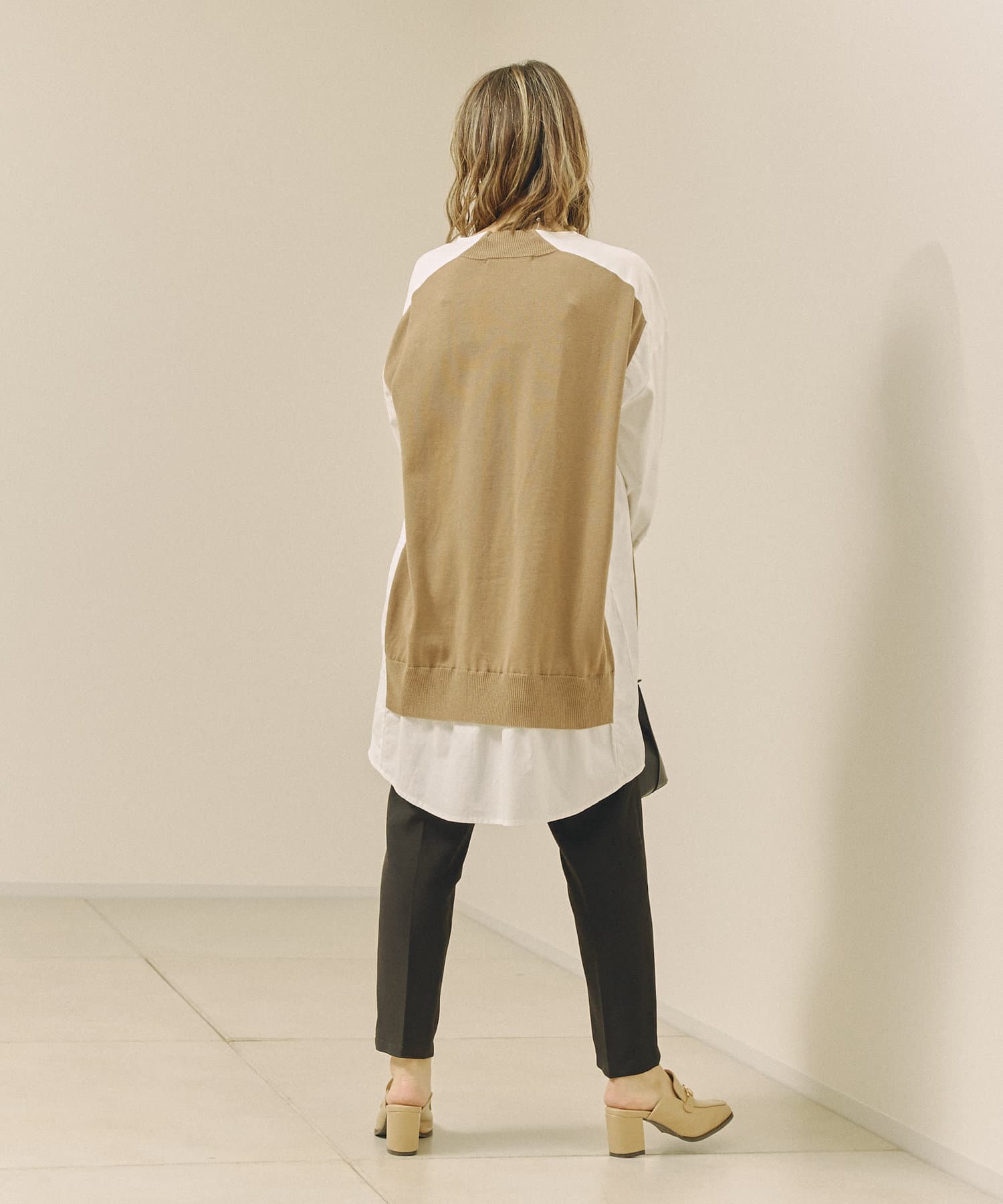 ・ニットとシャツをドッキングさせたデザインで着るだけでこなれた印象に。