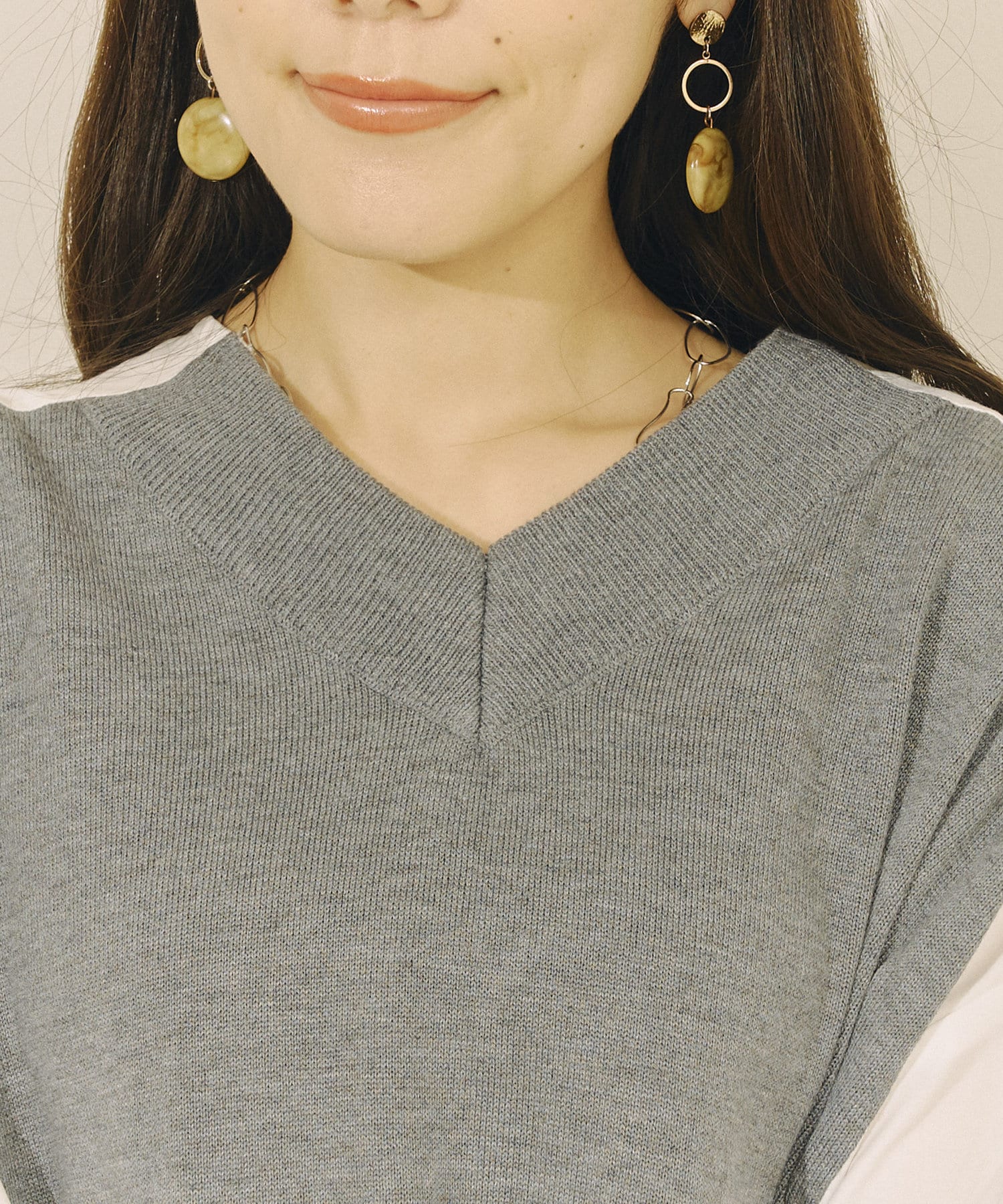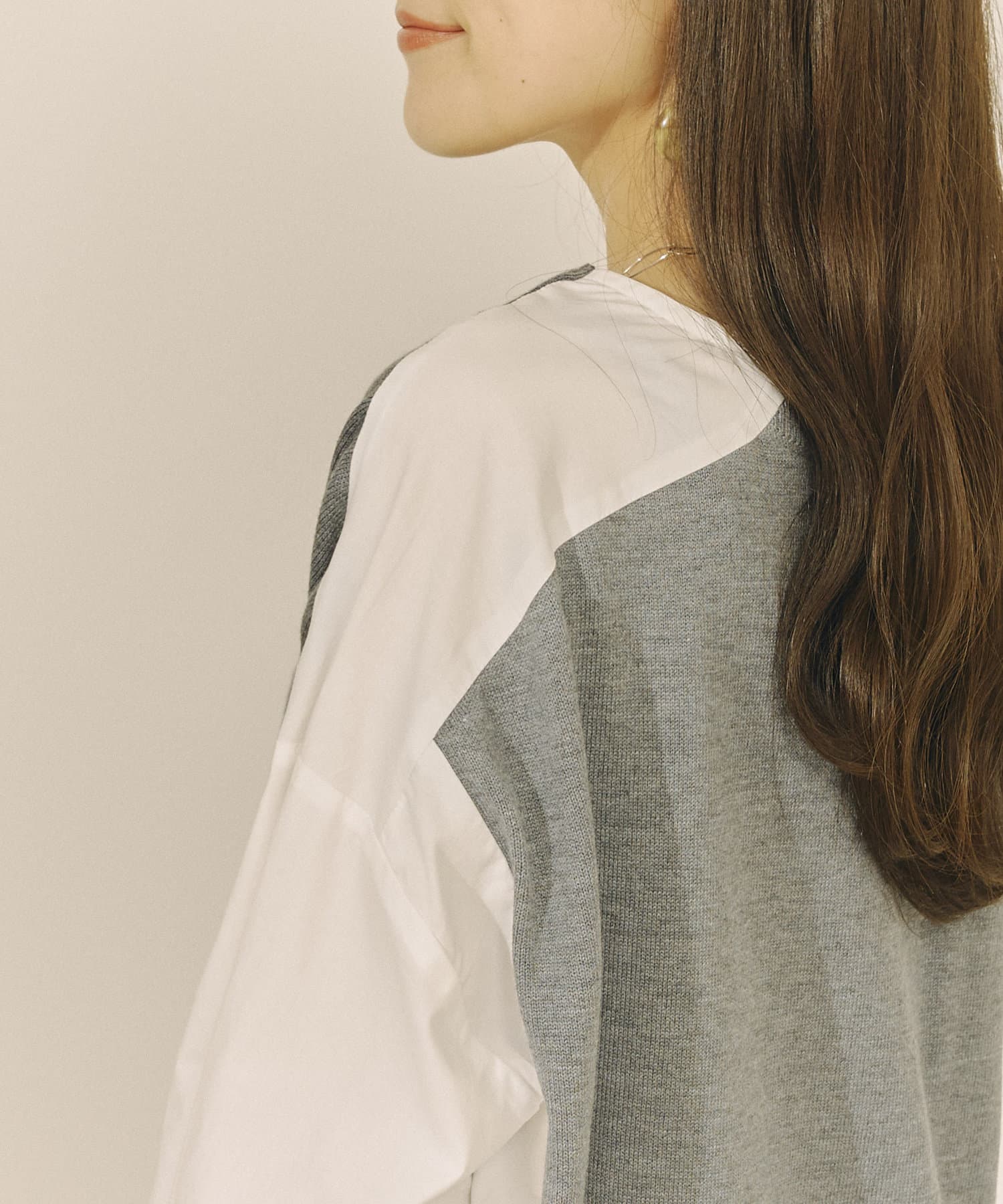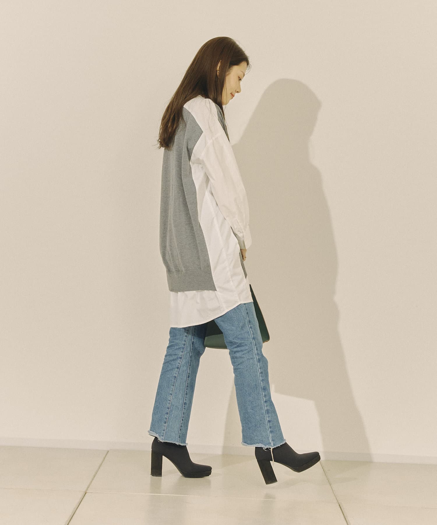 ・ハイゲージニットをシャツ素材と切り替えライトな印象に。