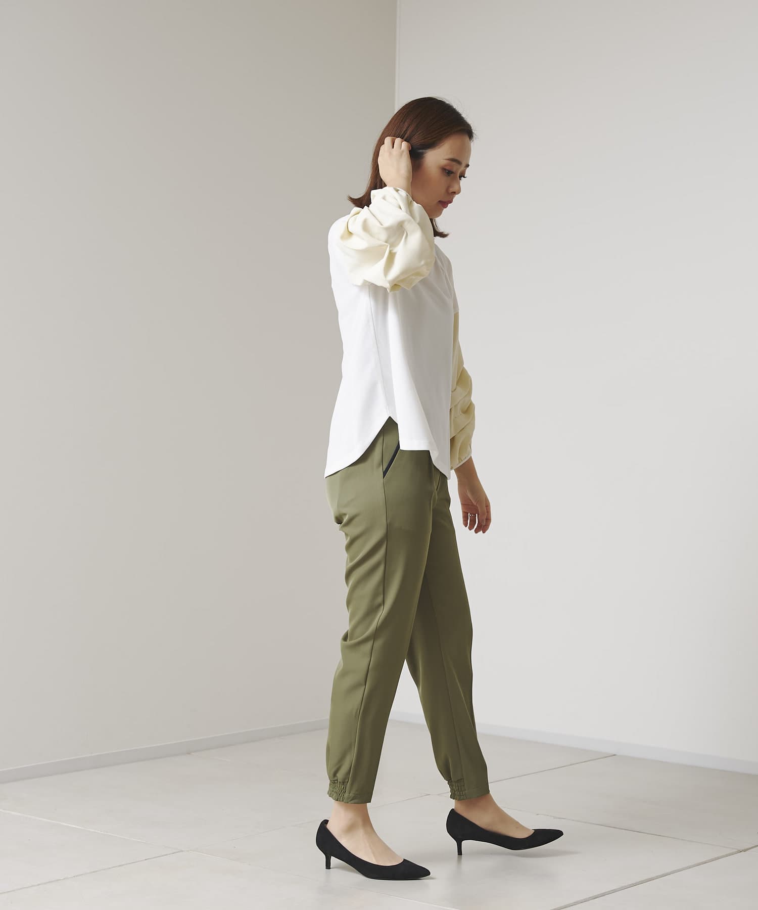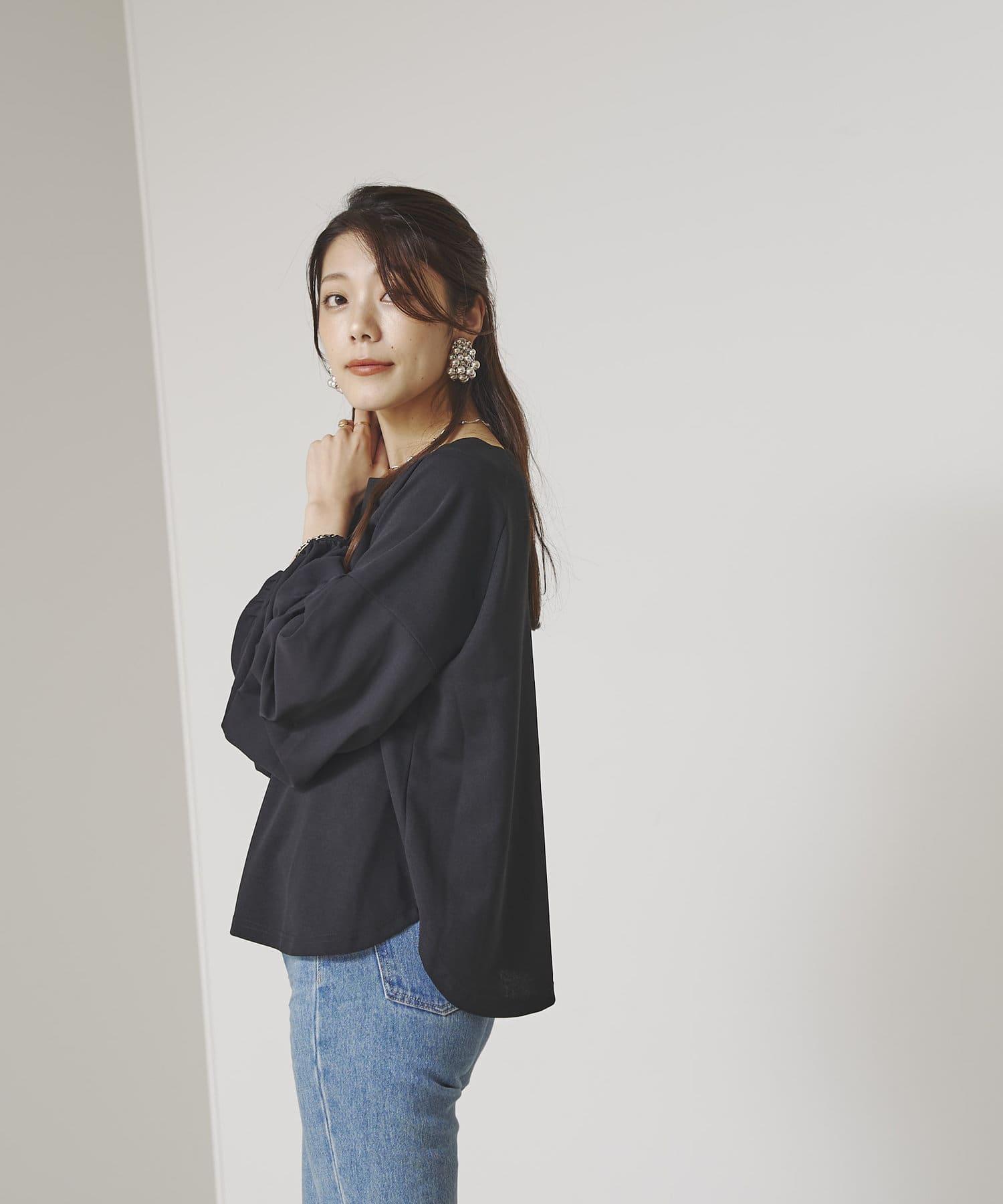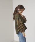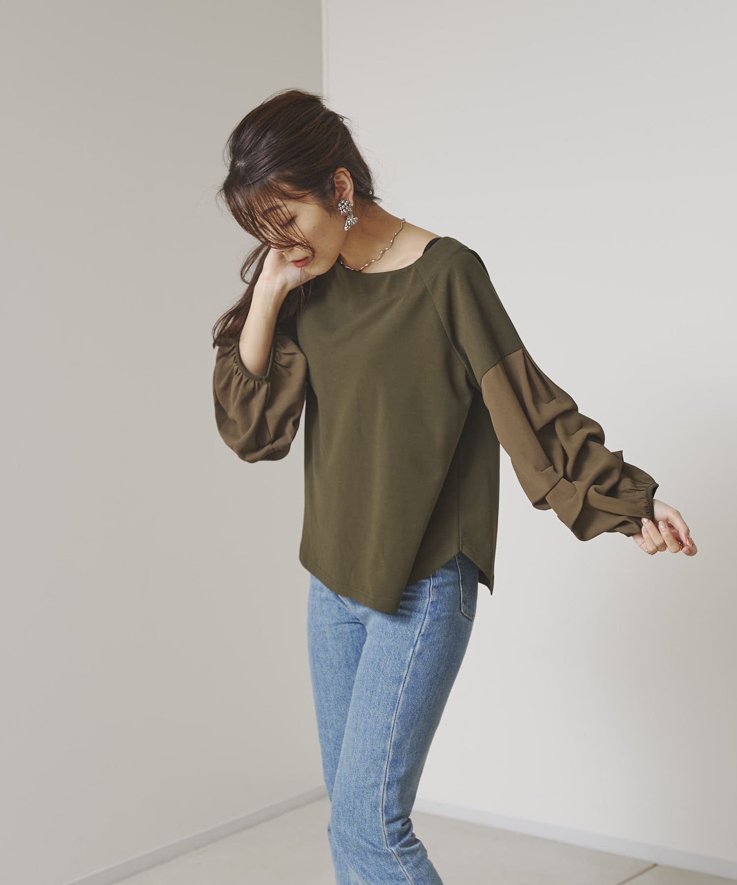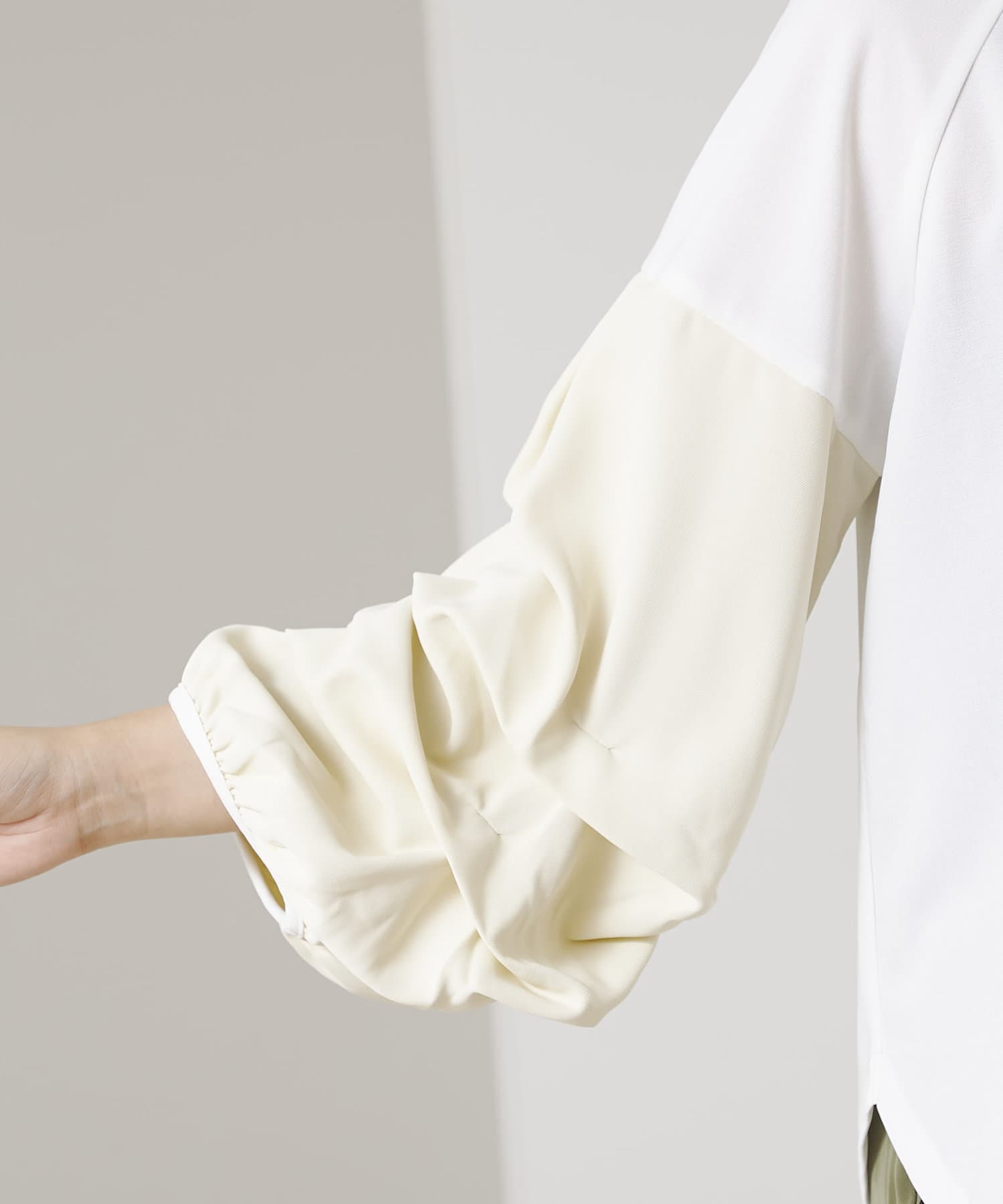 袖部分のホイップスリーブが特徴のブラウス。女性らしいフェミニンな