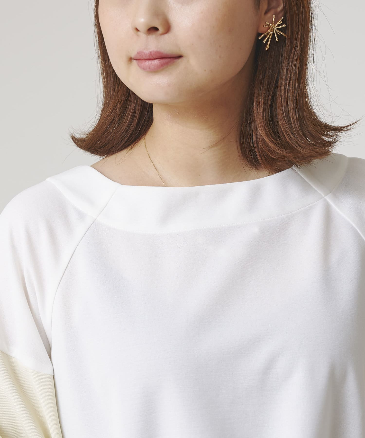 ・ブラウス見えするカット生地なので、きれいめにお使いできます。