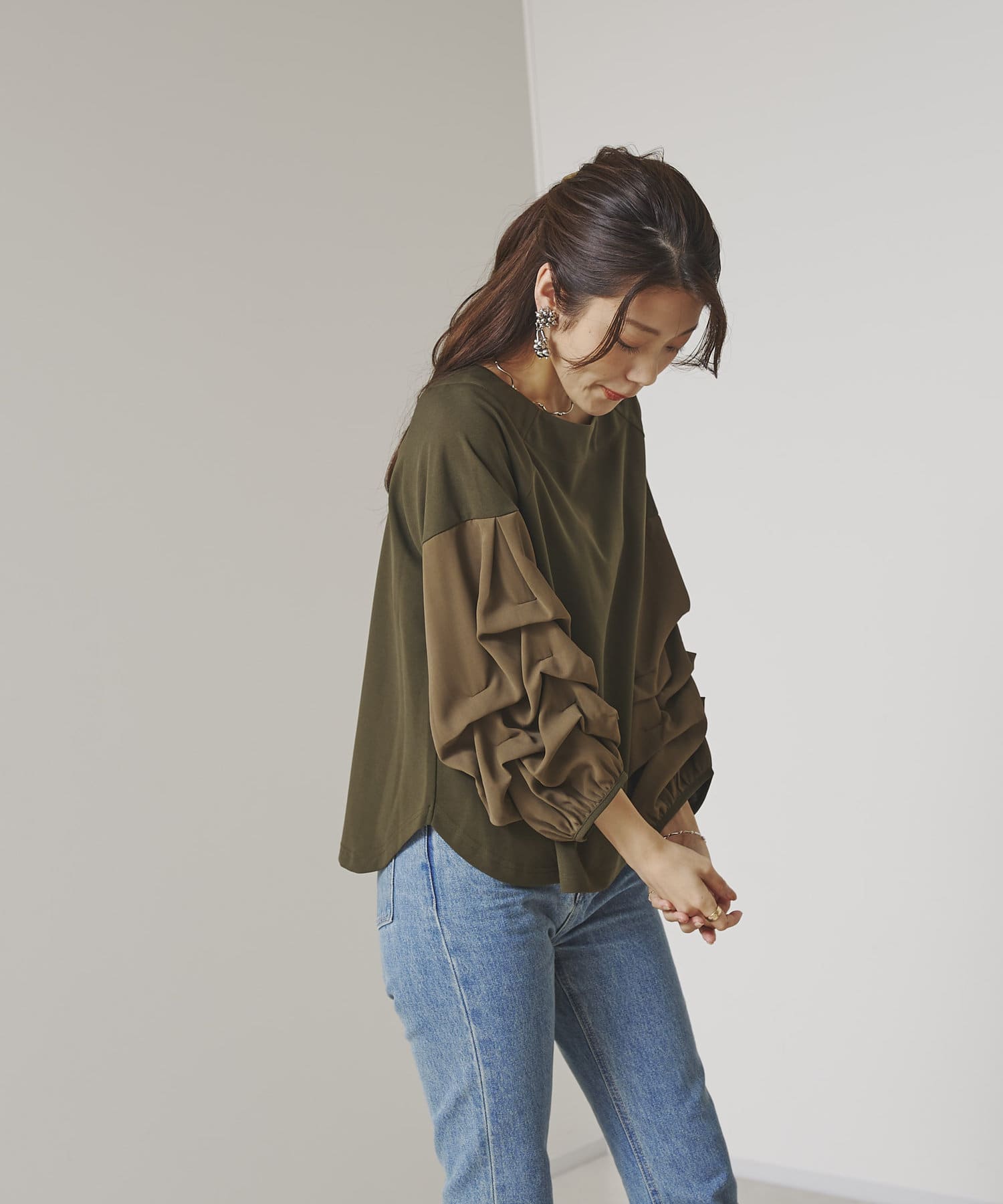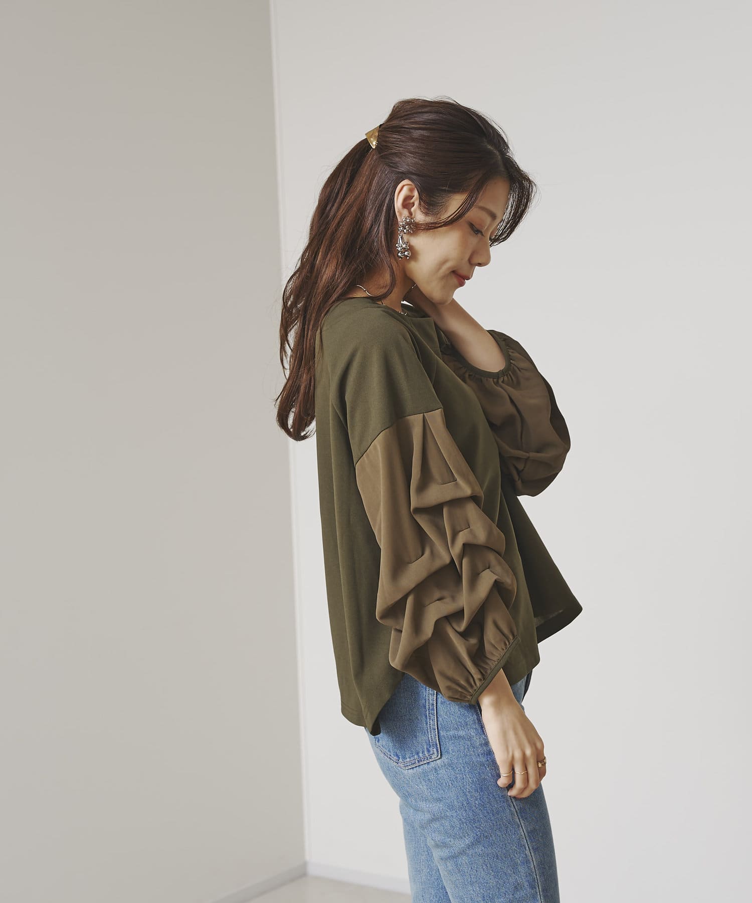 ・タックをたくさん入れた、ボリューム感のある袖が特徴のブラウス。