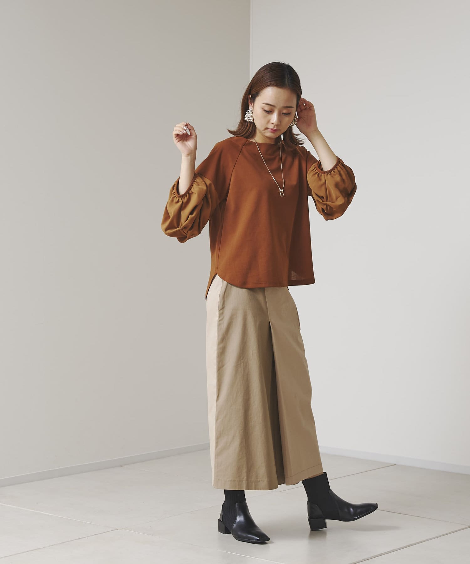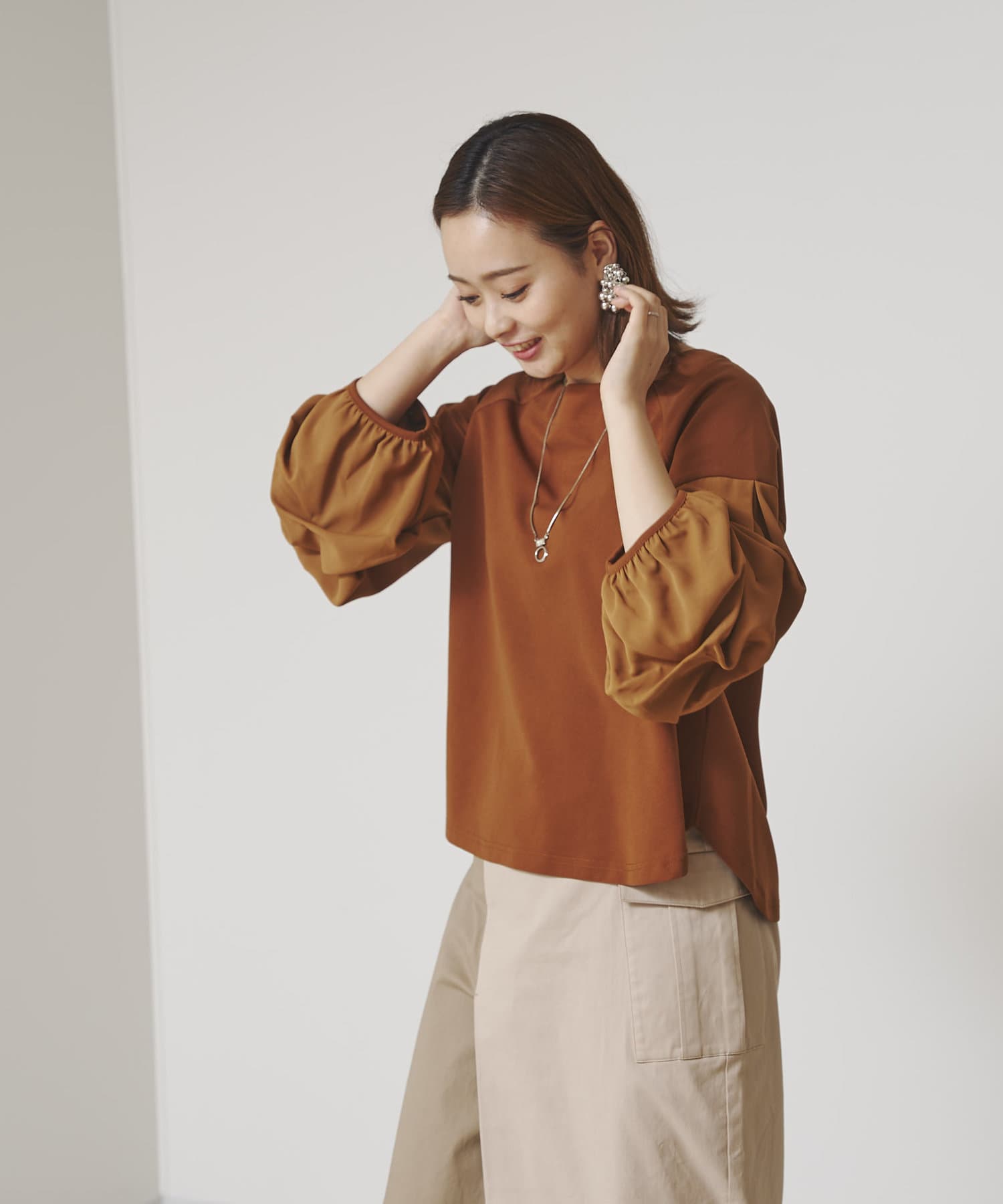 ホイップスリーブが女性らしいフェミニンな印象を与えてくれる1着
