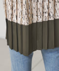 ・後ろに柄のプリーツが入ったデザインでシンプルながらこなれ感のでる1着です。