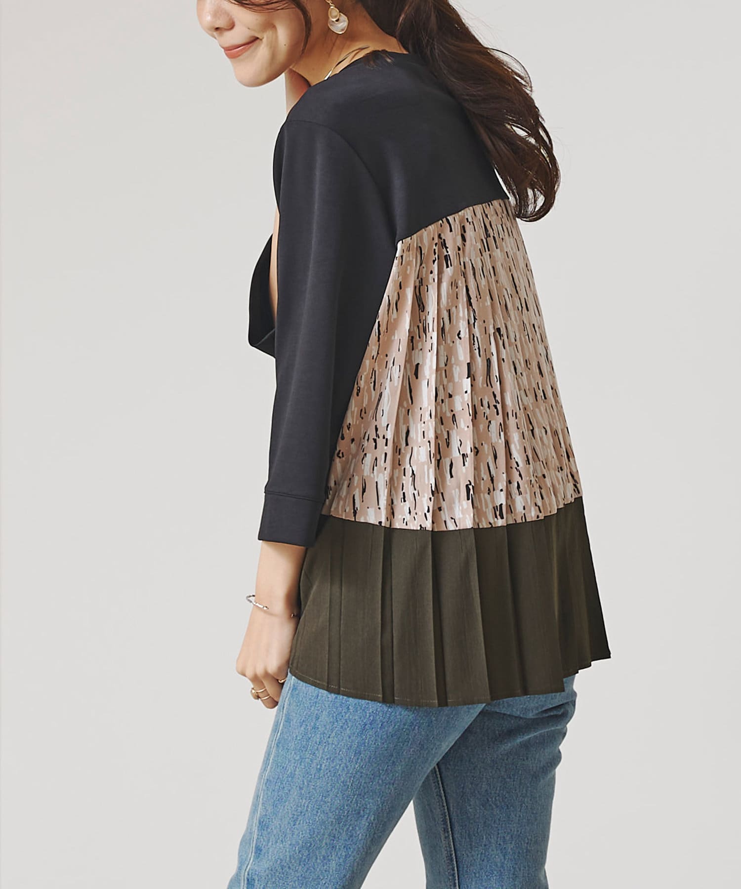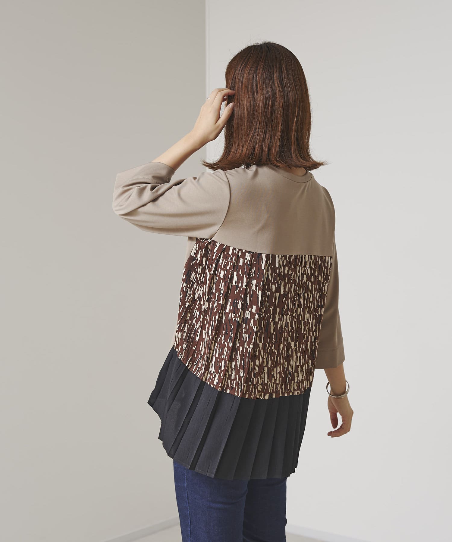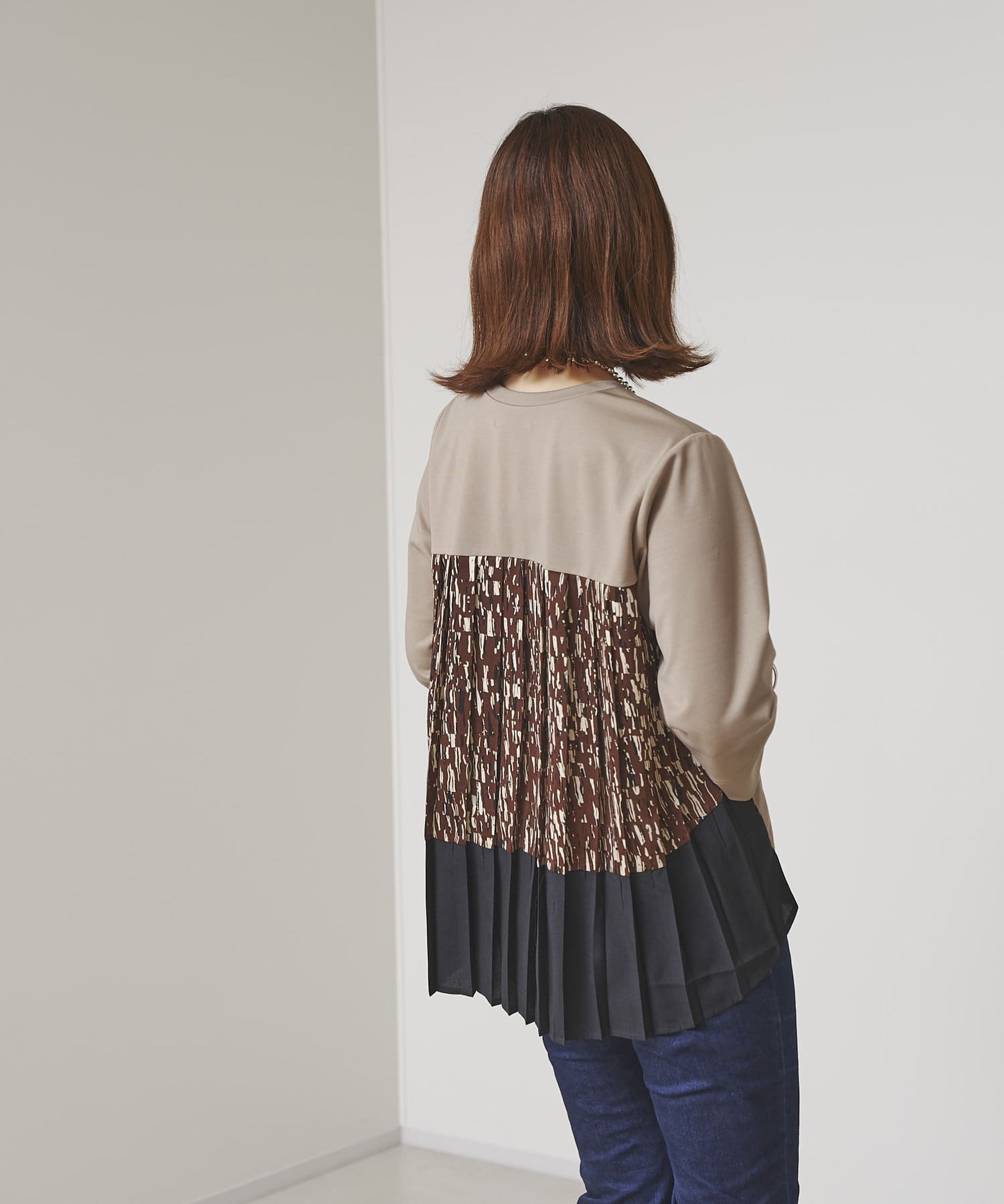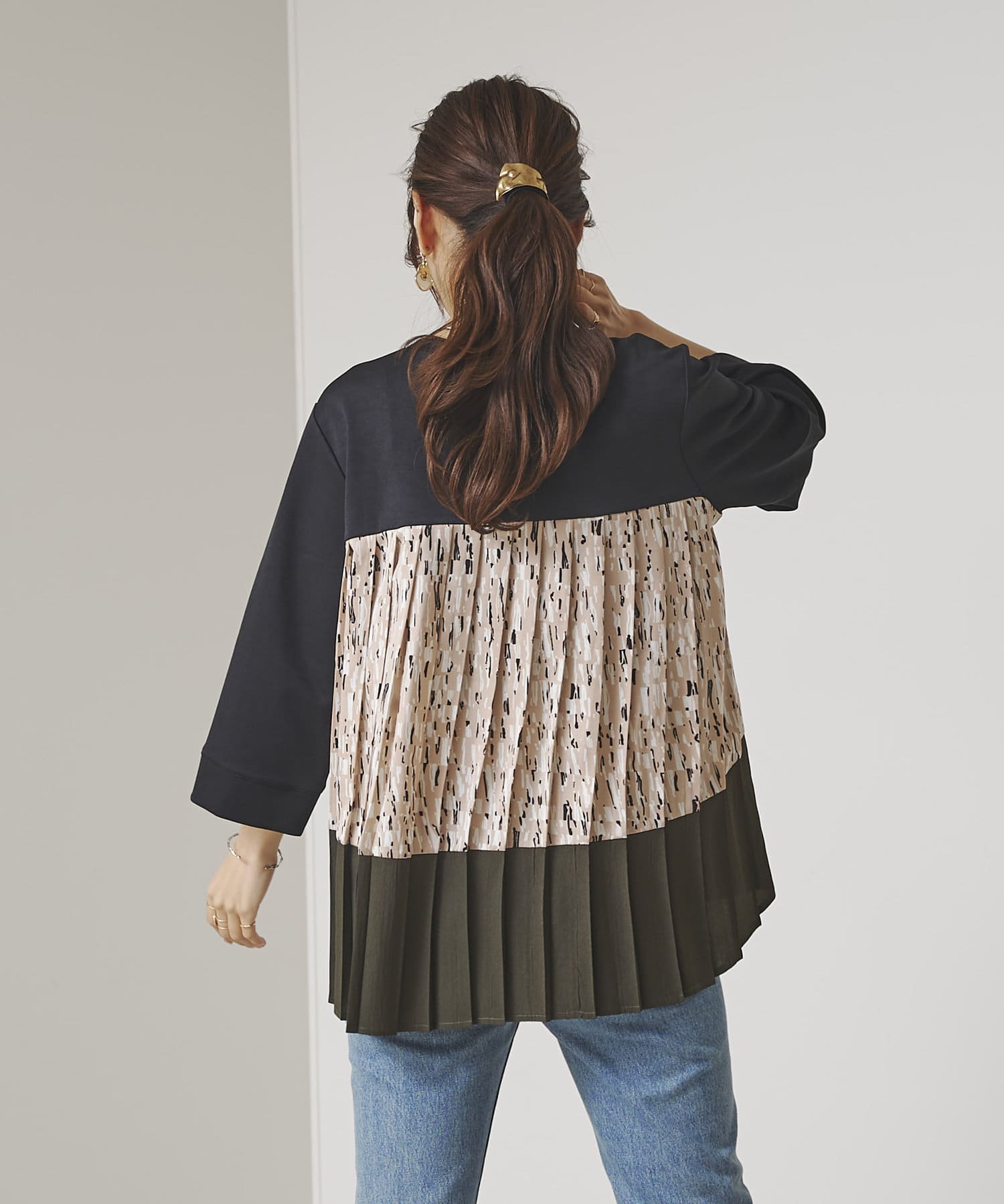 BACK異素材プリーツプルオーバー