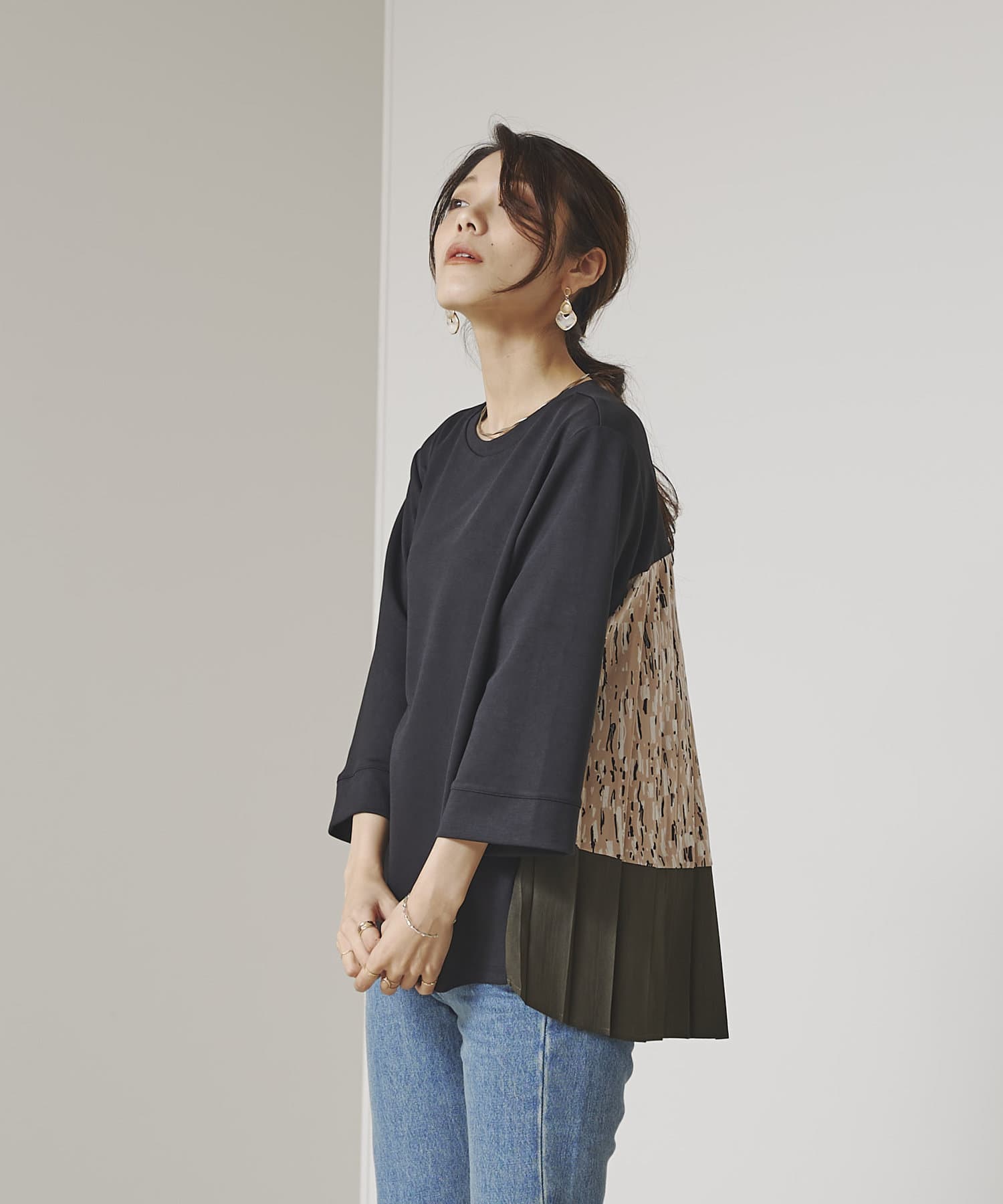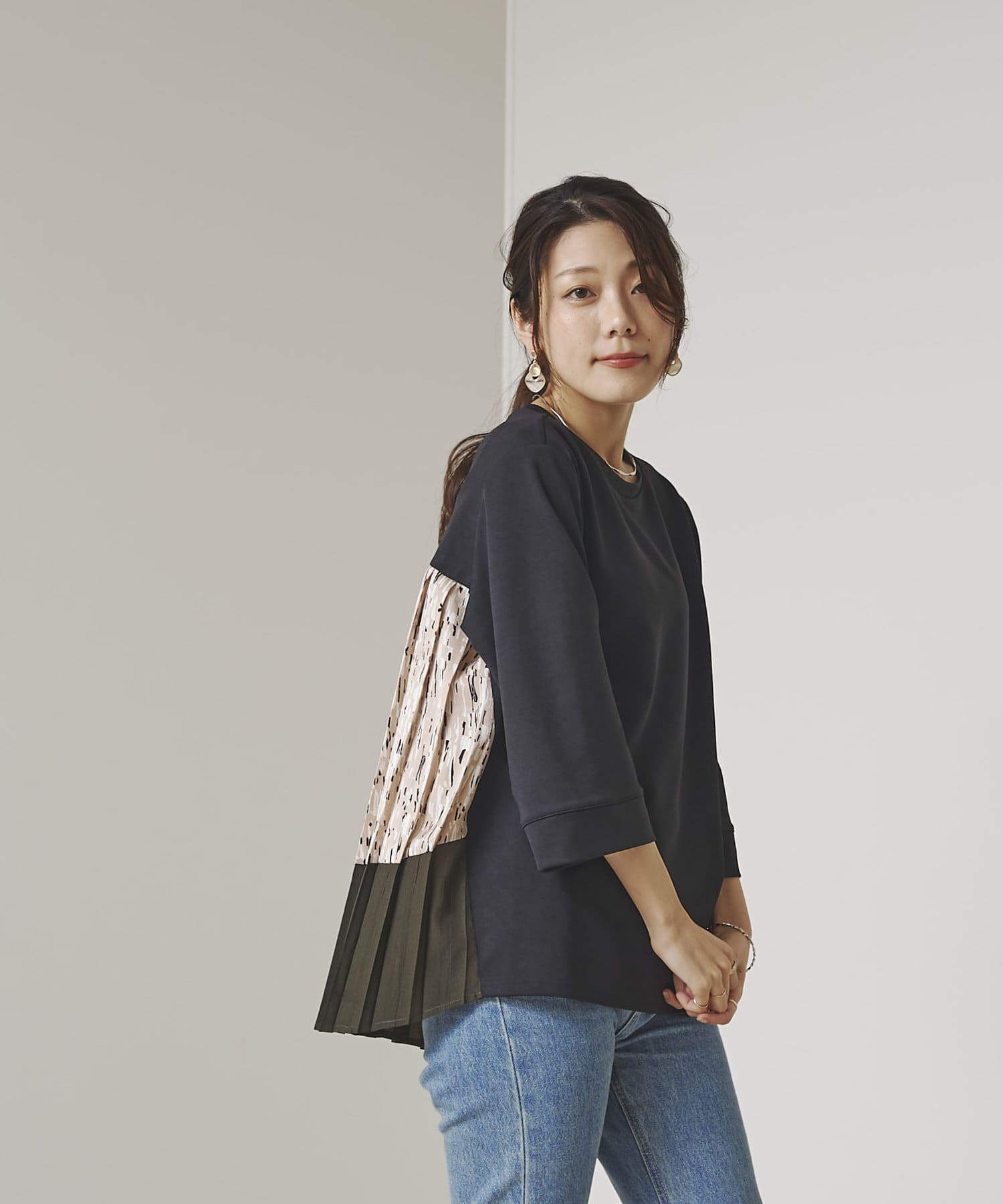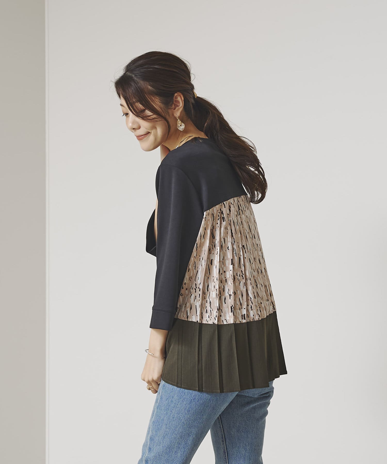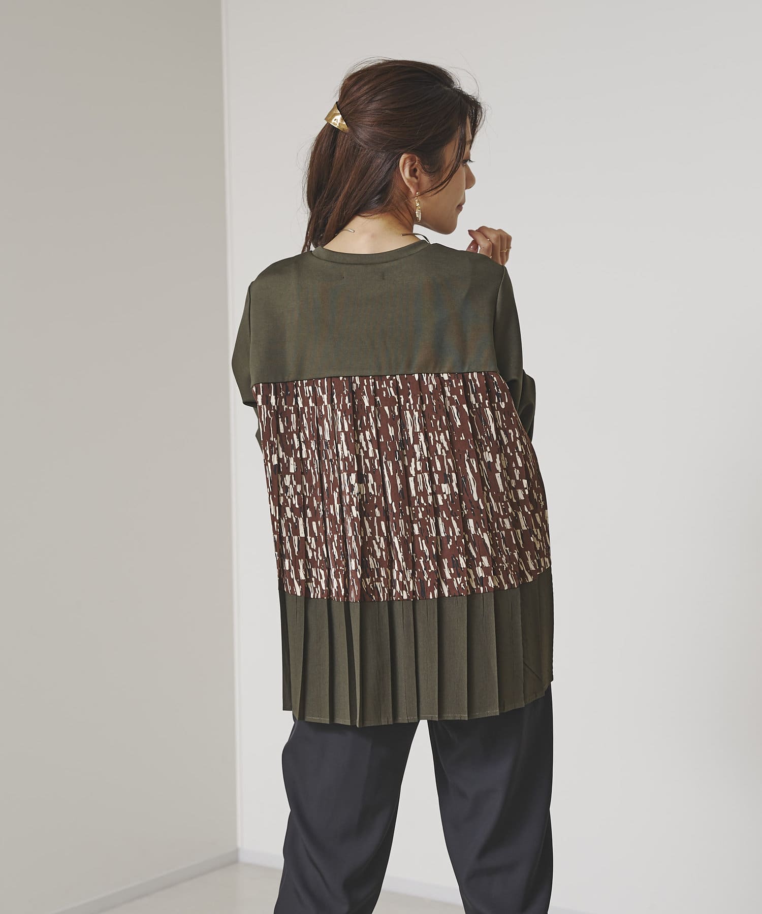 BACK異素材プリーツプルオーバー