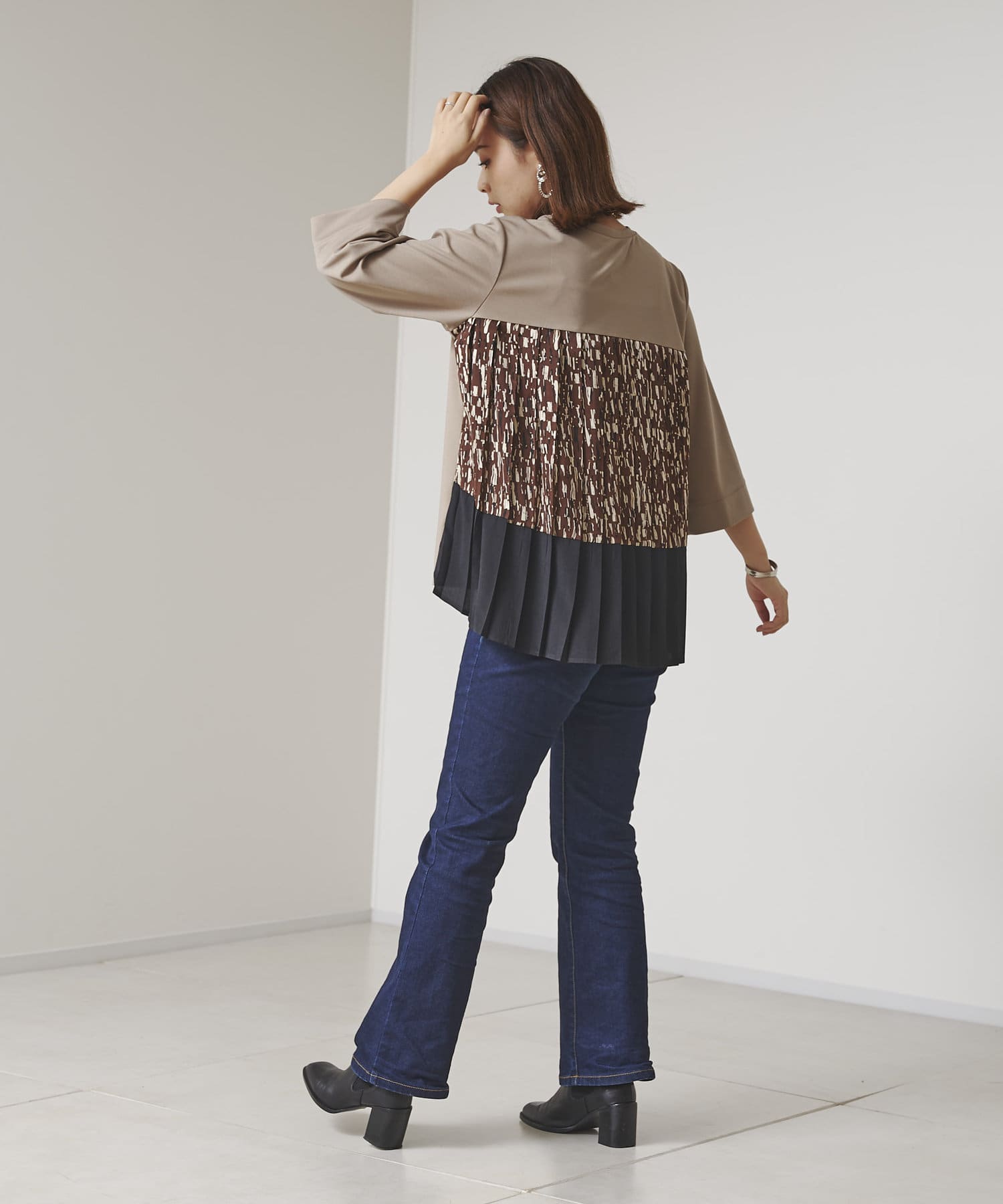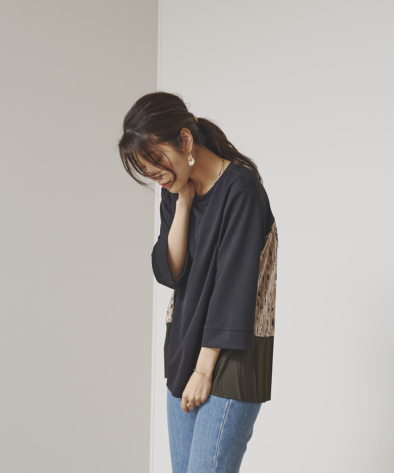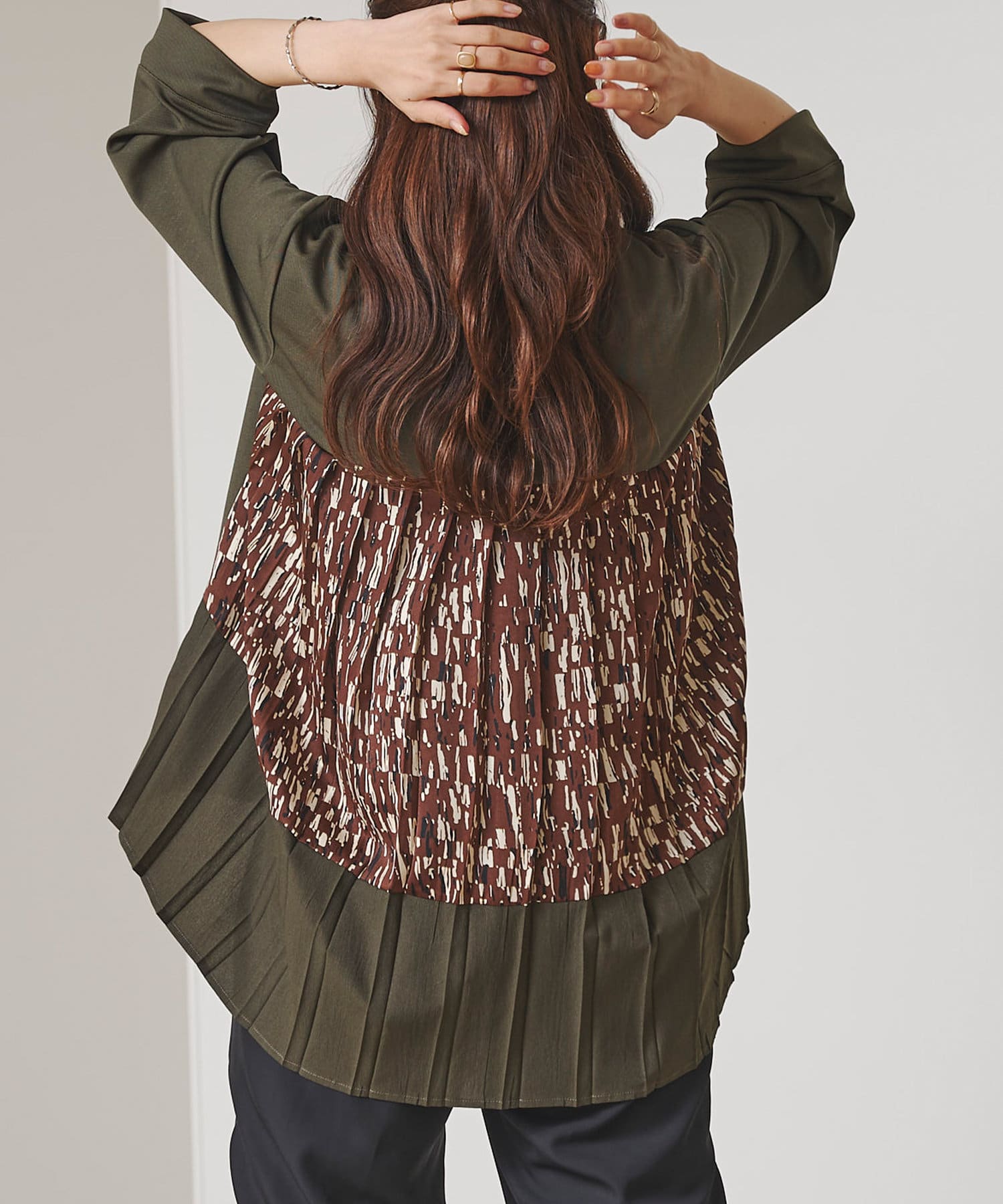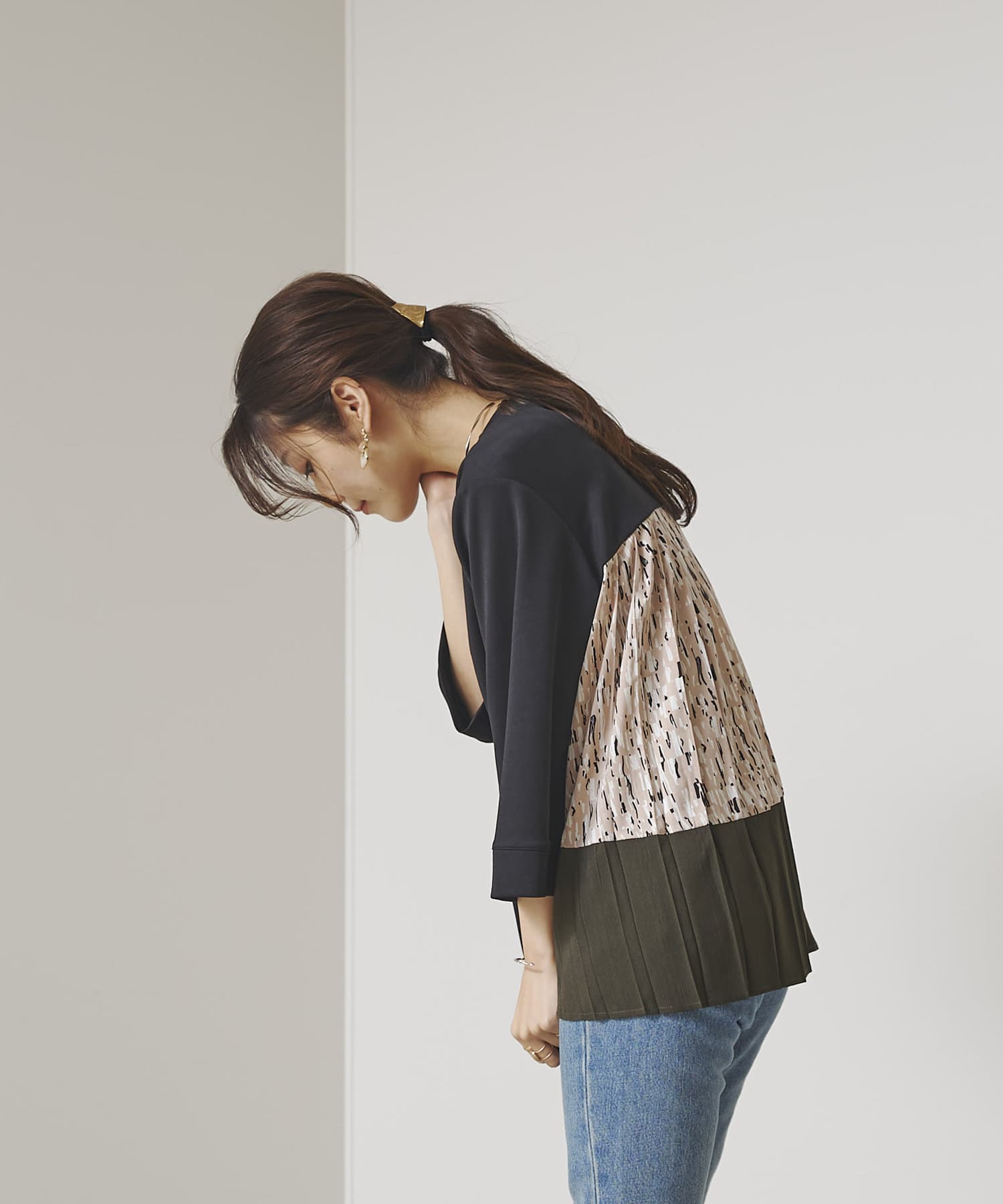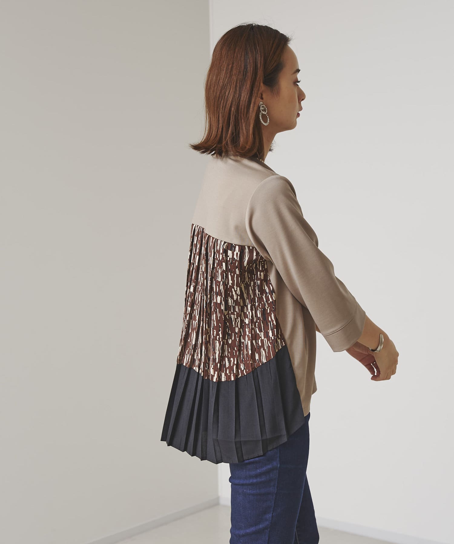 BACK異素材プリーツプルオーバー