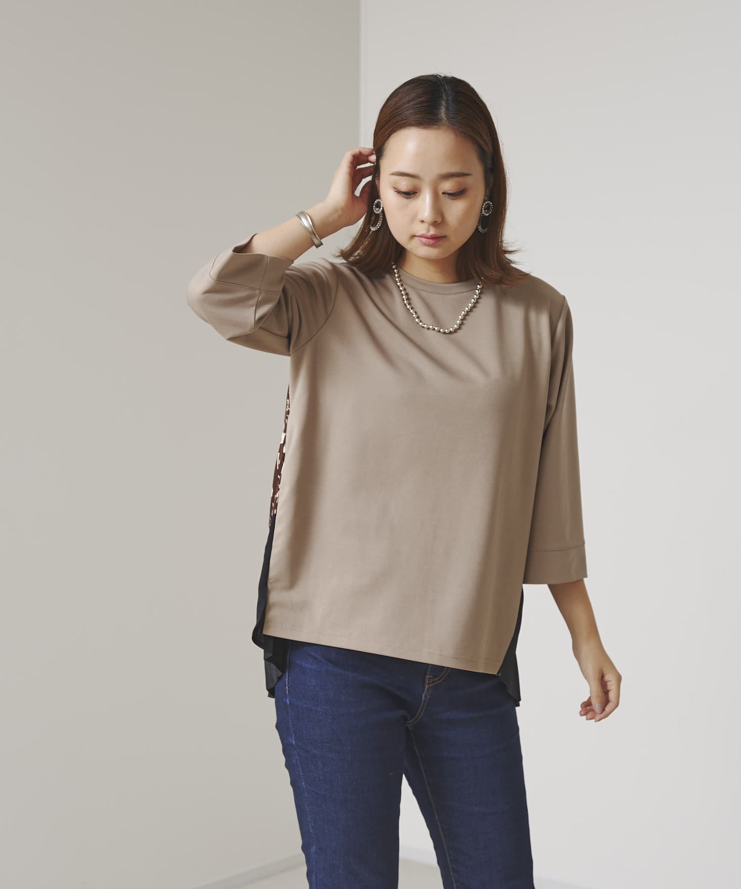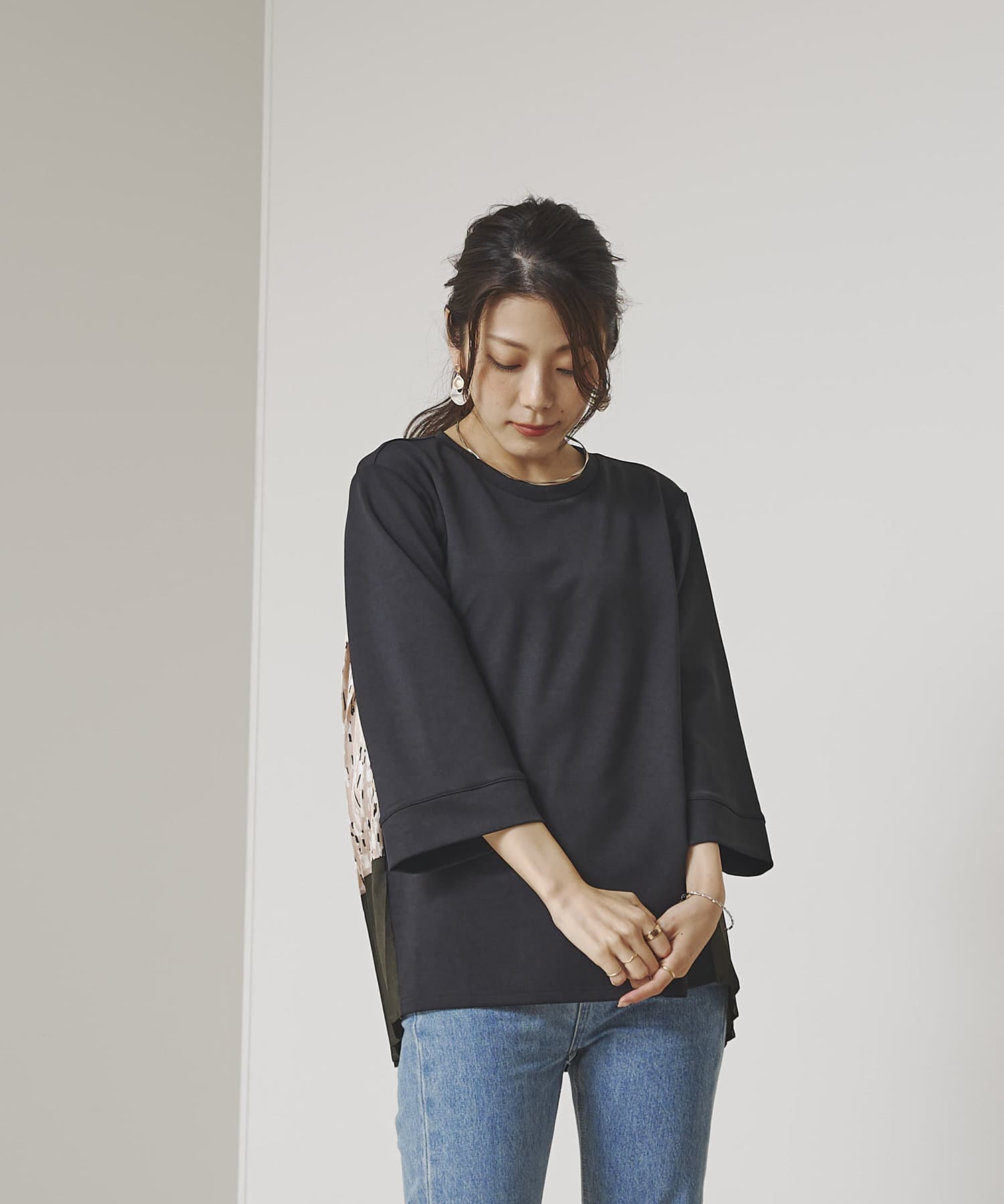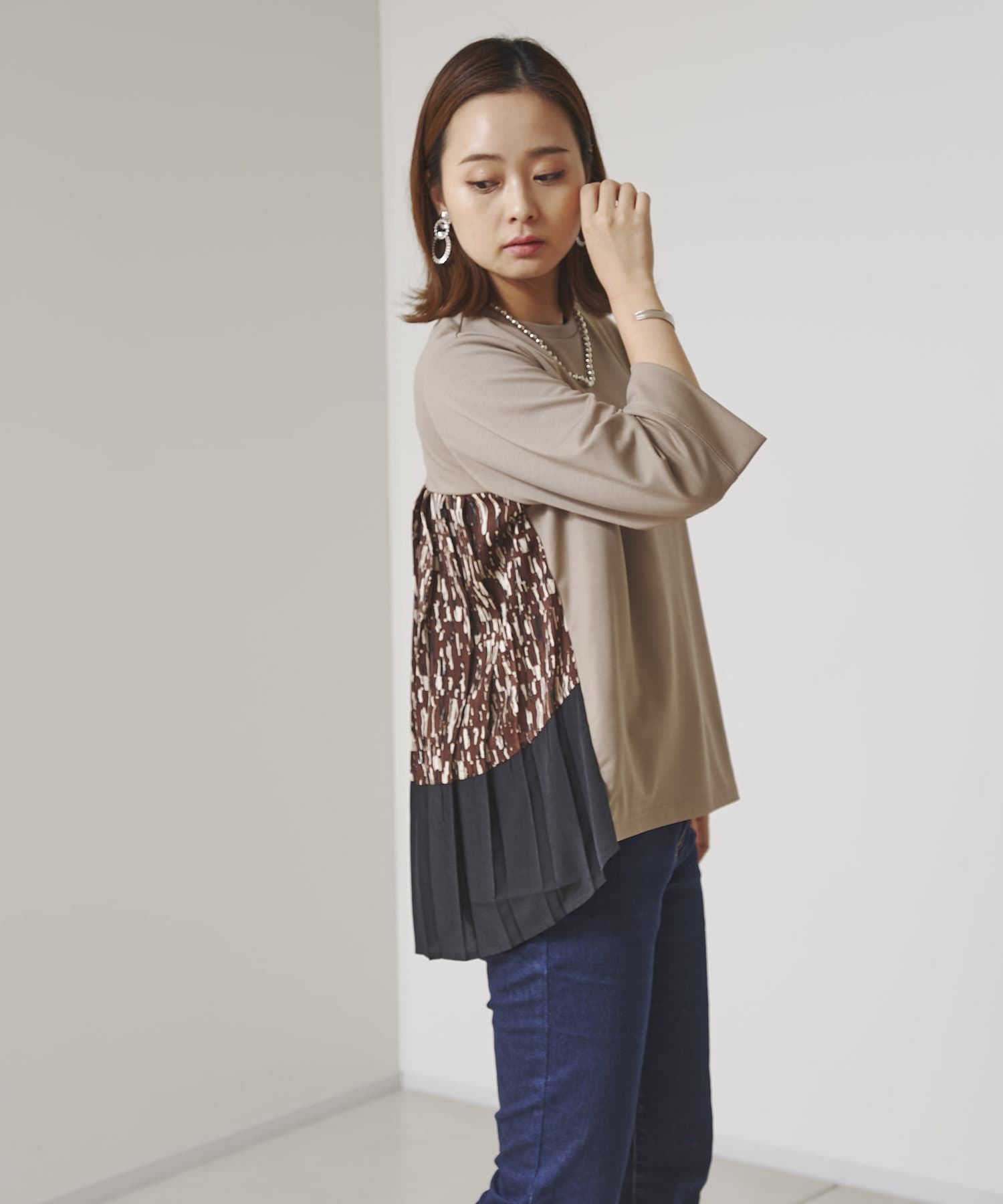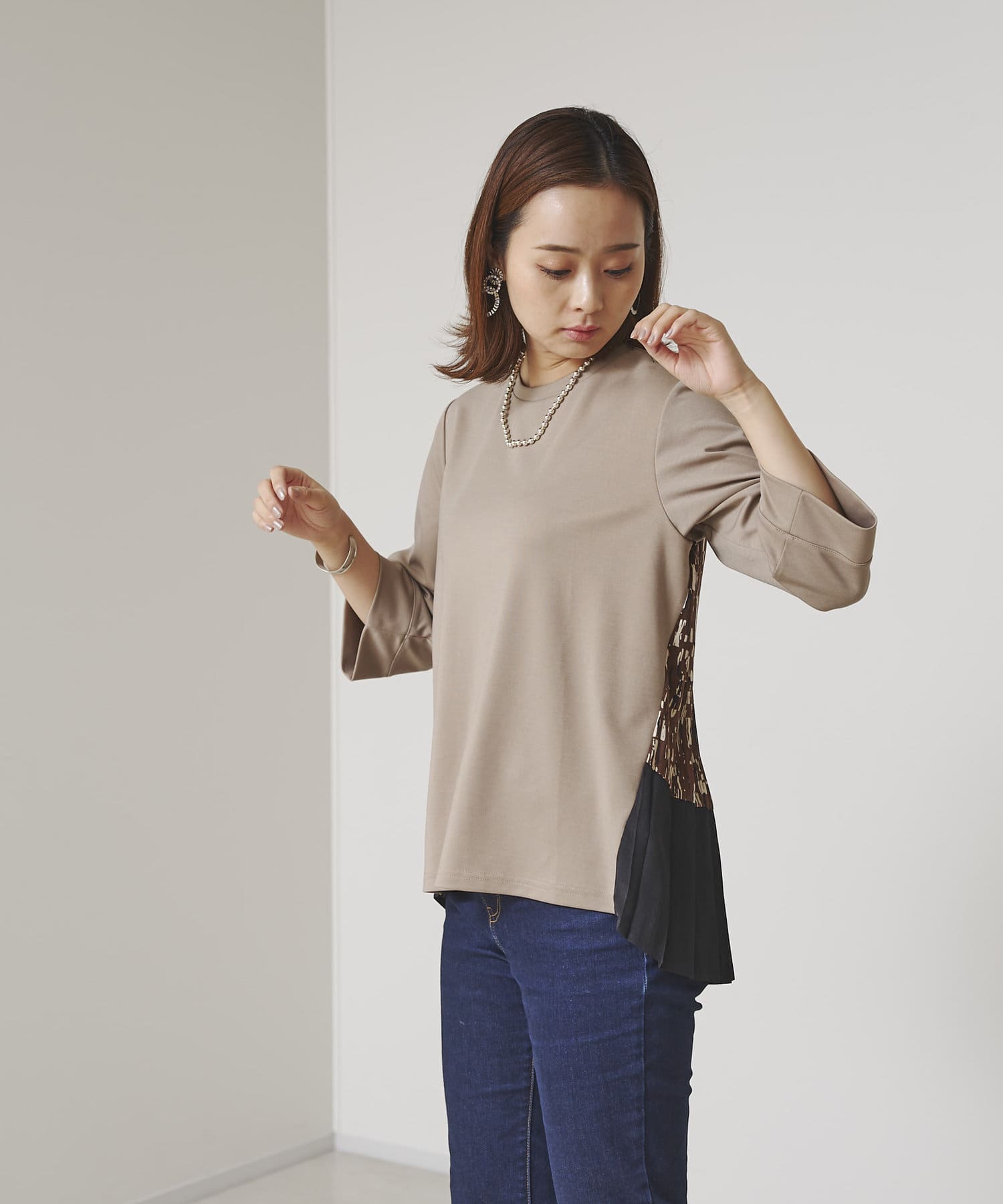 BACK異素材プリーツプルオーバー