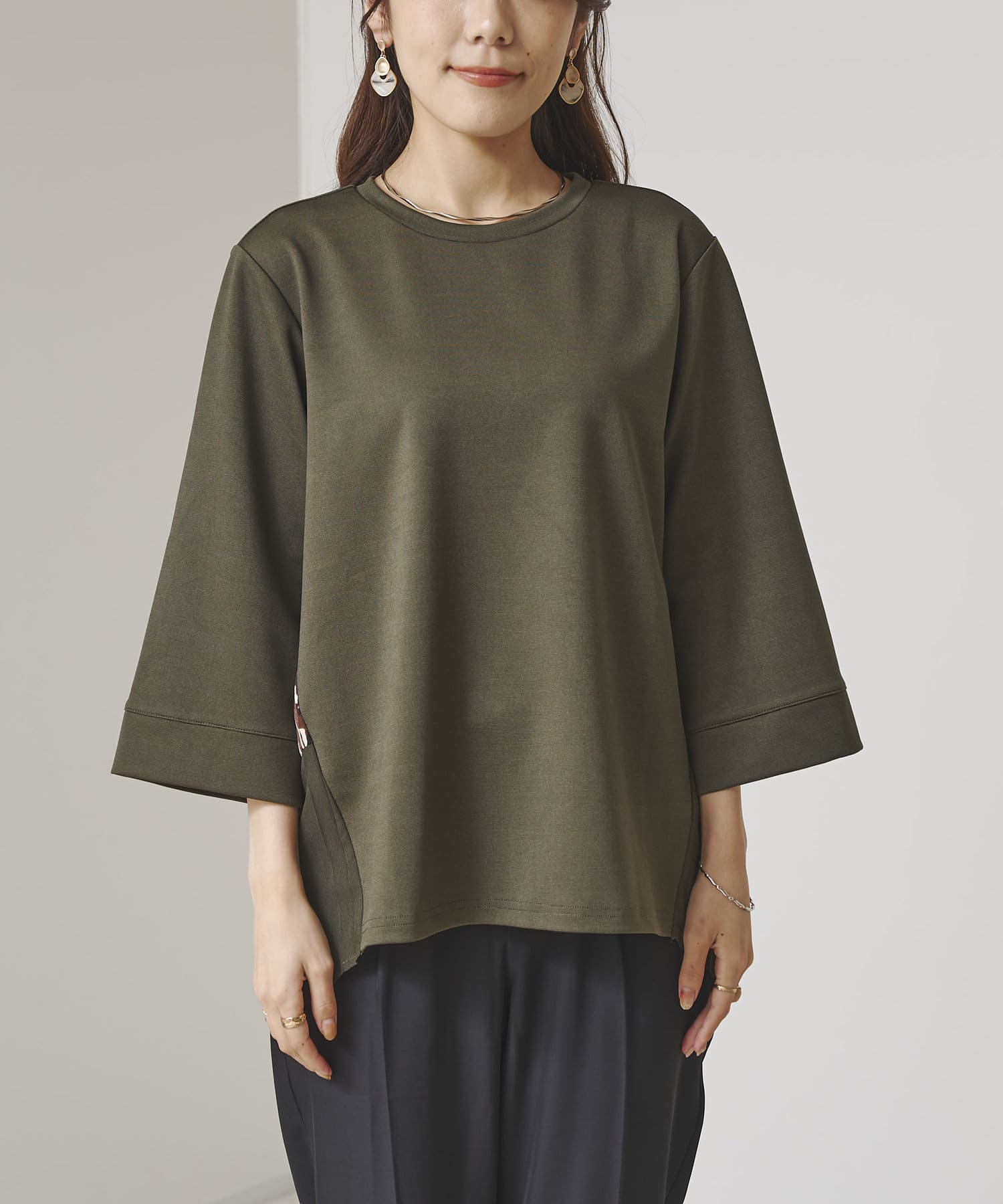 ・カット生地のプルオーバーで初秋からお使いできます。