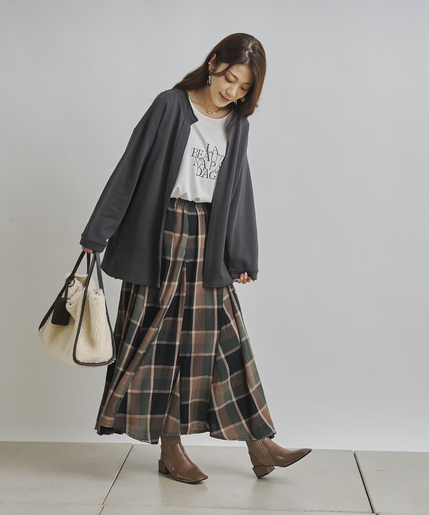 ワンピースやロンTの上に羽織るだけでこなれた印象に。スカートでもパンツでも