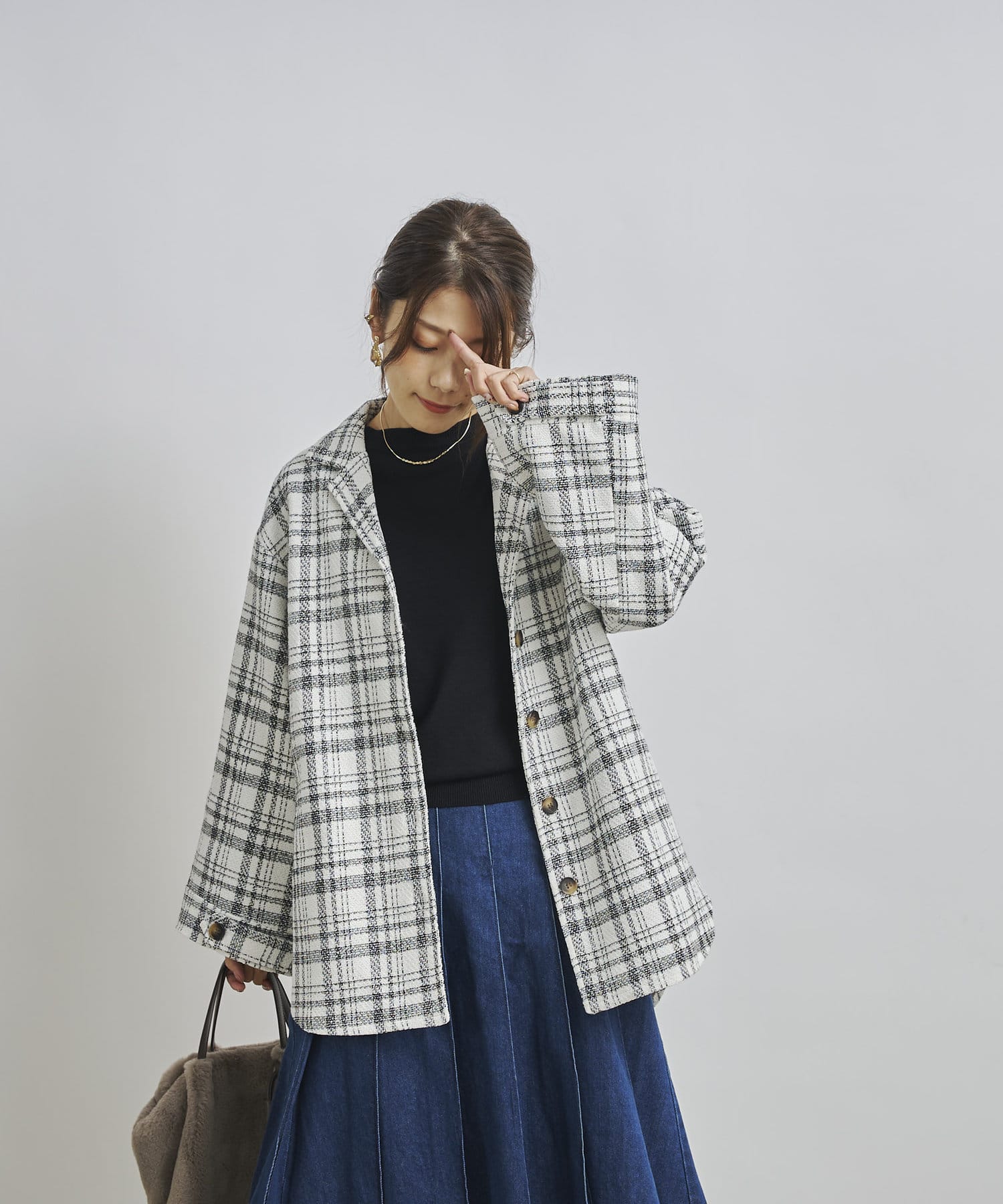 Chez toi(シェトワ) ツイードチェックルーズジャケット