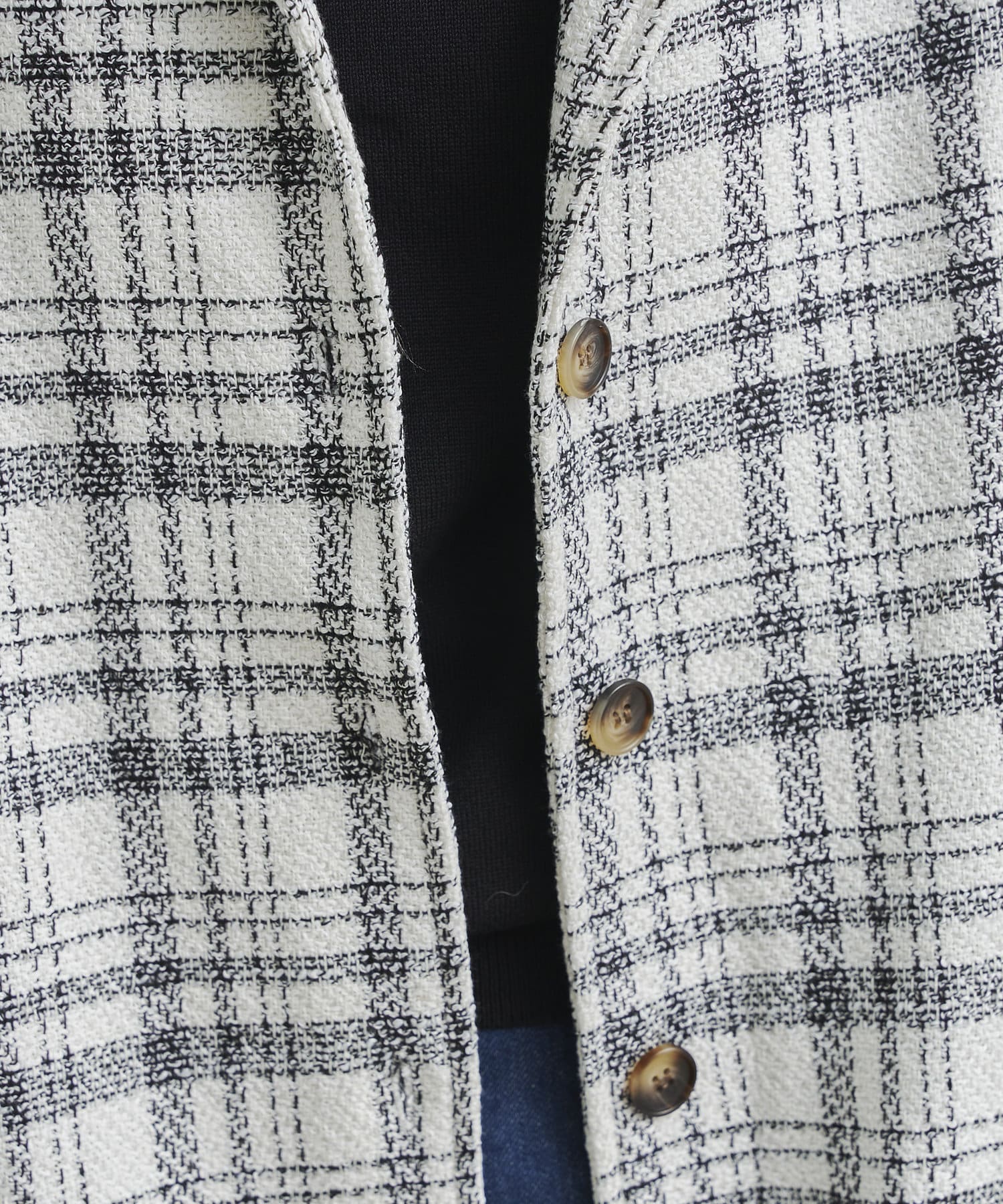 ・ツイード素材を使用しているので、秋冬の羽織として最適なひと品です。