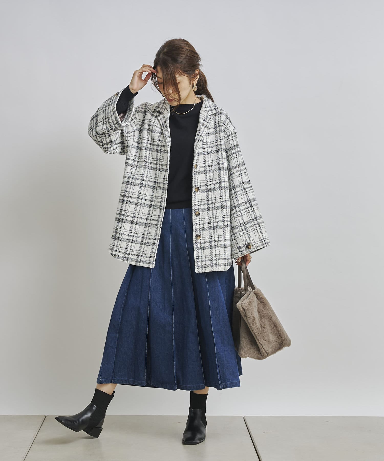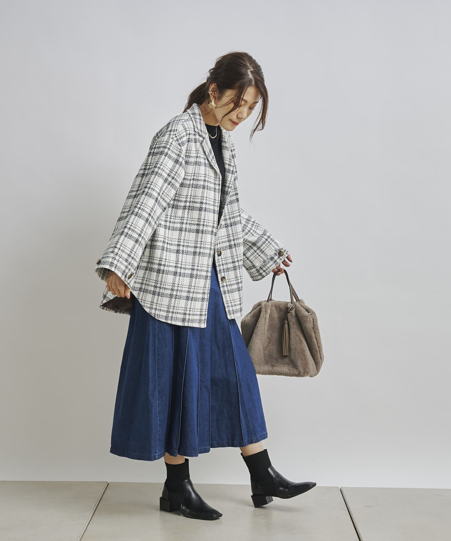 ・ツイードのチェック柄でカジュアルになりすぎず上品な生地感。