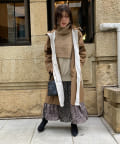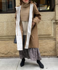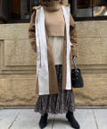 スカートでもパンツでも着用しやすい。長めのスカートで合わせる時は前を開けて着て頂くと