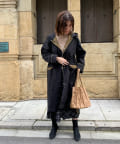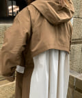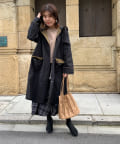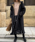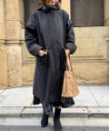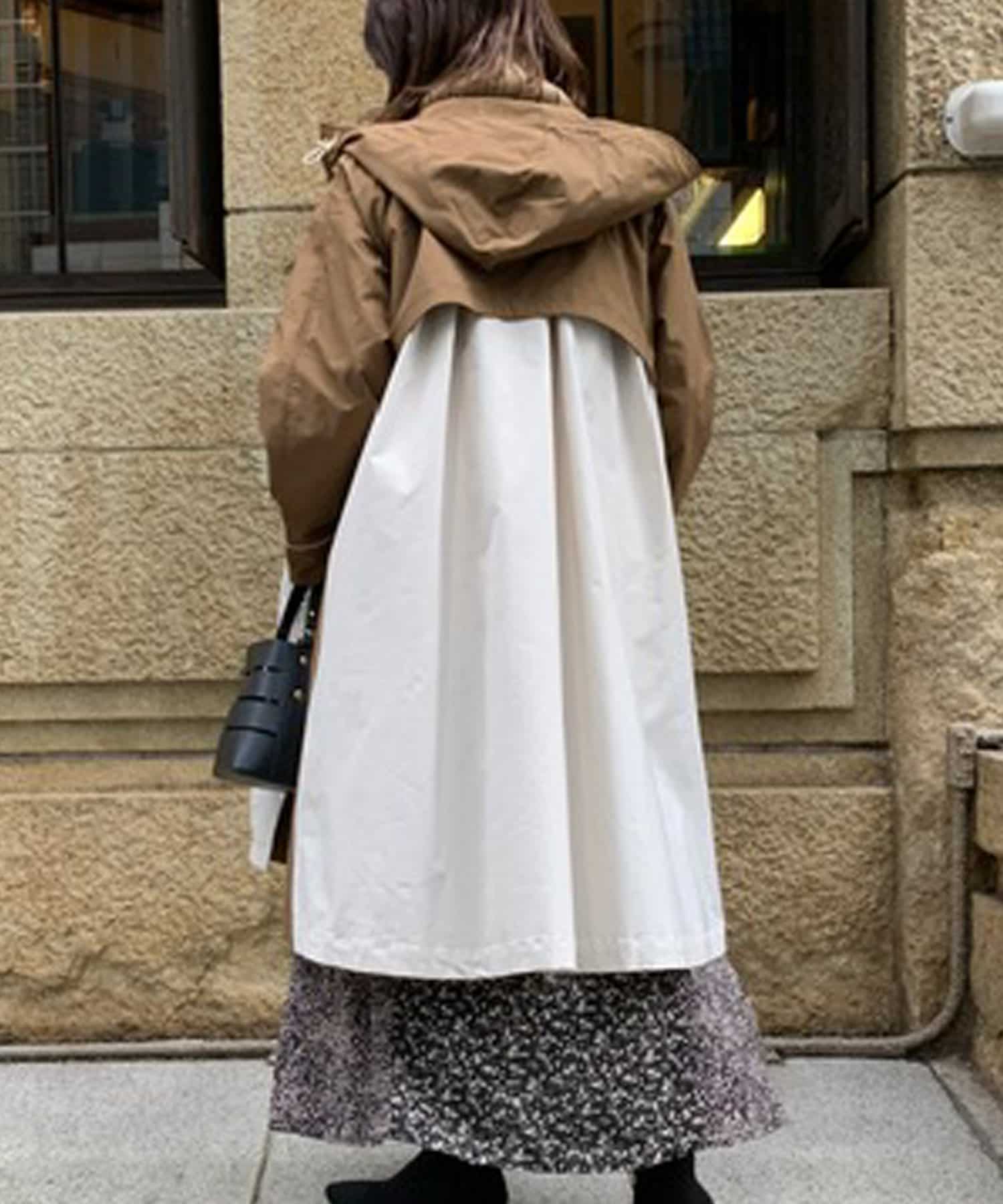 バックにギャザーをたっぷり入れたデザイン。バイカラーで羽織るだけで着映えするコート。