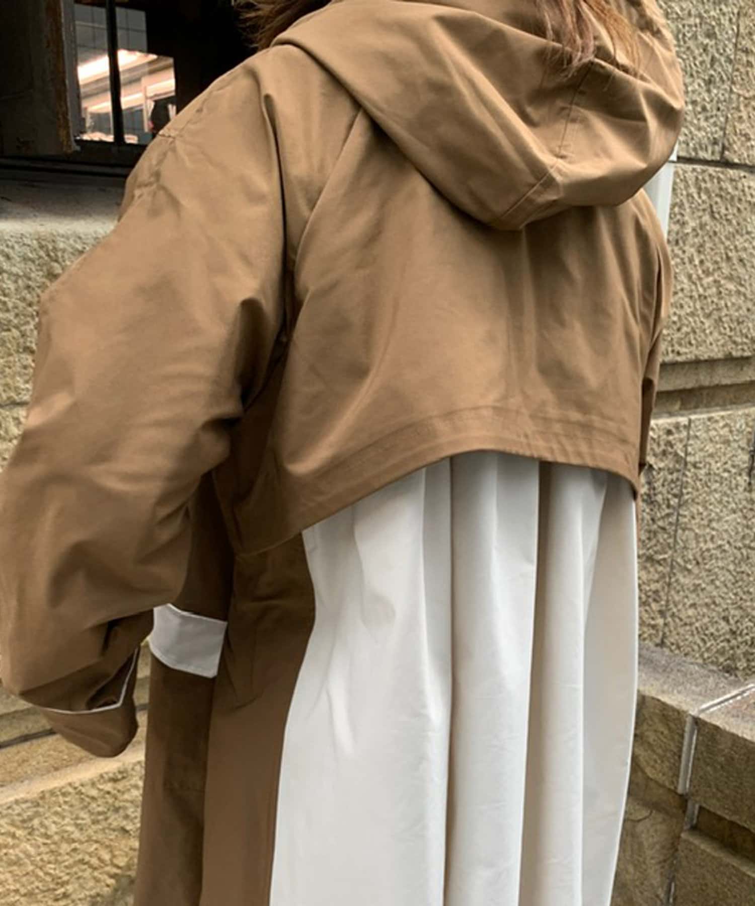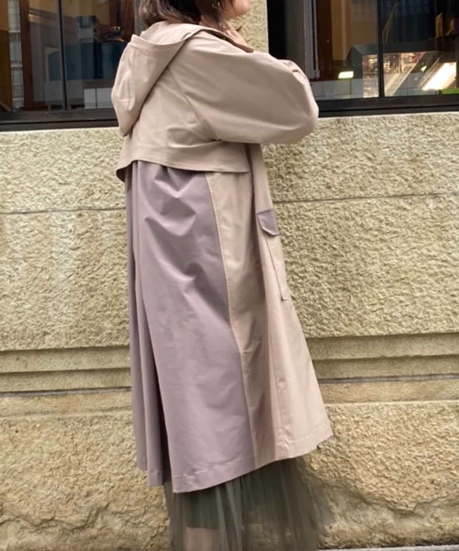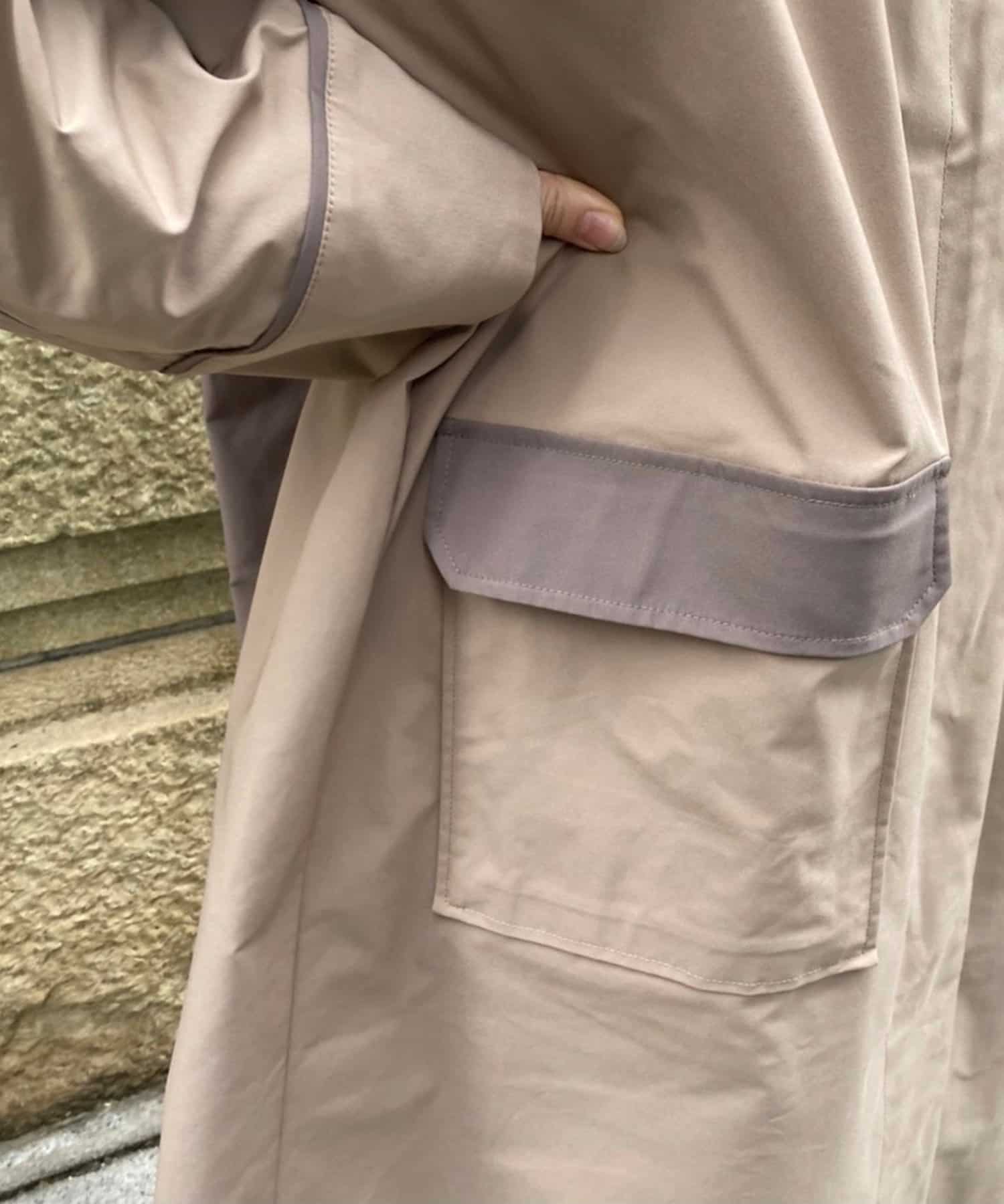 ・前後とポケットがバイカラーになった羽織るだけでこなれ感のでるバイカラーモッズコート